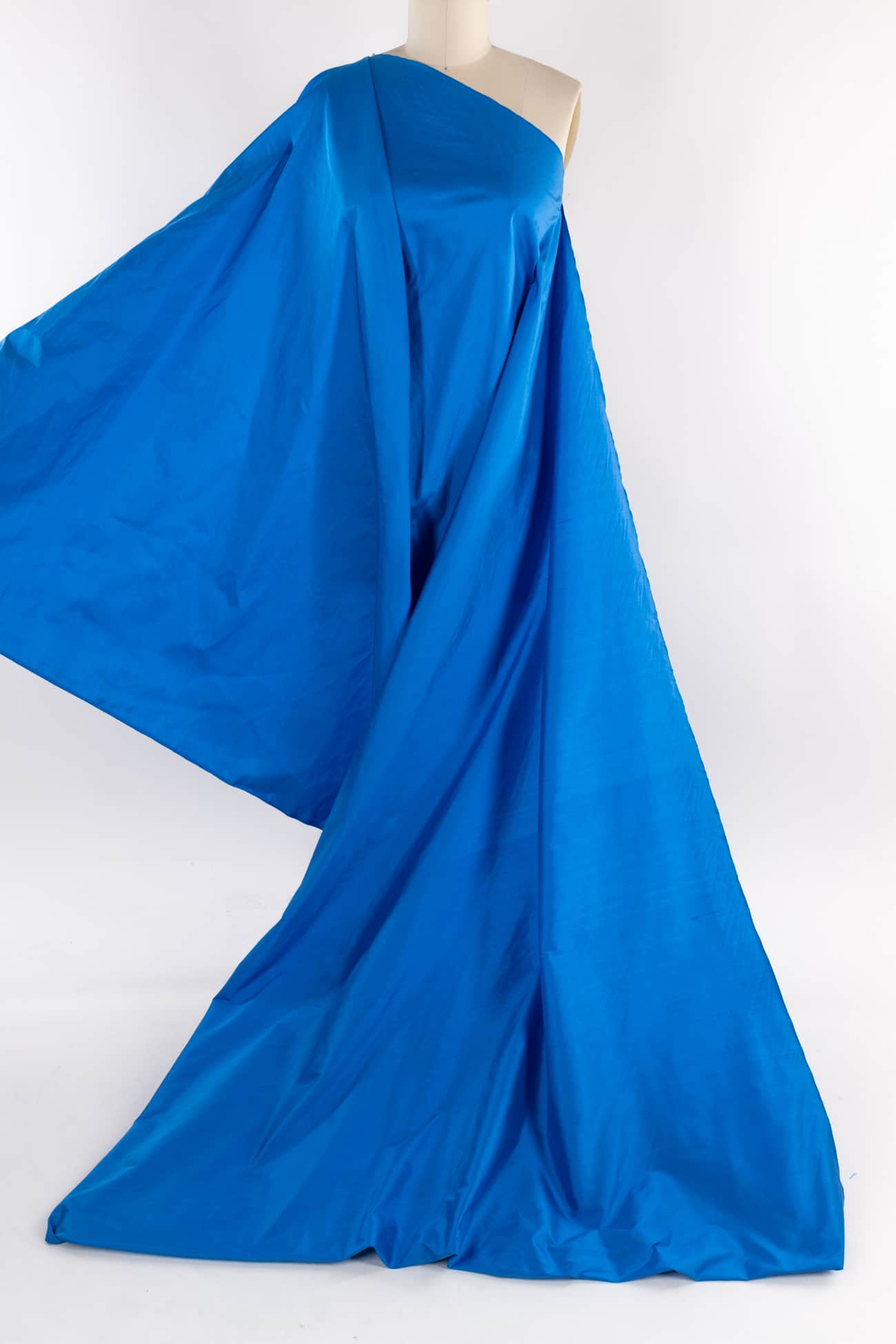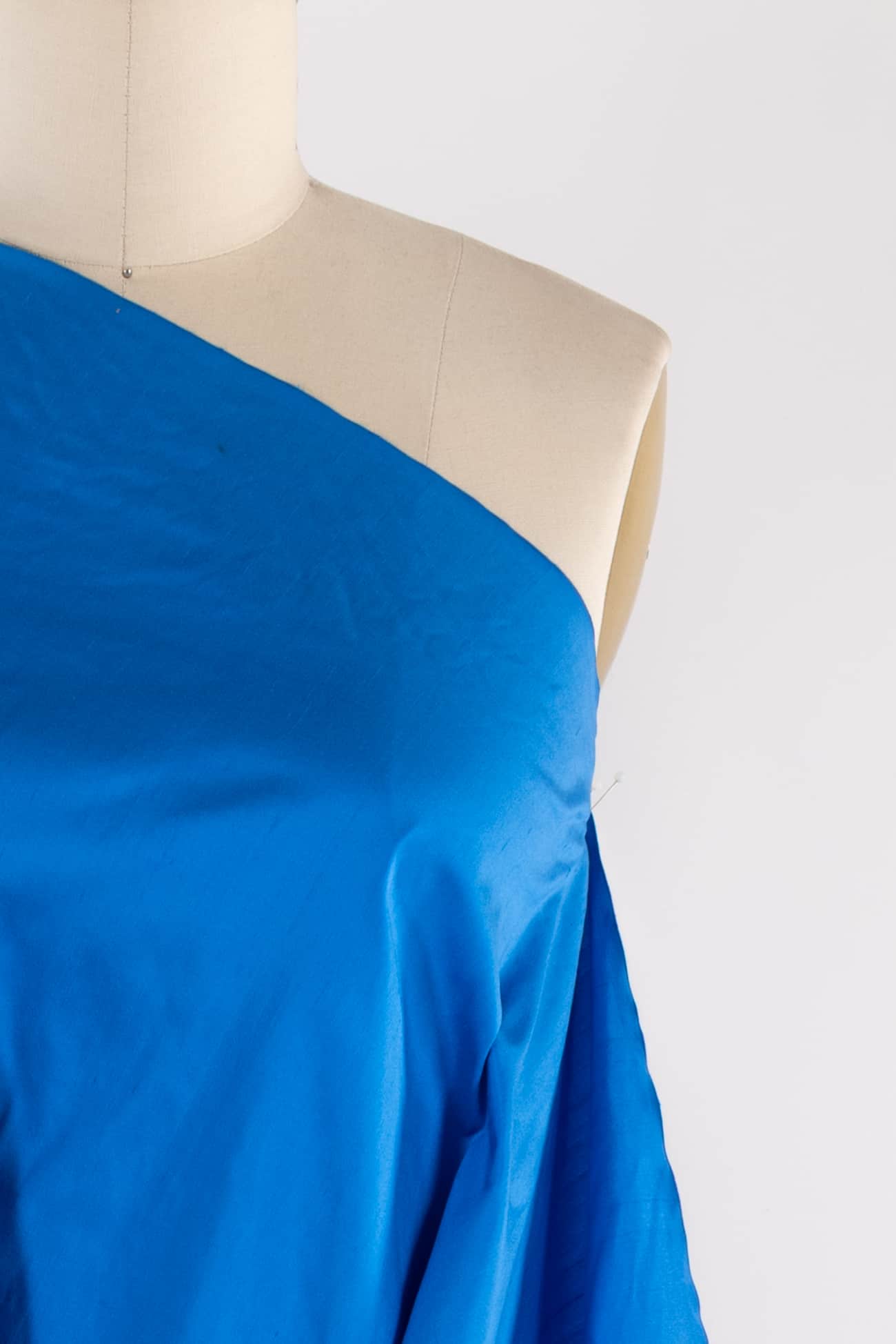 Classic silk dupioni* in rich color saturated bright blue, fine quality deadstock from an LA designer. Light/shirting weight, opaque, softly textured, with a soft hand and lightly crisp yet malleable drape. Dress it up or down, make a dress, shirt, skirt, vest, soft pant, light jacket, or duster coat. Makes a luxurious lining, works for accessories and home decor too. A silk jacket or vest is a basic in my wardrobe and makes a smooth layering piece to slide over/under other garments and travels well.