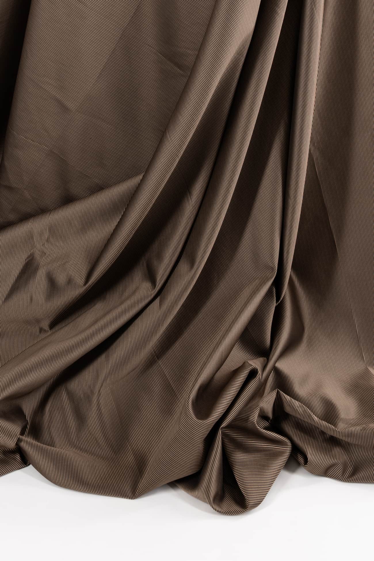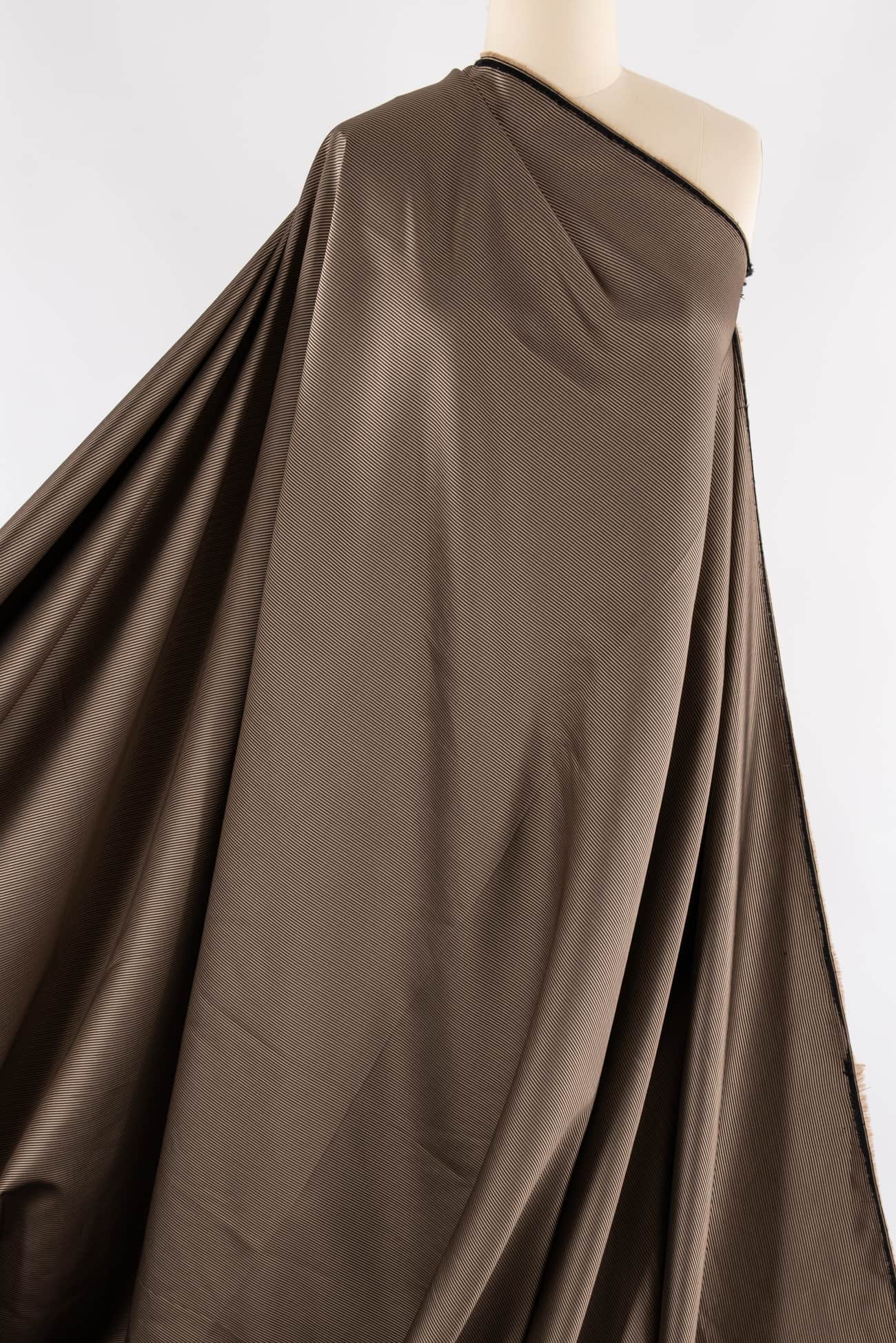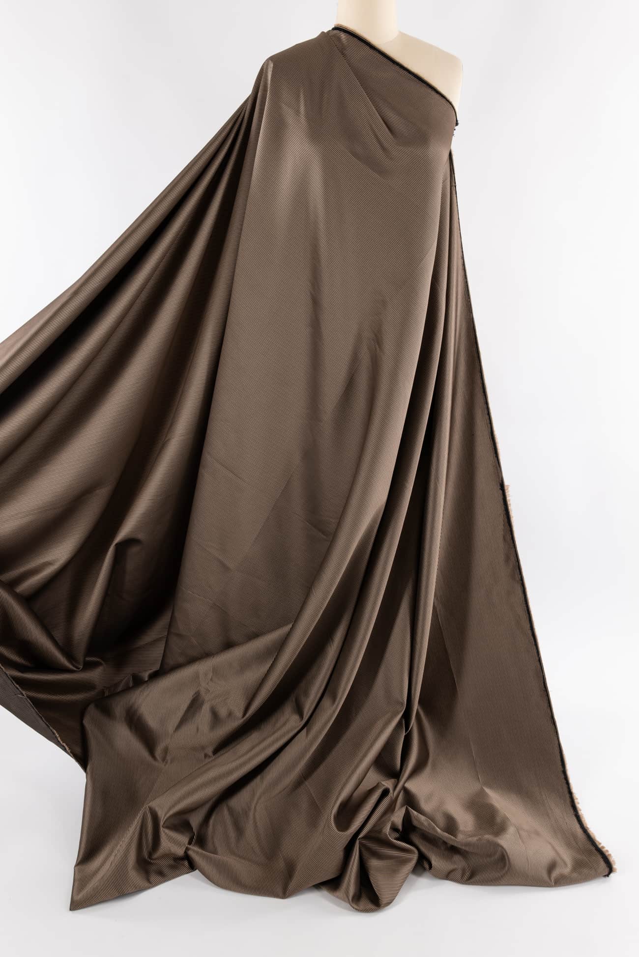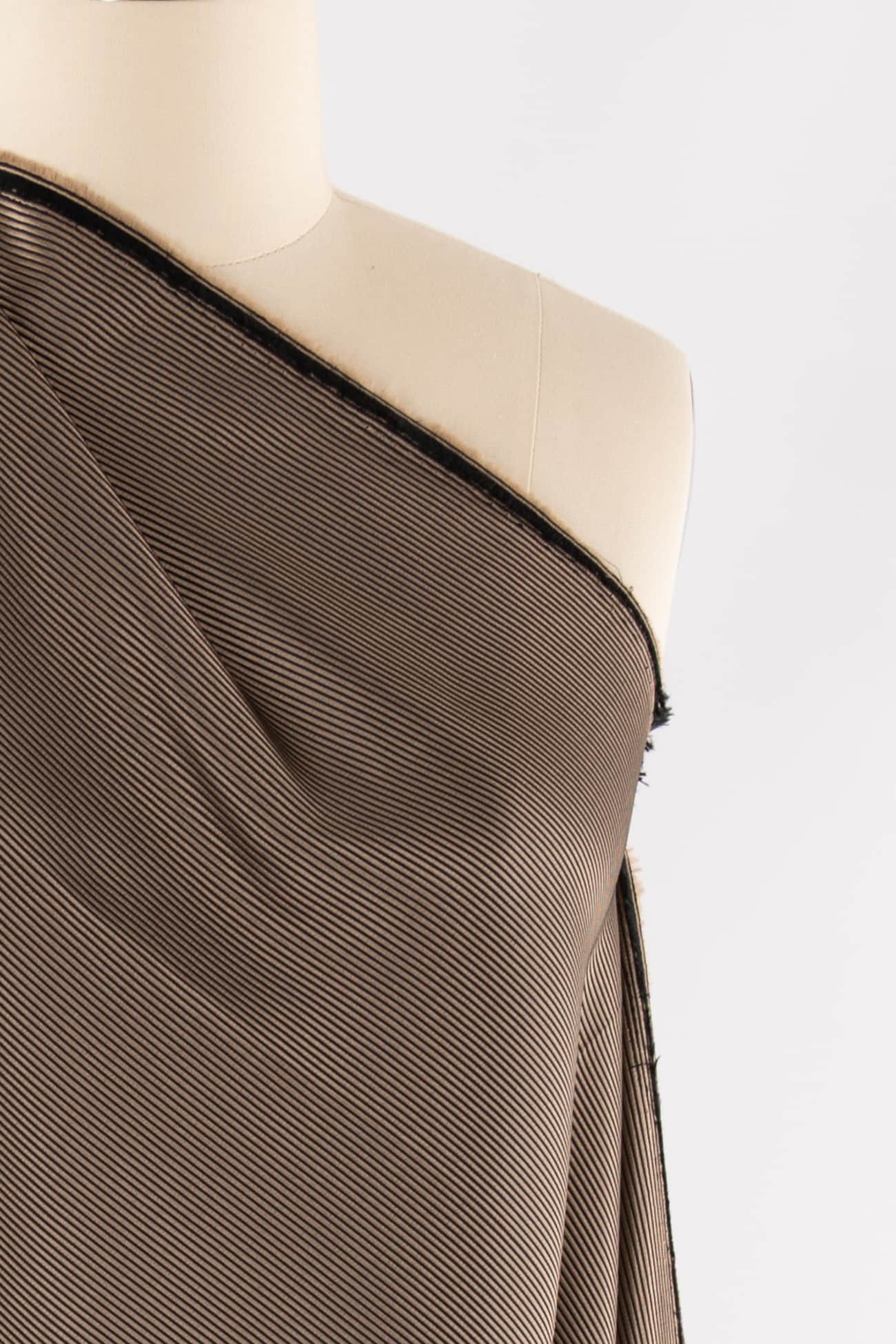 Black and golden caramel fine grained mini ottoman, beautiful deadstock from an east coast designer. Mid-weight, stable, with a fine ribbed silky vertical texture, smooth lustrous hand and lightly crisp drape. More black on the top side and more golden caramel on the back. The weight is right for a jacket, duster coat, vest, structured dress, skirt or pants. As shown here in Marcy's OOP Vogue 7746 in Coffee Ottoman Woven.