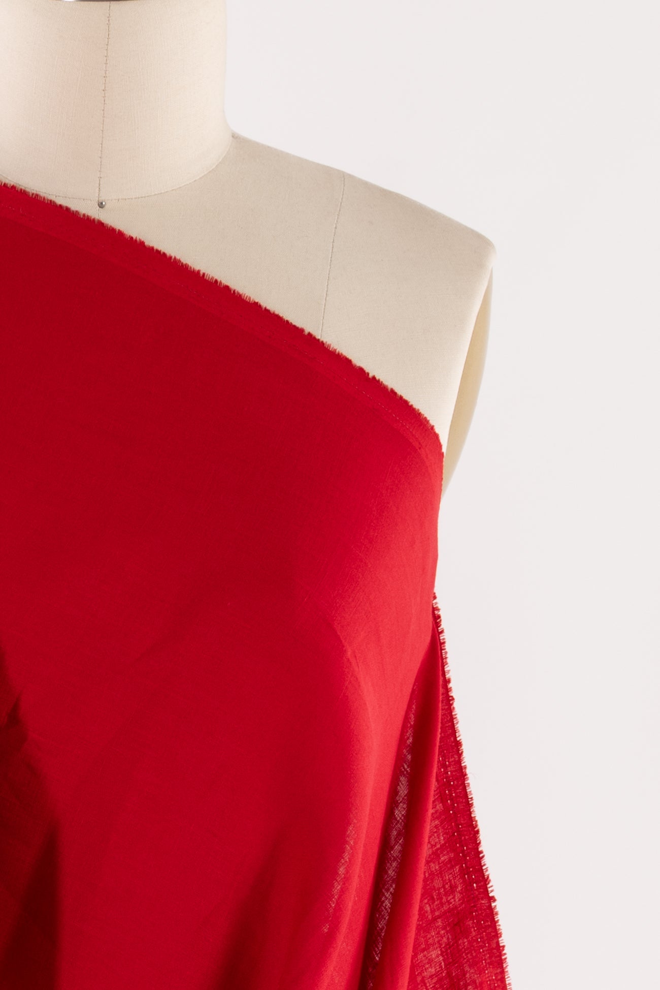 Elegant clear red in a supple linen, fine quality deadstock from a NYC designer. Lightweight, opaque, with a fine grained weave, smooth cool hand and light airy drape. Right for a dress, shirt, tunic, skirt, soft pant, kimono, caftan, or light jacket.