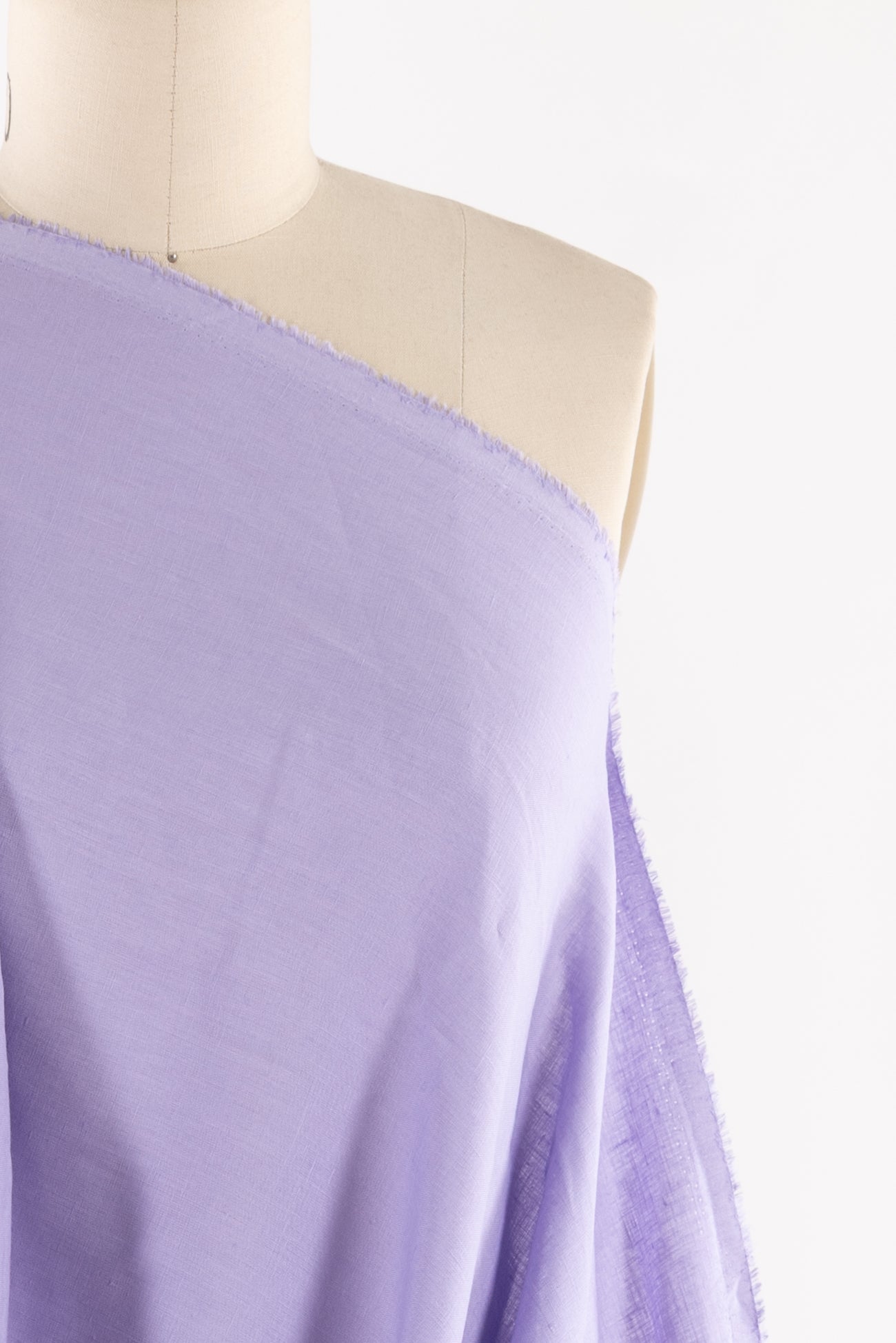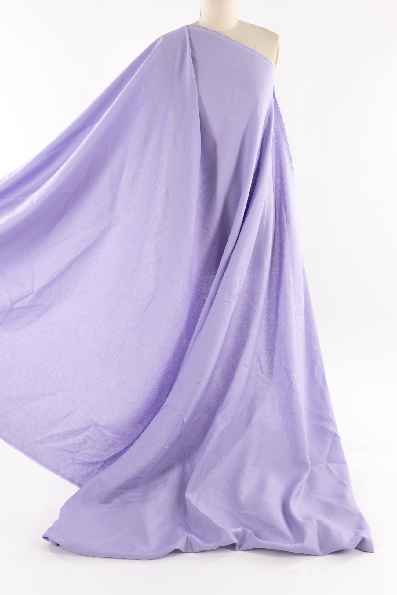 Elegant lavender in a supple linen, fine quality deadstock from a NYC designer. Lightweight, opaque, with a fine grained weave, smooth cool hand and light airy drape. Right for a dress, shirt, tunic, skirt, soft pant, kimono, caftan, or light jacket.