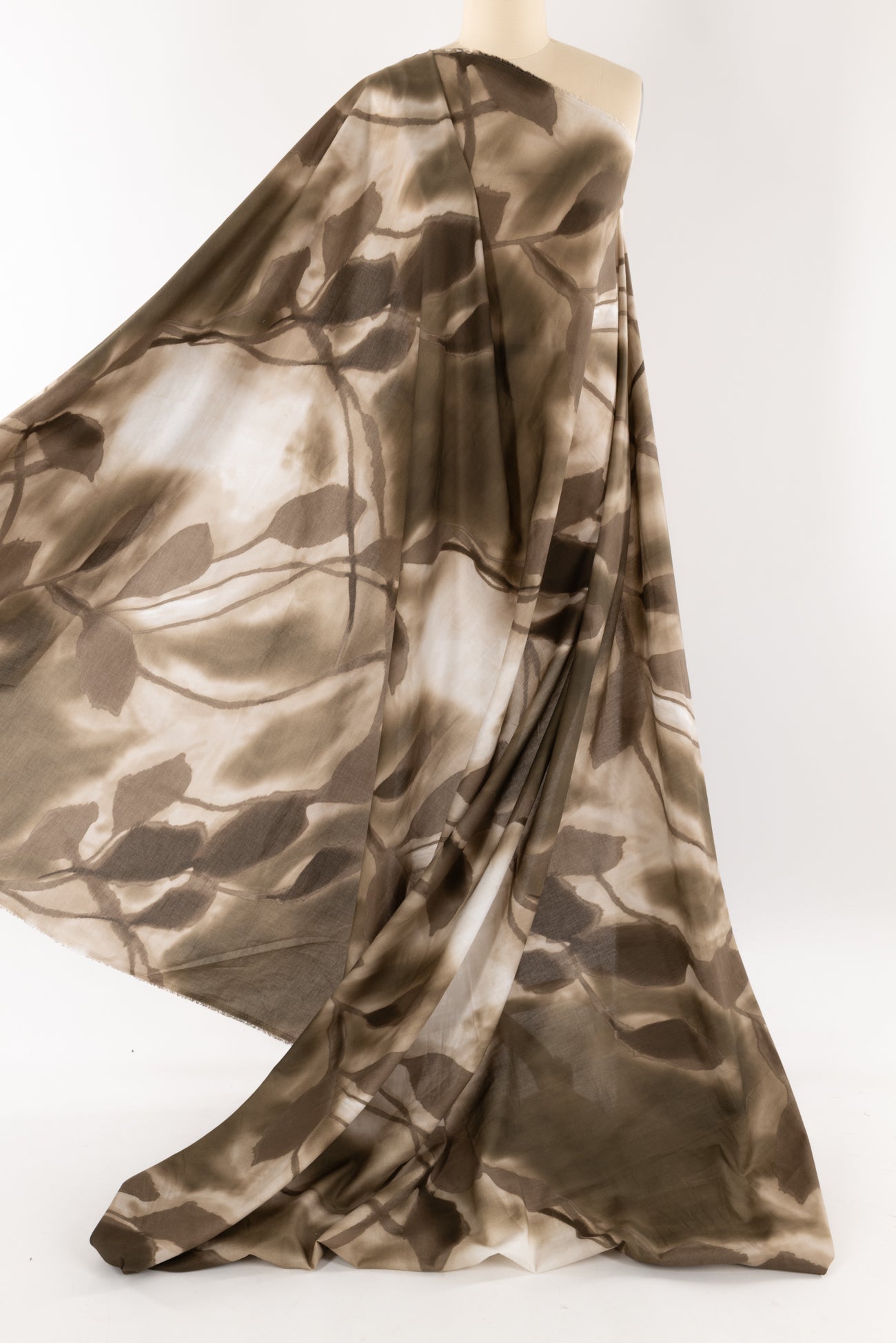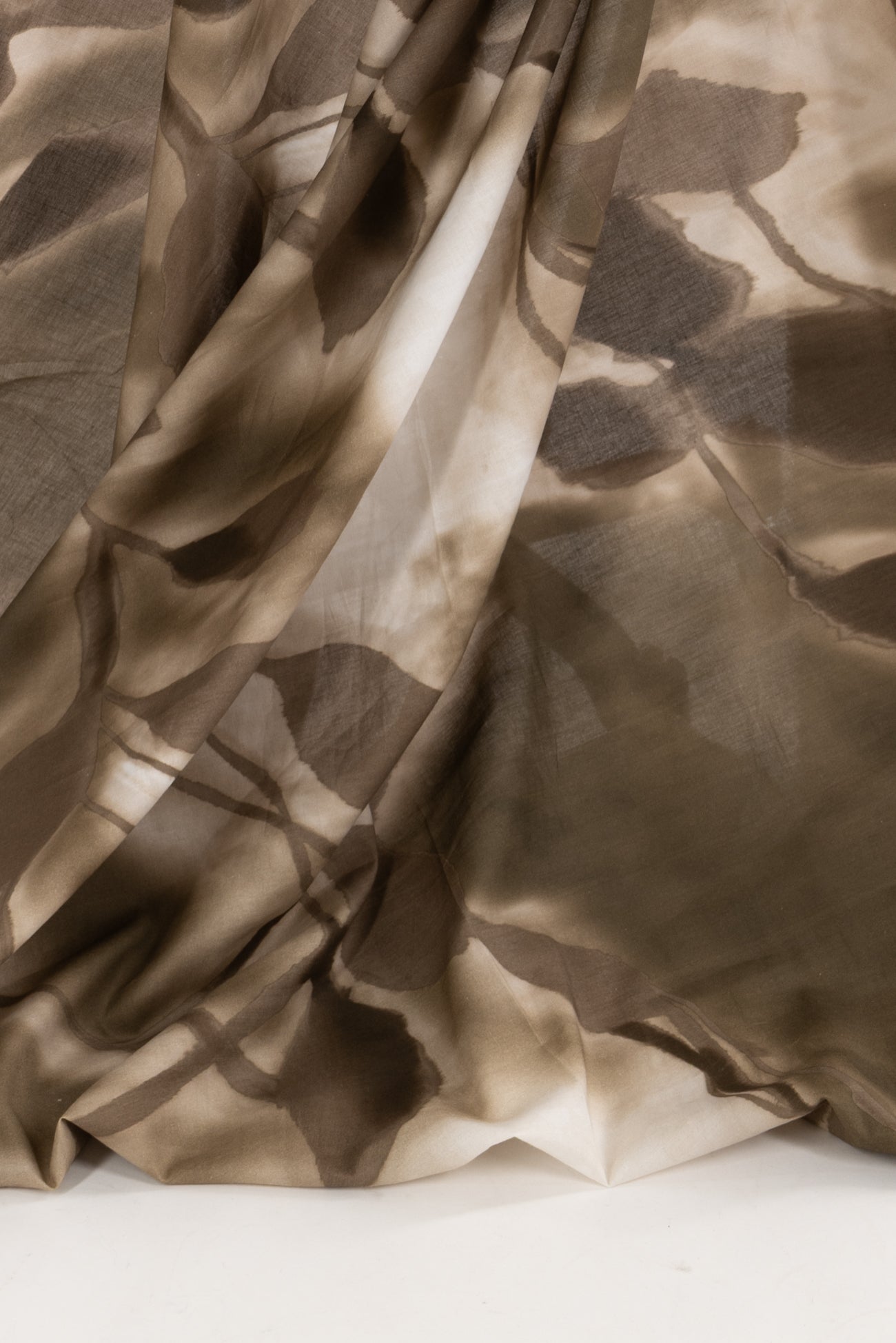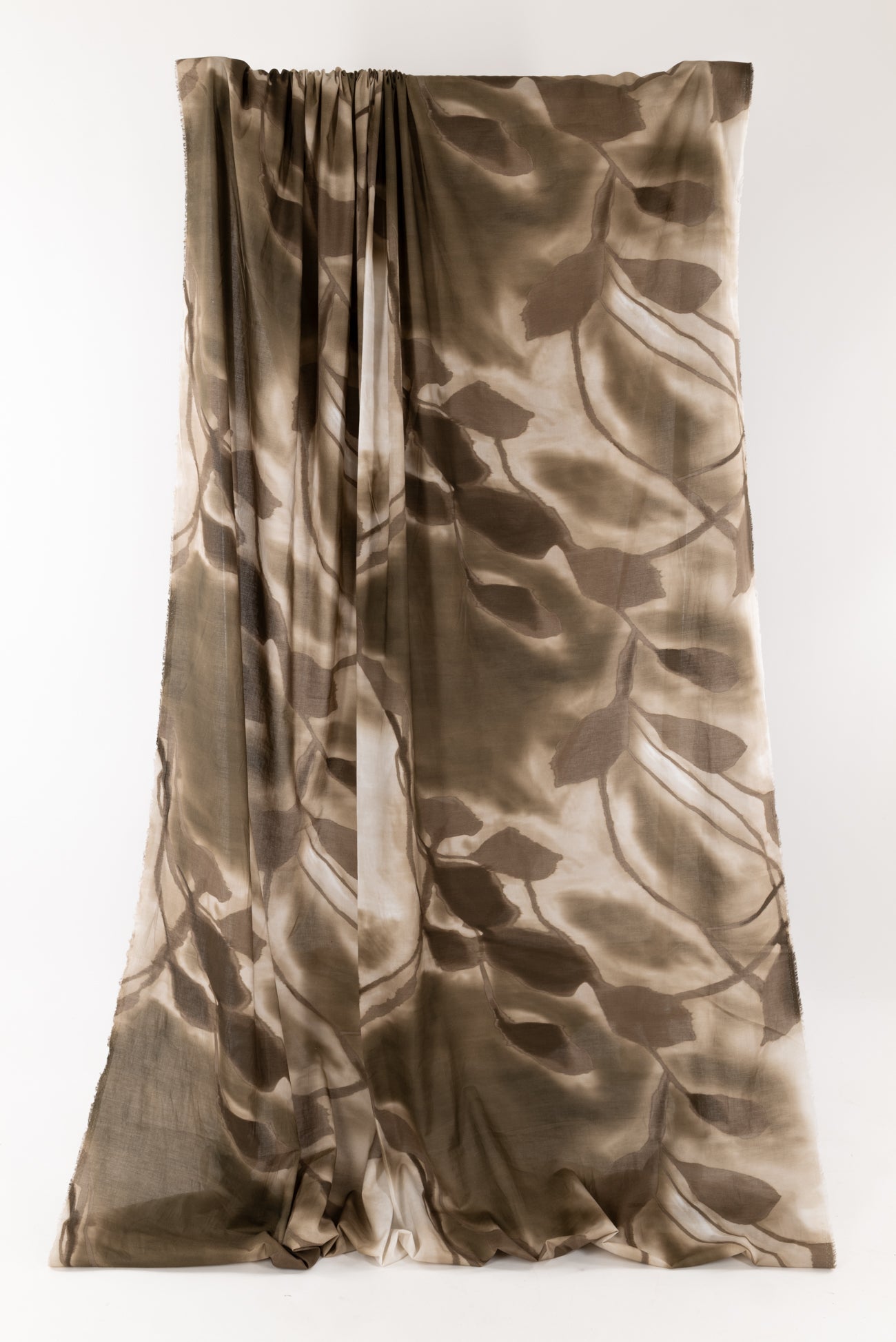 Stunning painterly botanical in shadowy shades of brown, digitally printed on an exceptional quality cotton woven. Elegant designer deadstock from an Italian mill is lightweight, with a soft hand, 25½" repeat and light drape. Right for a shirt, dress, tunic, cardi, caftan, kimono, loungewear, soft pant, men's or children's.