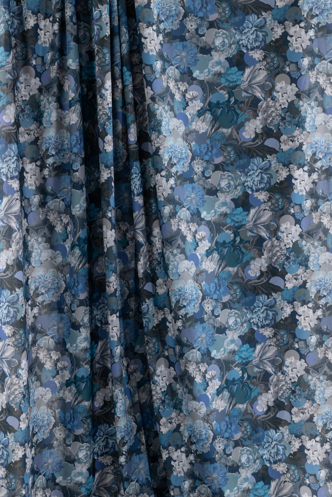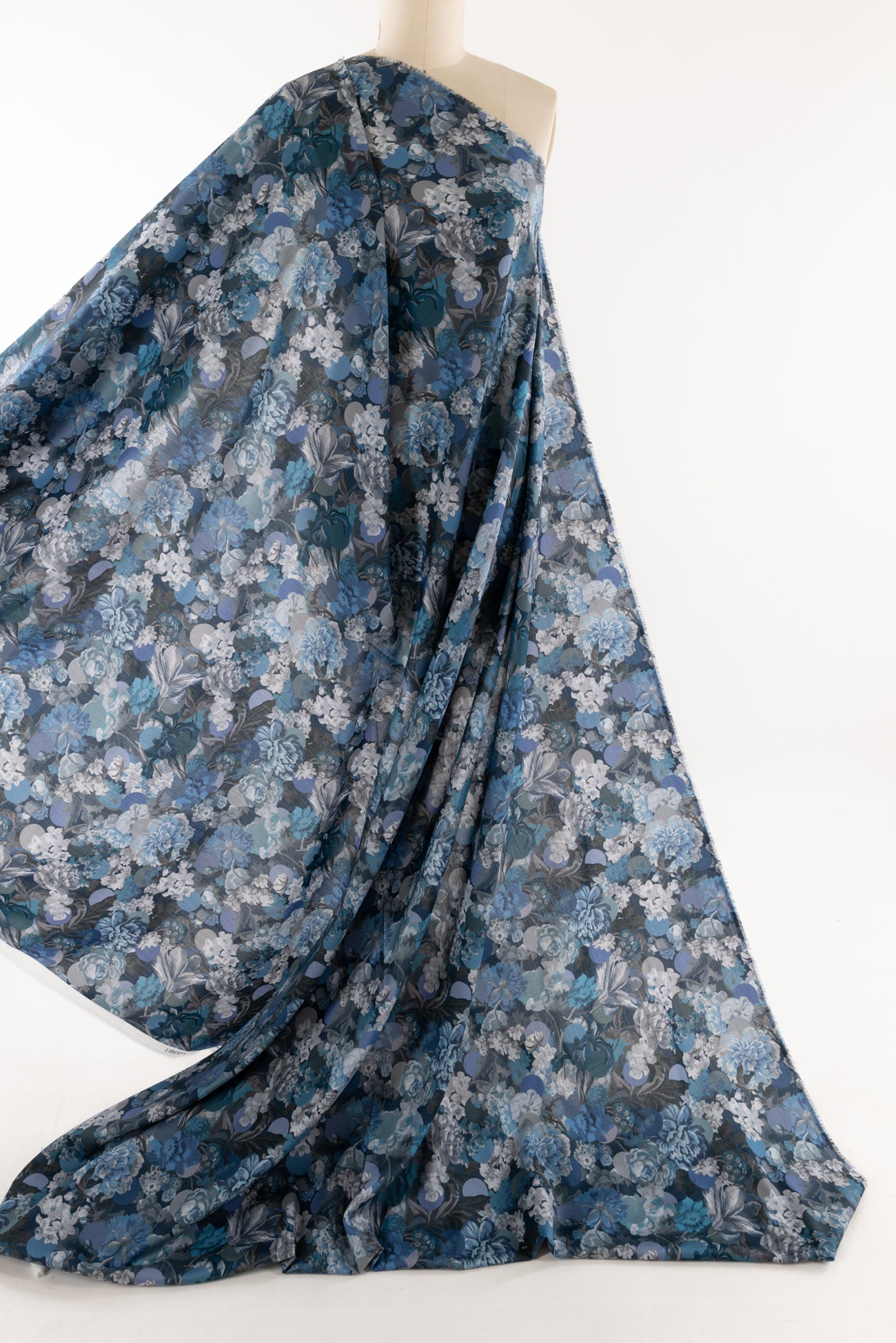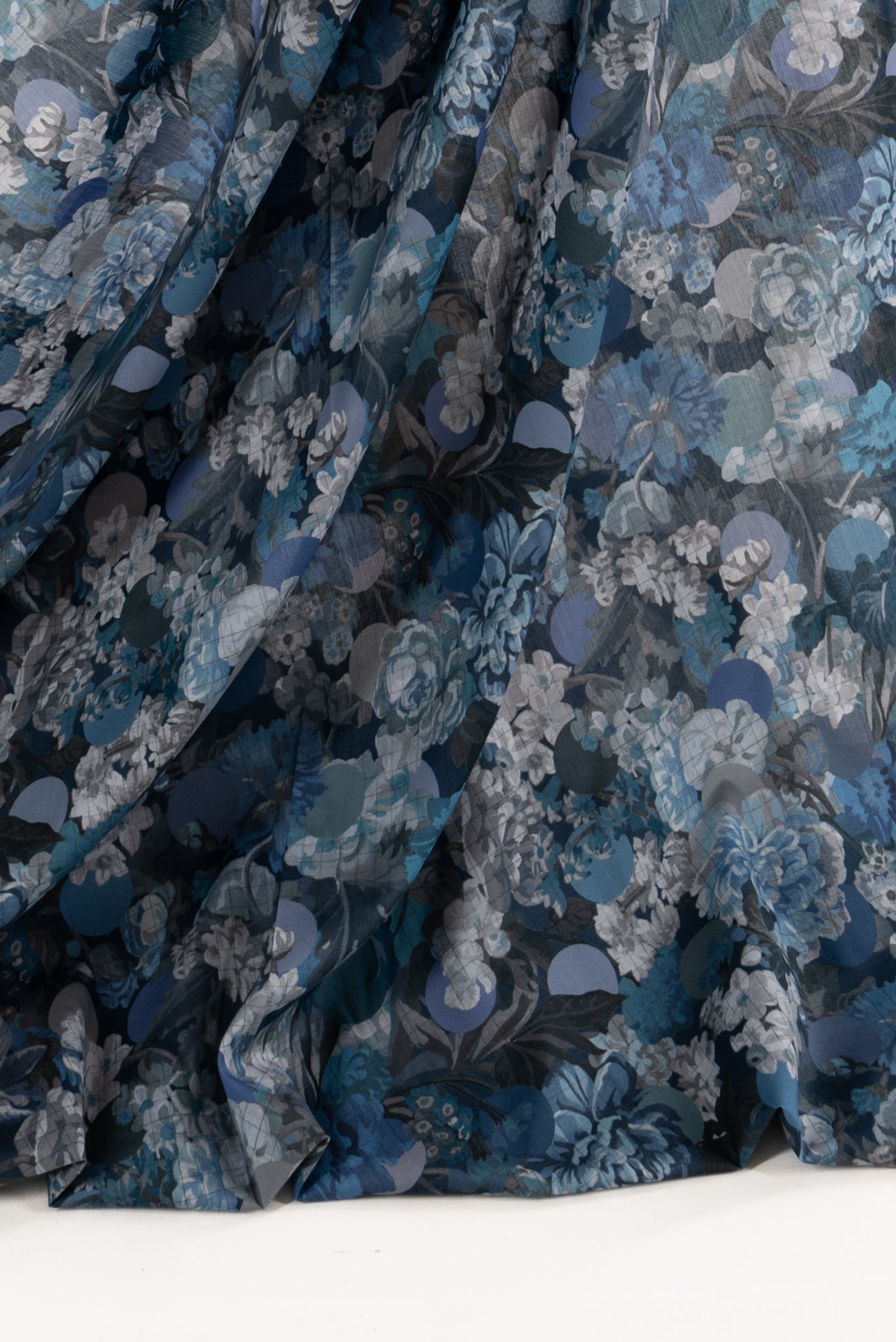 Contemporary floral inspired by vintage Liberty designs in shades of blue and gray with lavender is overlaid with a delicate black grid. Produced in Northern Italy for Liberty of London, printed on the renowned and exceptional Tana Lawn, the cotton that behaves and feels like silk. Fine-grained, with a cool, smooth, soft hand, fluid drape, and depth of color. Perfect for a shirt, dress, skirt, tunic, soft pant, caftan, loungewear, children's or men's clothes, accessories, or home decor. Right to wear everyday or for statement pieces. One-way design 24¾" repeat. OEKO-TEX® certified.
