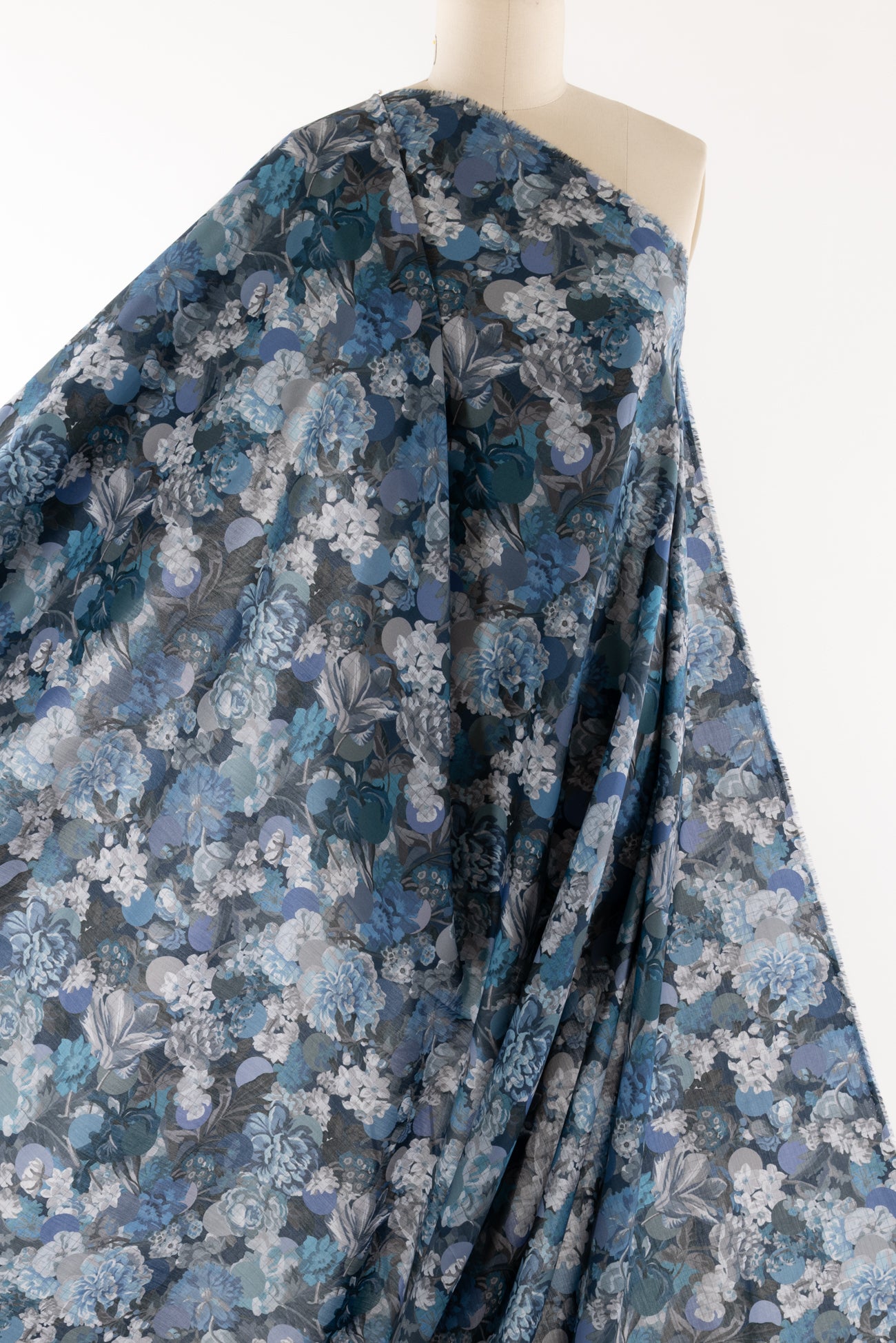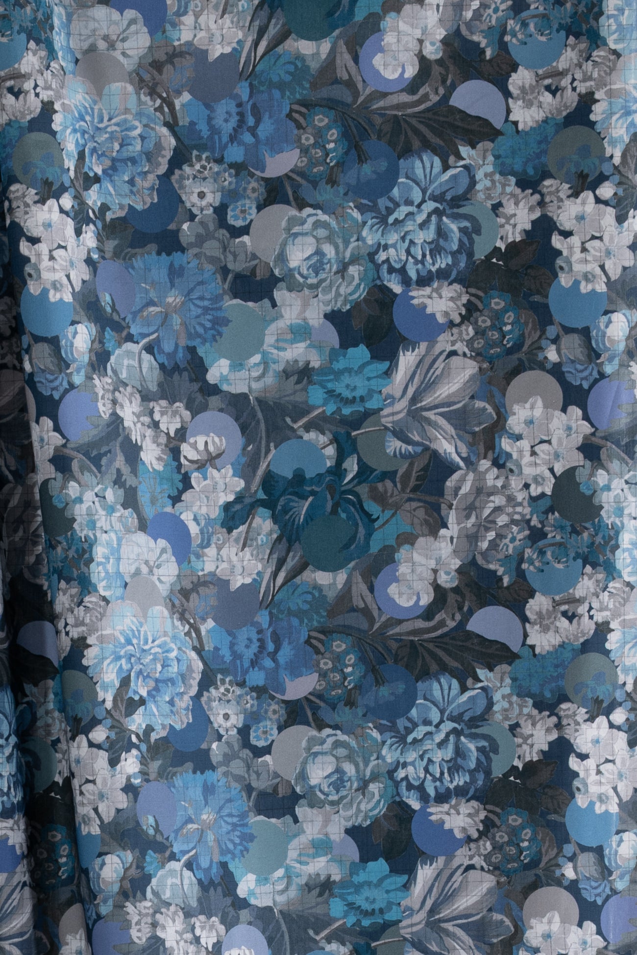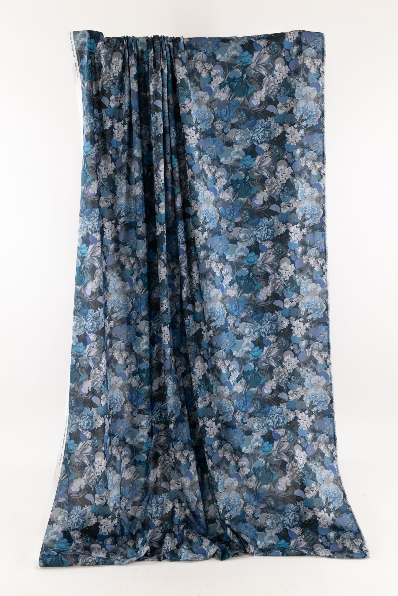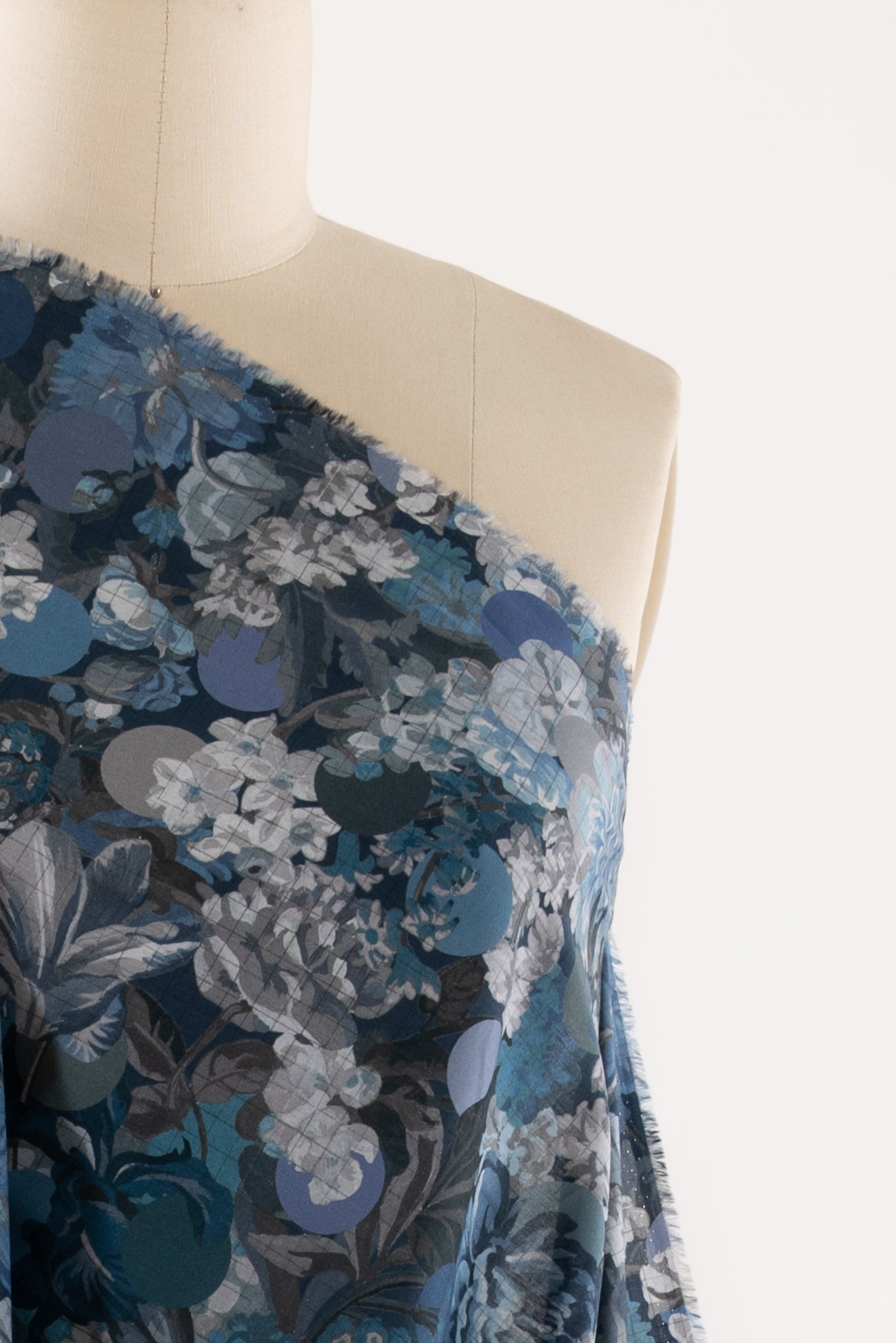 Contemporary floral inspired by vintage Liberty designs in shades of blue and gray with lavender is overlaid with a delicate black grid. Produced in Northern Italy for Liberty of London, printed on the renowned and exceptional Tana Lawn, the cotton that behaves and feels like silk. Fine-grained, with a cool, smooth, soft hand, fluid drape, and depth of color. Perfect for a shirt, dress, skirt, tunic, soft pant, caftan, loungewear, children's or men's clothes, accessories, or home decor. Right to wear everyday or for statement pieces. One-way design 24¾" repeat. OEKO-TEX® certified.