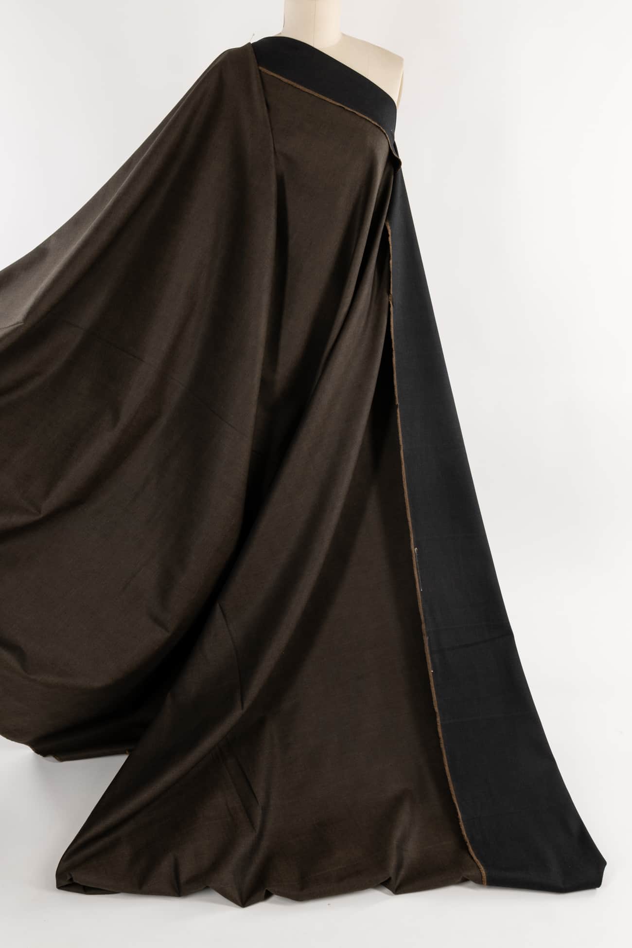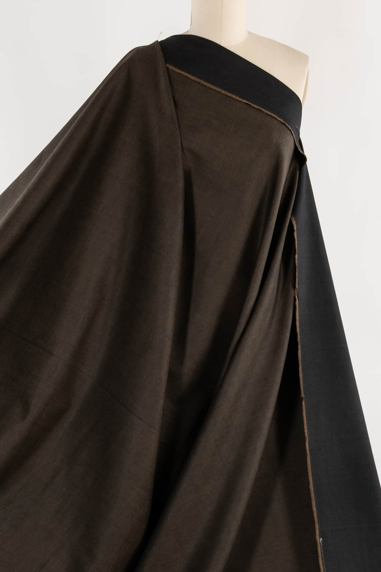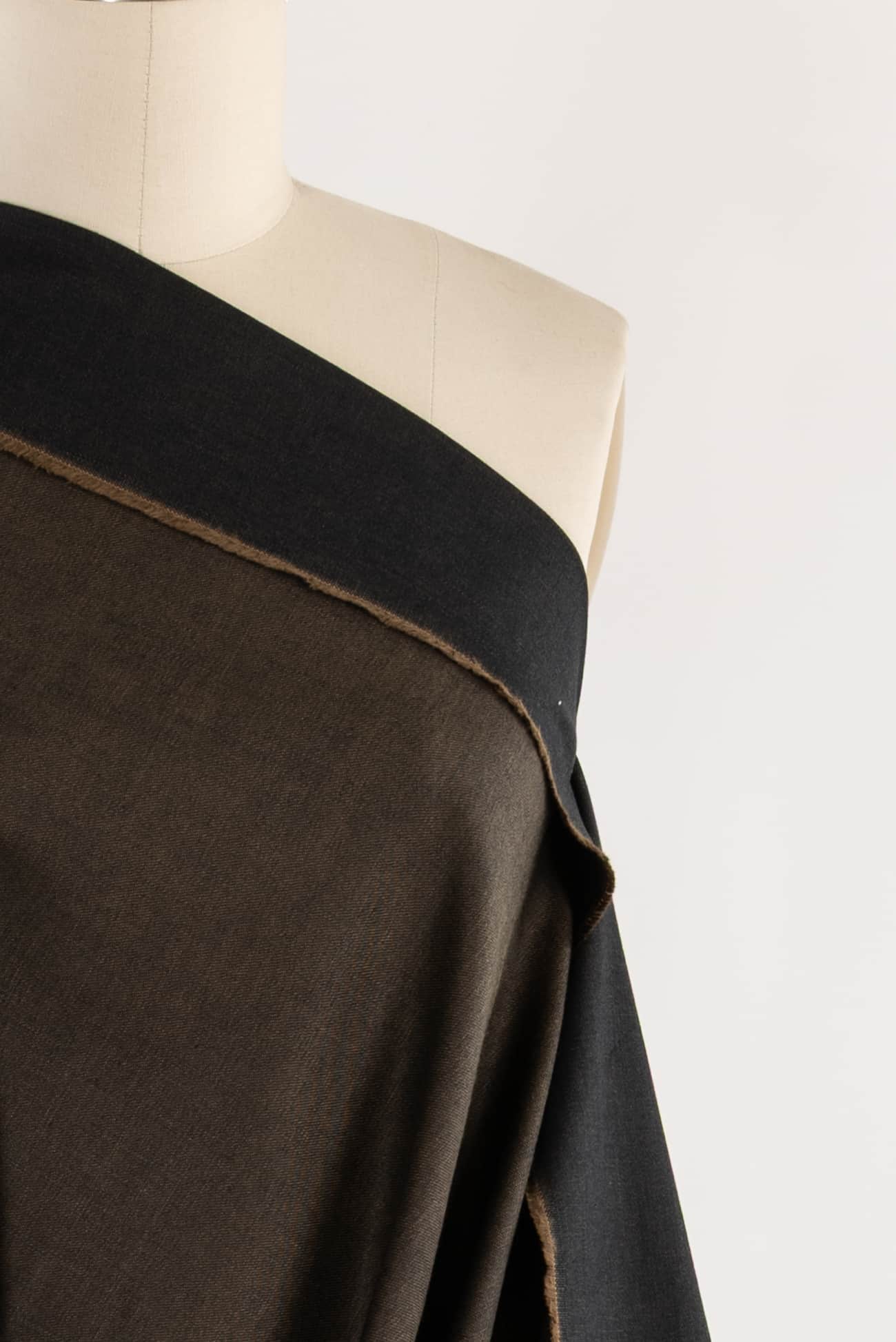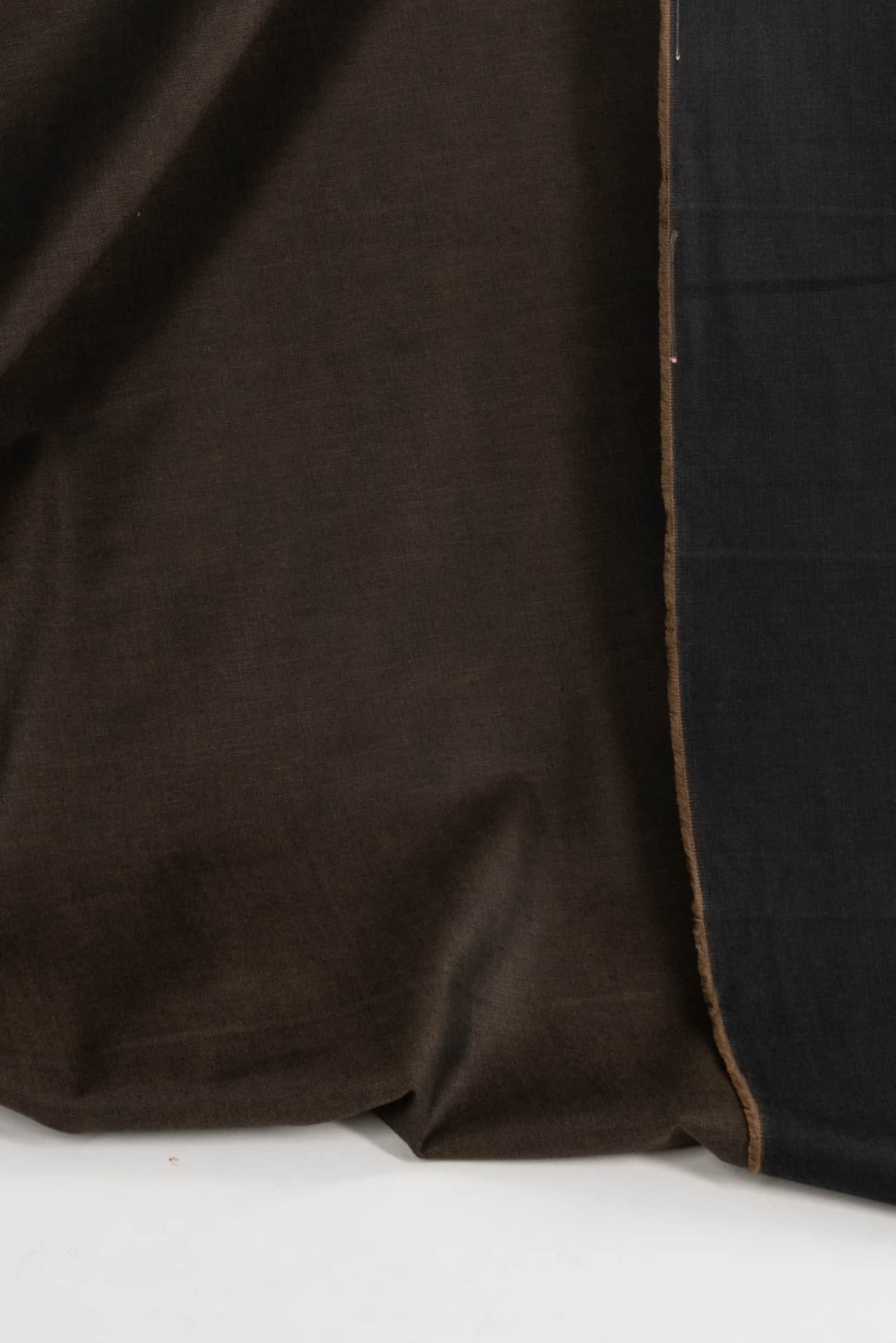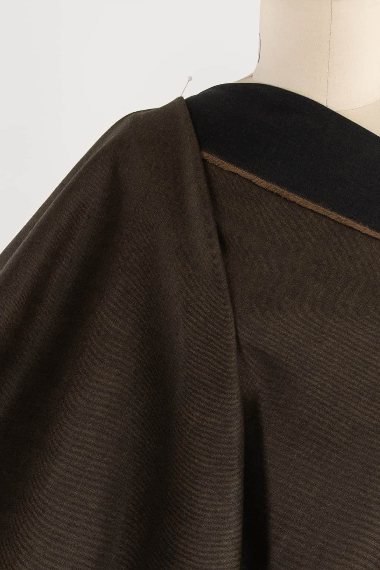 Exceptional alder brown/black cotton denim, top quality deadstock from an Italian mill, made for Milanese brand J@cob Cohën, known for 'transforming denim into everyday luxury'. Think $400 jeans. Mid/heavyweight with a lightly twilled smooth hand, black dominant on the right side, cool alder brown dominant on the back and a crisp drape. No stretch. Right for workwear, jeans, a light jacket or coat, dress, skirt, tunic, top, jumpsuit or men's. Limited quantity available.
