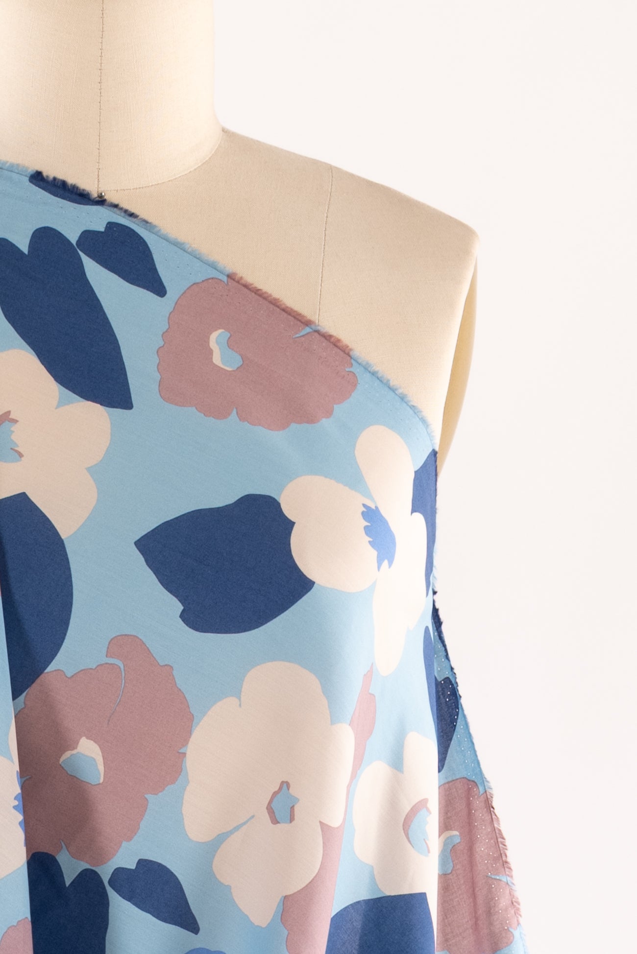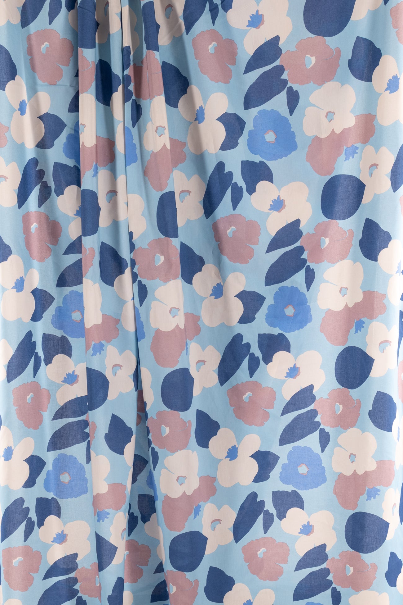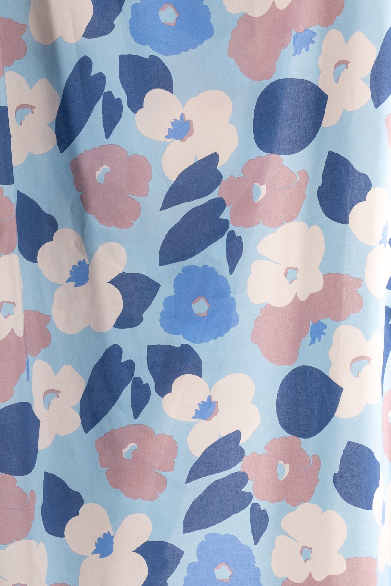 Modern liberty floral in tones of blue, off pink, and ivory on a pale blue background. Deadstock from a NYC designer, produced in Northern Italy for Liberty of London, printed on the renowned and exceptional Tana Lawn, the cotton that behaves and feels like silk. Fine-grained, with a cool, smooth, soft hand, fluid drape, depth of color. Perfect for a shirt, dress, skirt, tunic, soft pant, caftan, loungewear, children or men, accessories or home decor. Right to wear everyday or for statement pieces. OEKO-TEX® certified. One-way design, 8" repeat