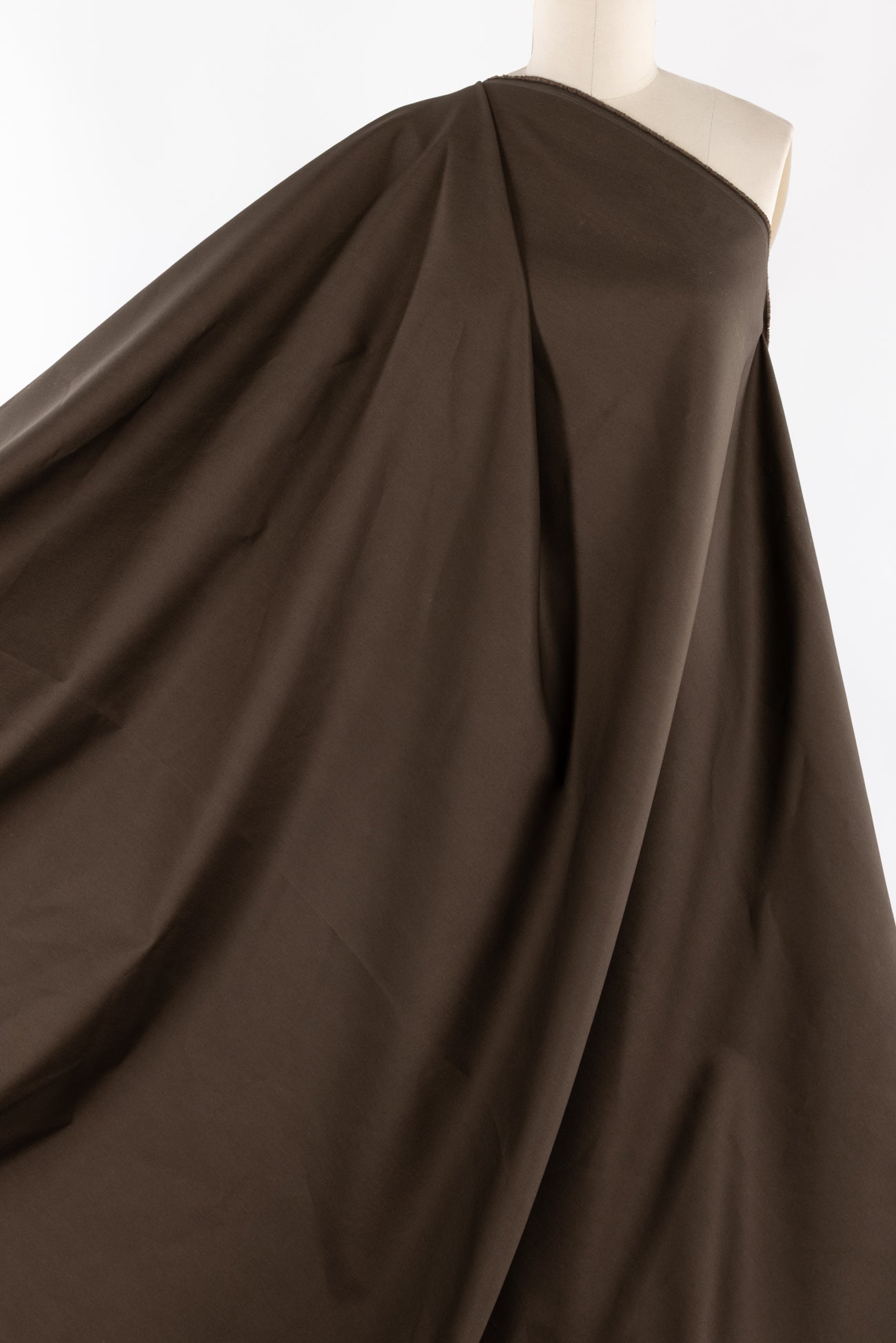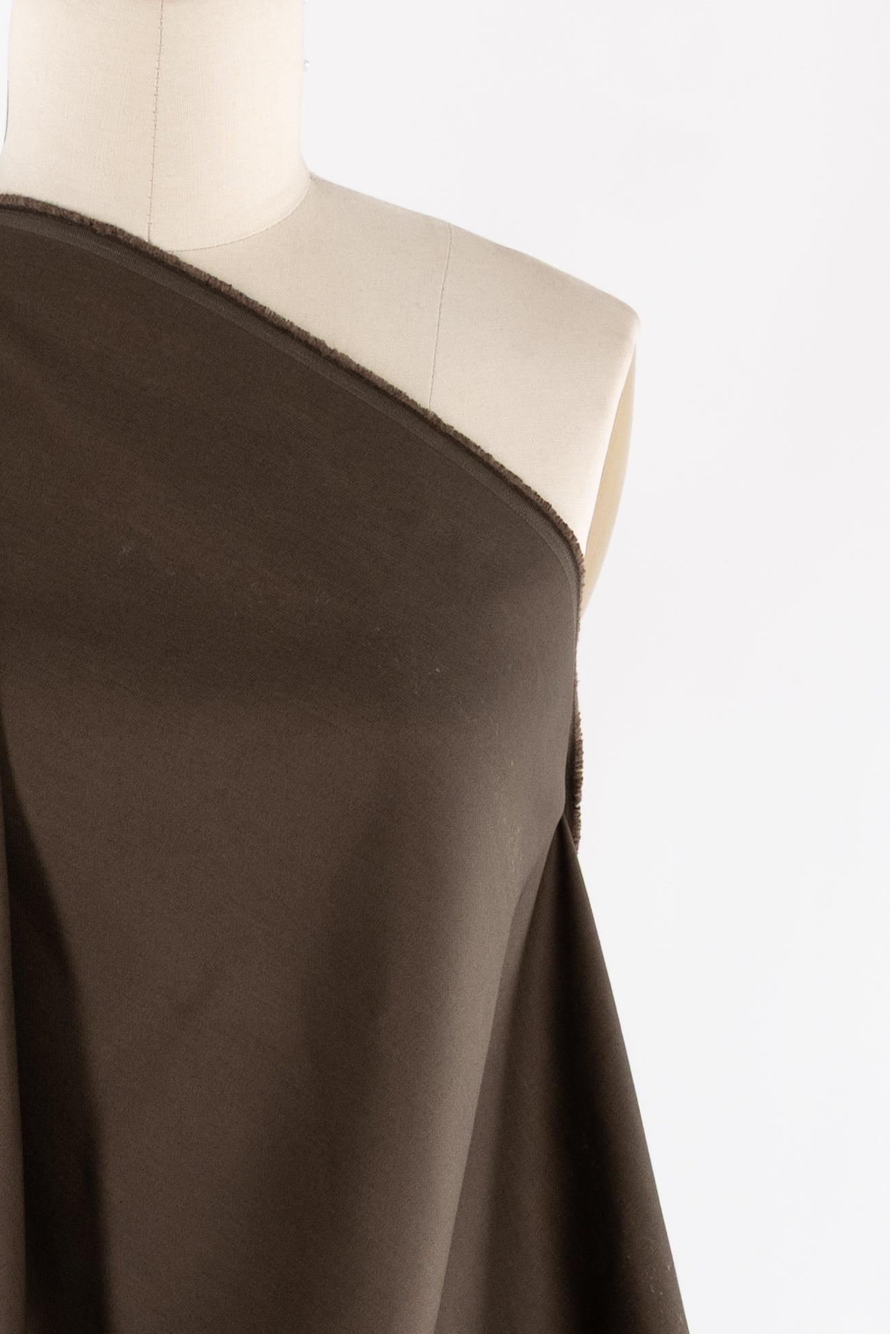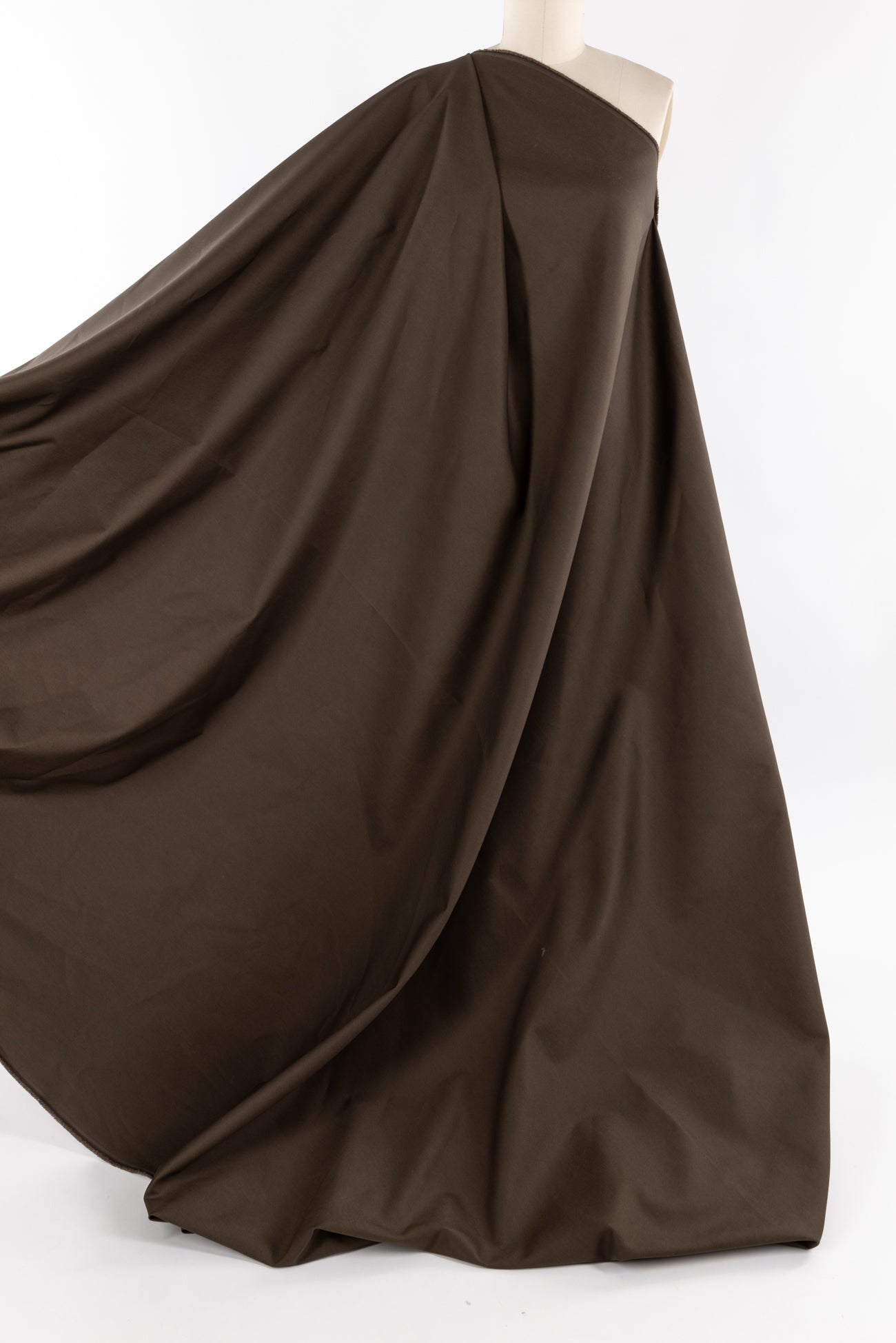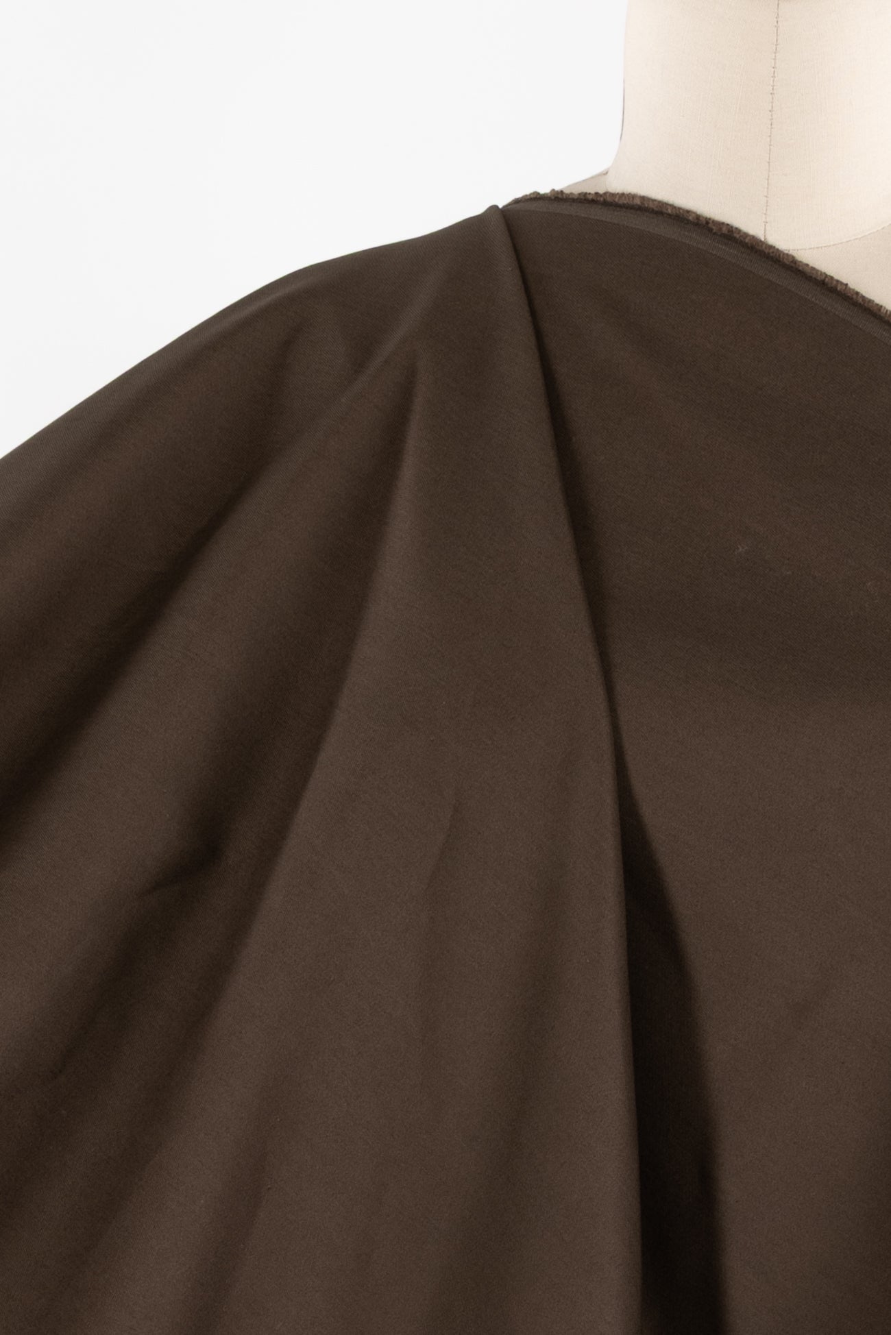 Rich earthy mocha denim, beautiful quality deadstock from an east coast designer. Heavy/mid-weight, with a smooth twill hand and structured drape. No stretch. Right for a jacket, coat, vest, pants, jeans, jumpsuit, structured dress, skirt, workwear or men's.