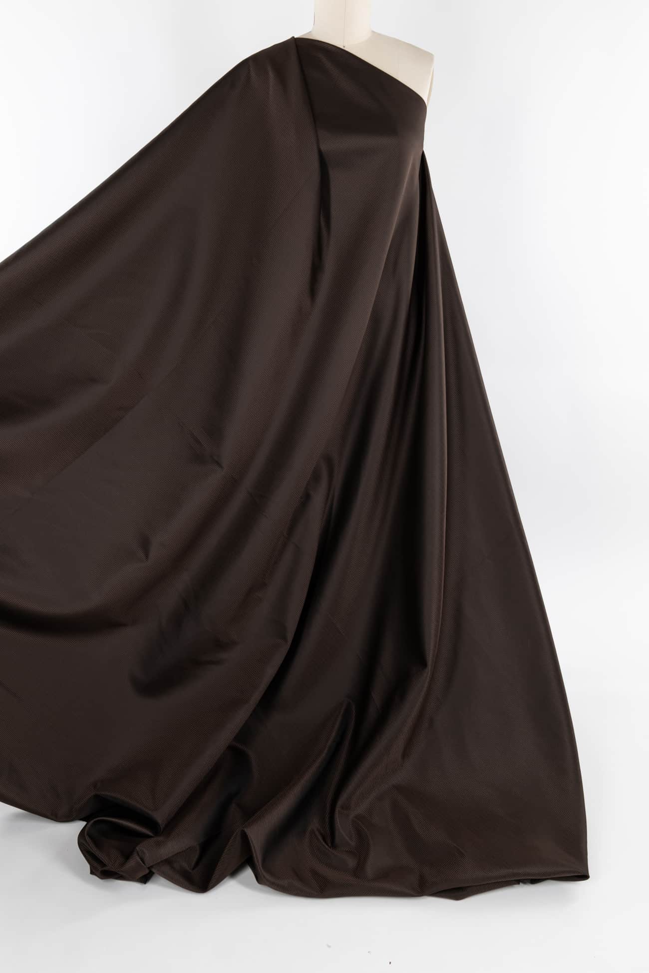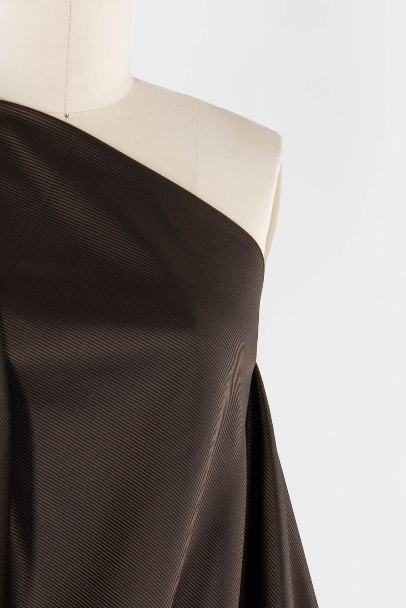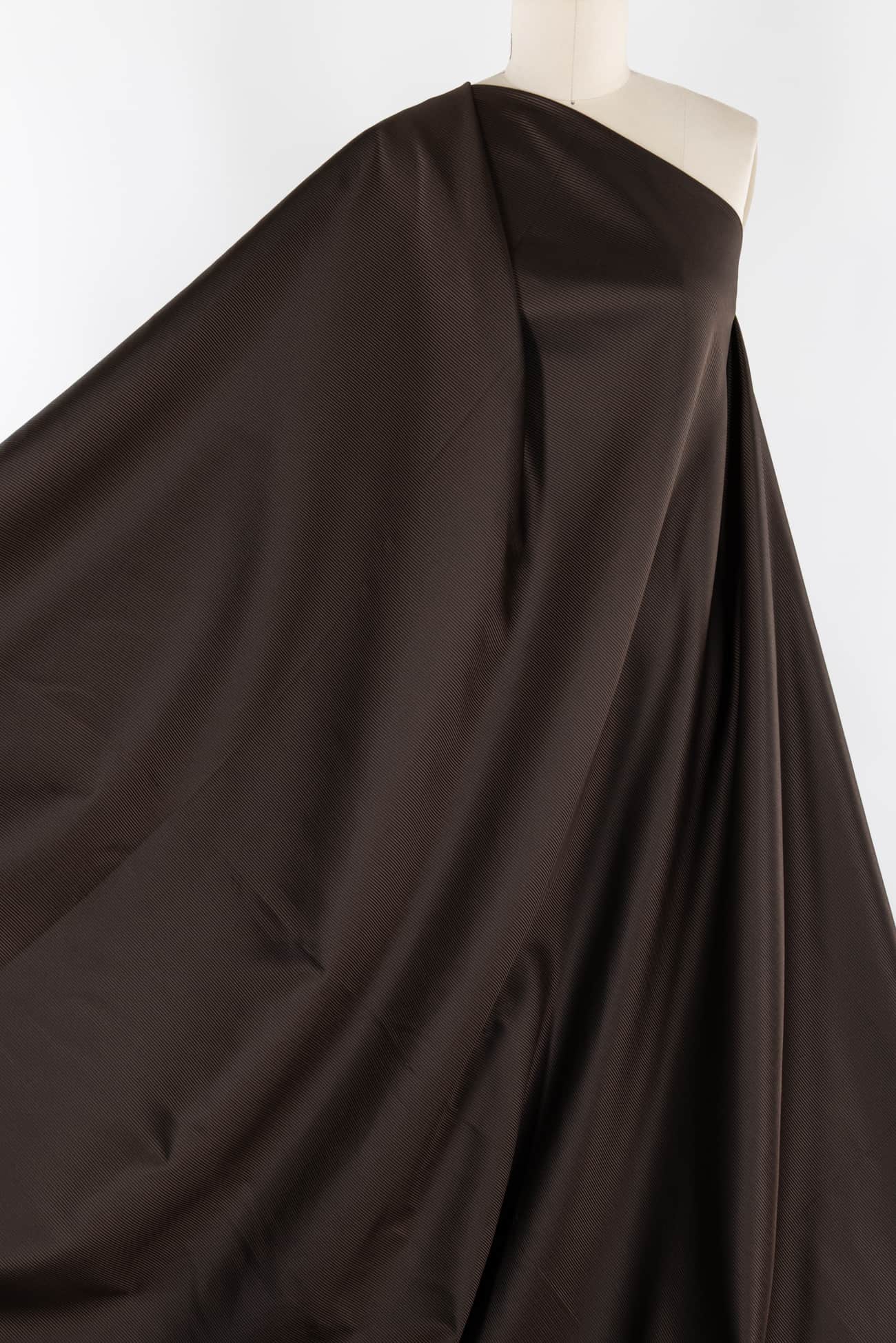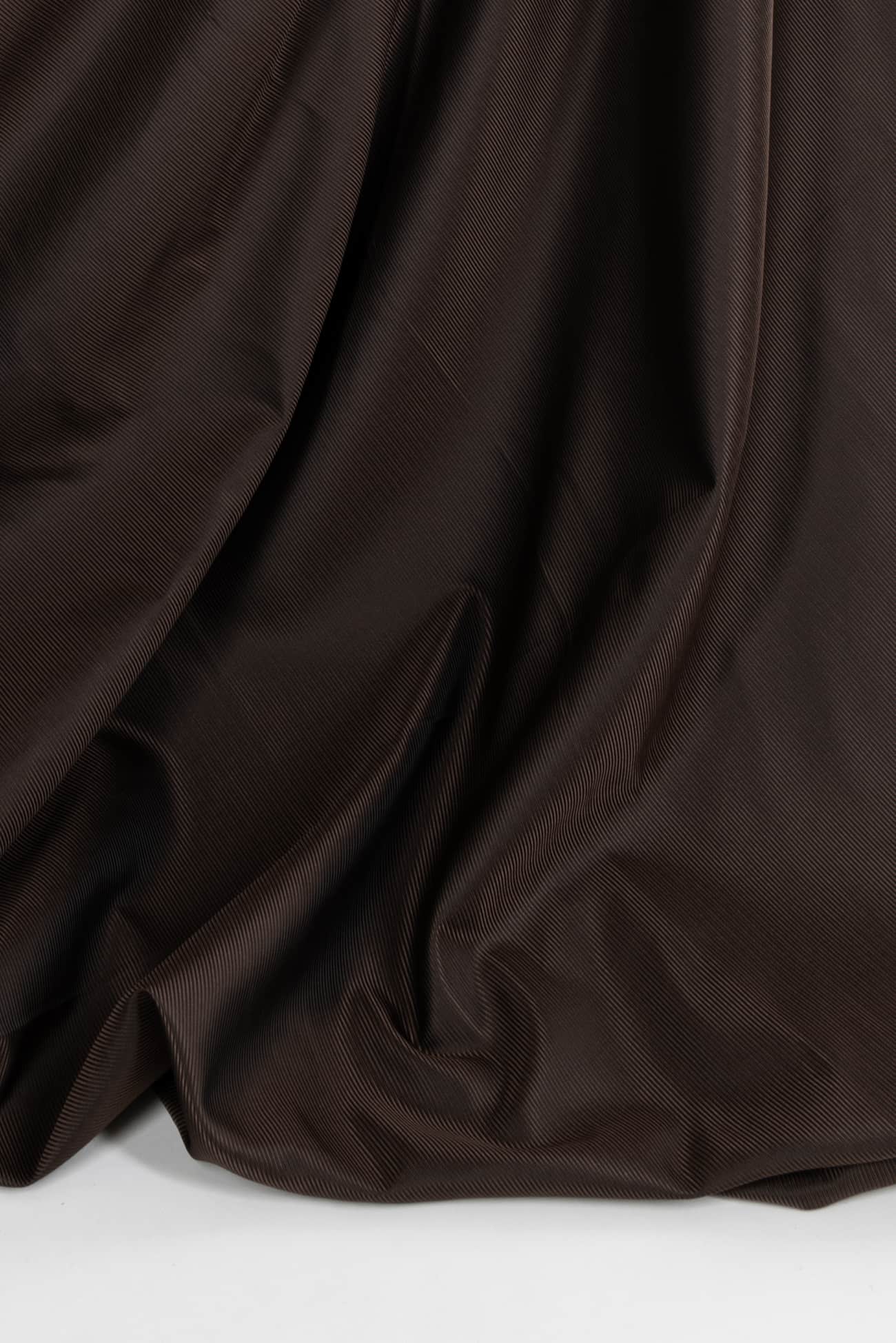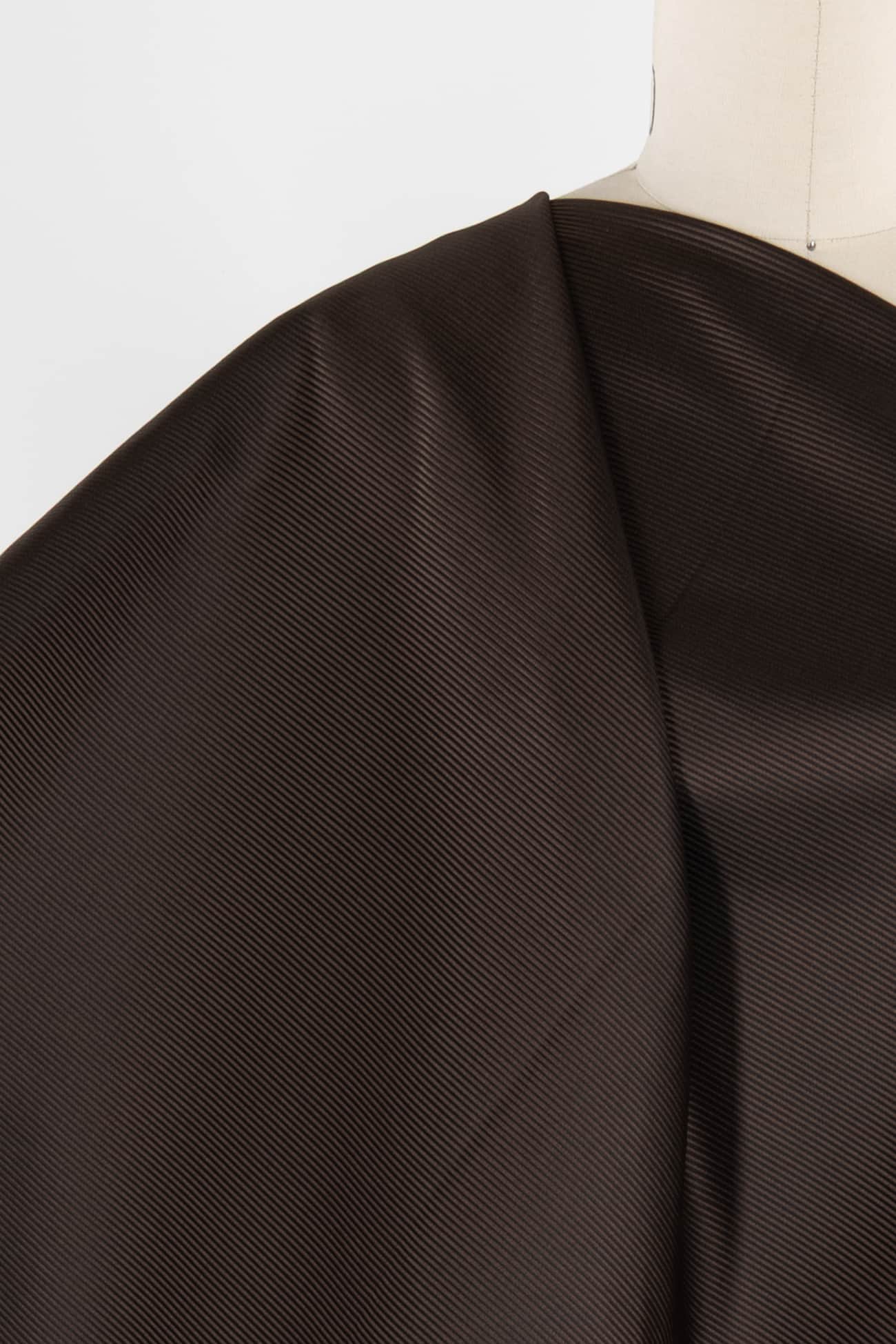 Coffee brown and black fine grained mini ottoman, elegant deadstock from an east coast designer. Mid-weight, stable, with a fine ribbed silky vertical texture, smooth lustrous hand and lightly crisp drape. More coffee brown on the top side and more black on the other. The weight is right for a jacket, duster coat, vest, structured dress, skirt or pants. As shown here in Marcy's OOP Vogue 7746.