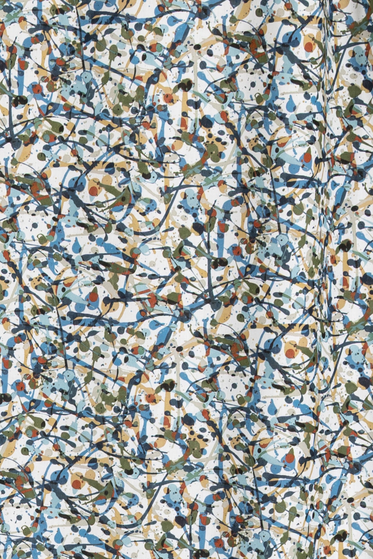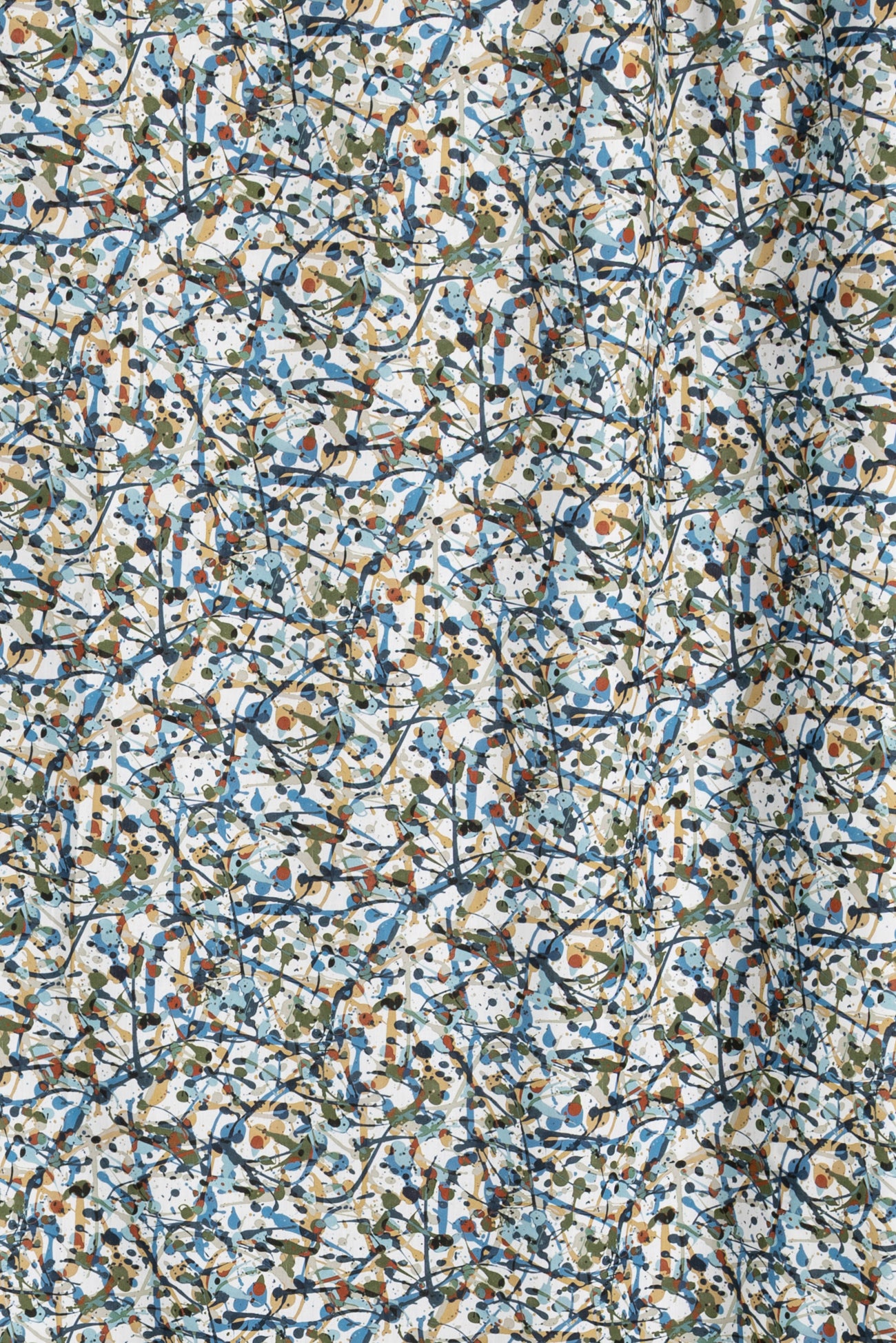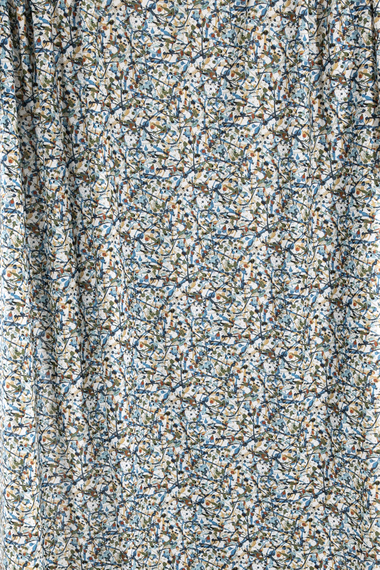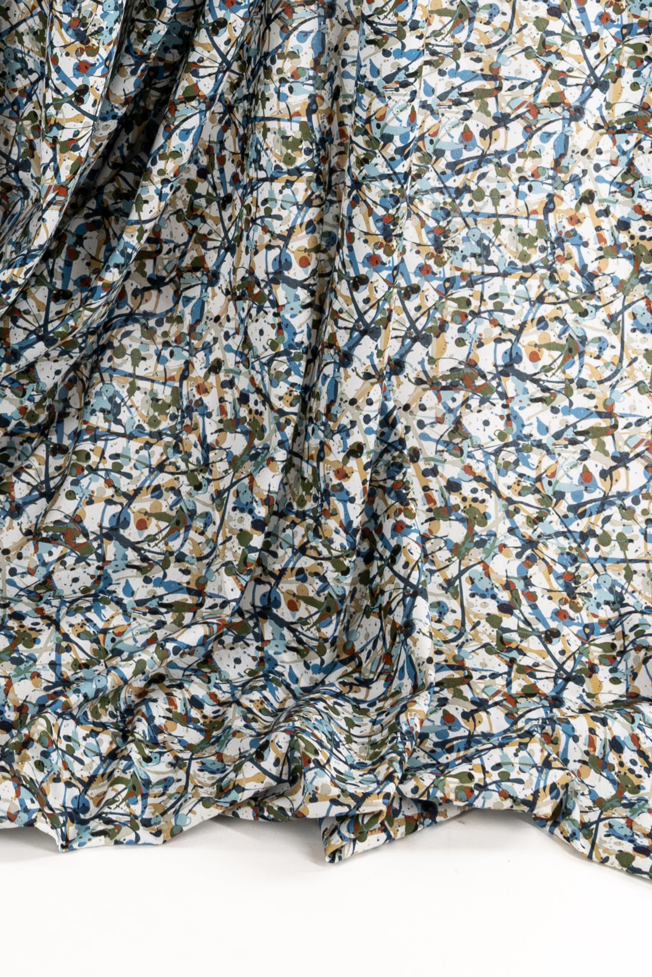 Energetic expressive abstract in rich shades of blue with olive, rust and camel, from Liberty's studios, inspired by the rhythm of contemporary creatives. Produced in Northern Italy for Liberty of London, printed on the renowned and exceptional Tana Lawn, the cotton that behaves and feels like silk. Fine-grained, with a cool, smooth, soft hand, fluid drape and depth of color. Perfect for a shirt, dress, skirt, tunic, caftan, loungewear, children's, accessories, or home decor. Right to wear everyday or for statement pieces. One-way design, 8¼" repeat. OEKO-TEX® certified.