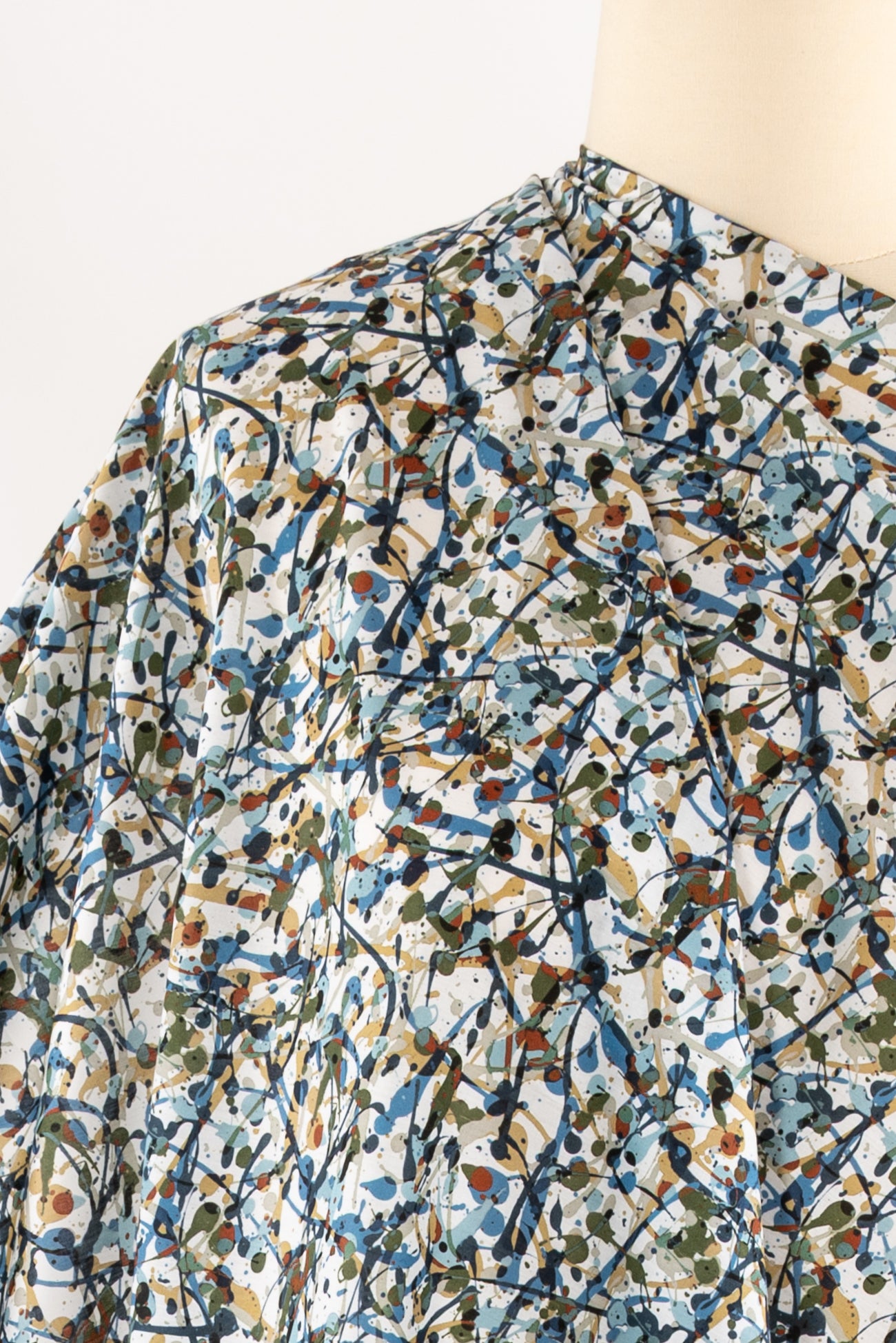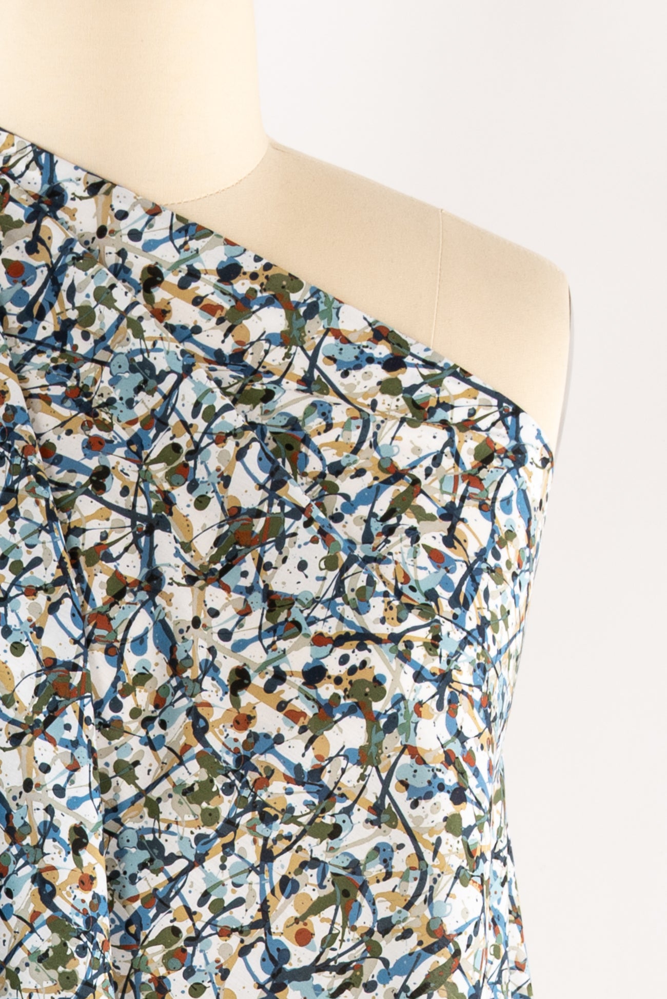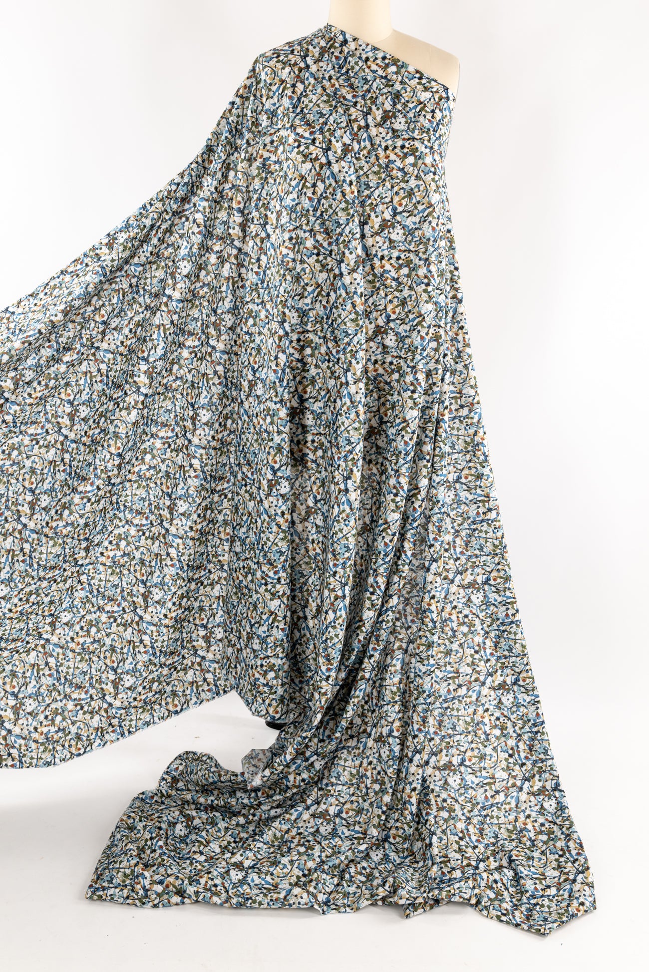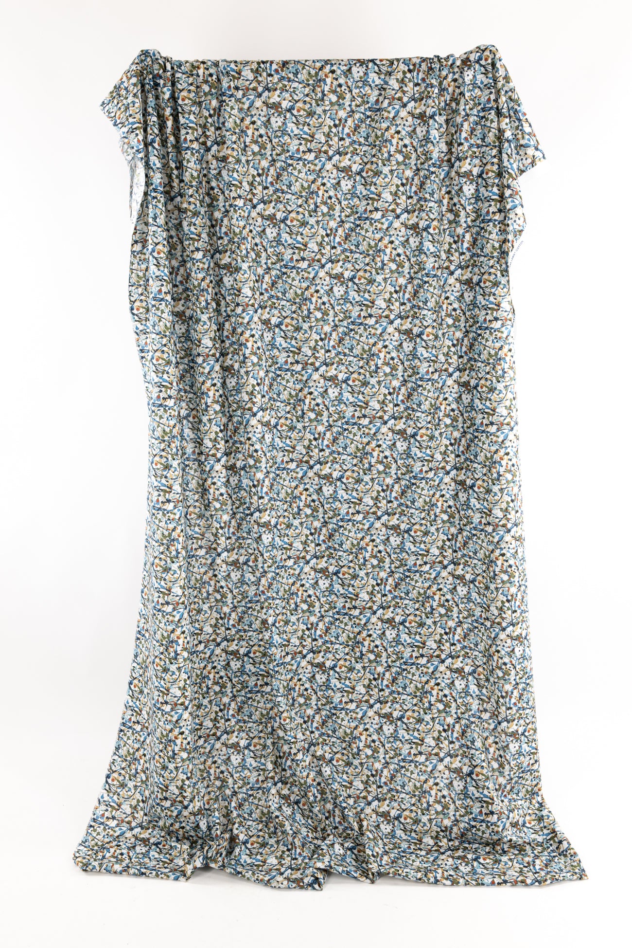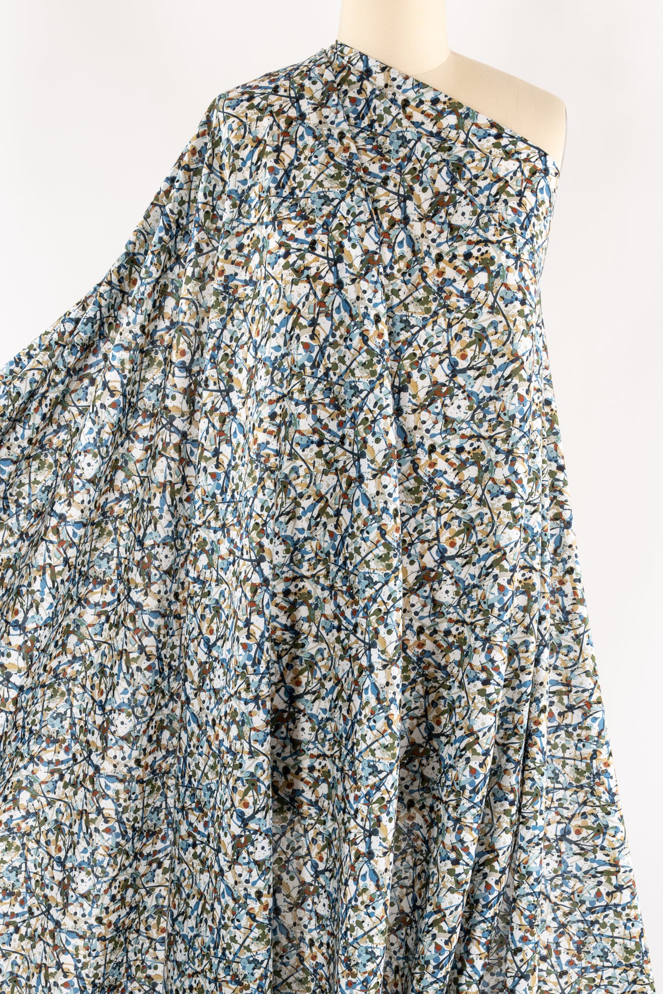 Energetic expressive abstract in rich shades of blue with olive, rust and camel, from Liberty's studios, inspired by the rhythm of contemporary creatives. Produced in Northern Italy for Liberty of London, printed on the renowned and exceptional Tana Lawn, the cotton that behaves and feels like silk. Fine-grained, with a cool, smooth, soft hand, fluid drape and depth of color. Perfect for a shirt, dress, skirt, tunic, caftan, loungewear, children's, accessories, or home decor. Right to wear everyday or for statement pieces. One-way design, 8¼" repeat. OEKO-TEX® certified.