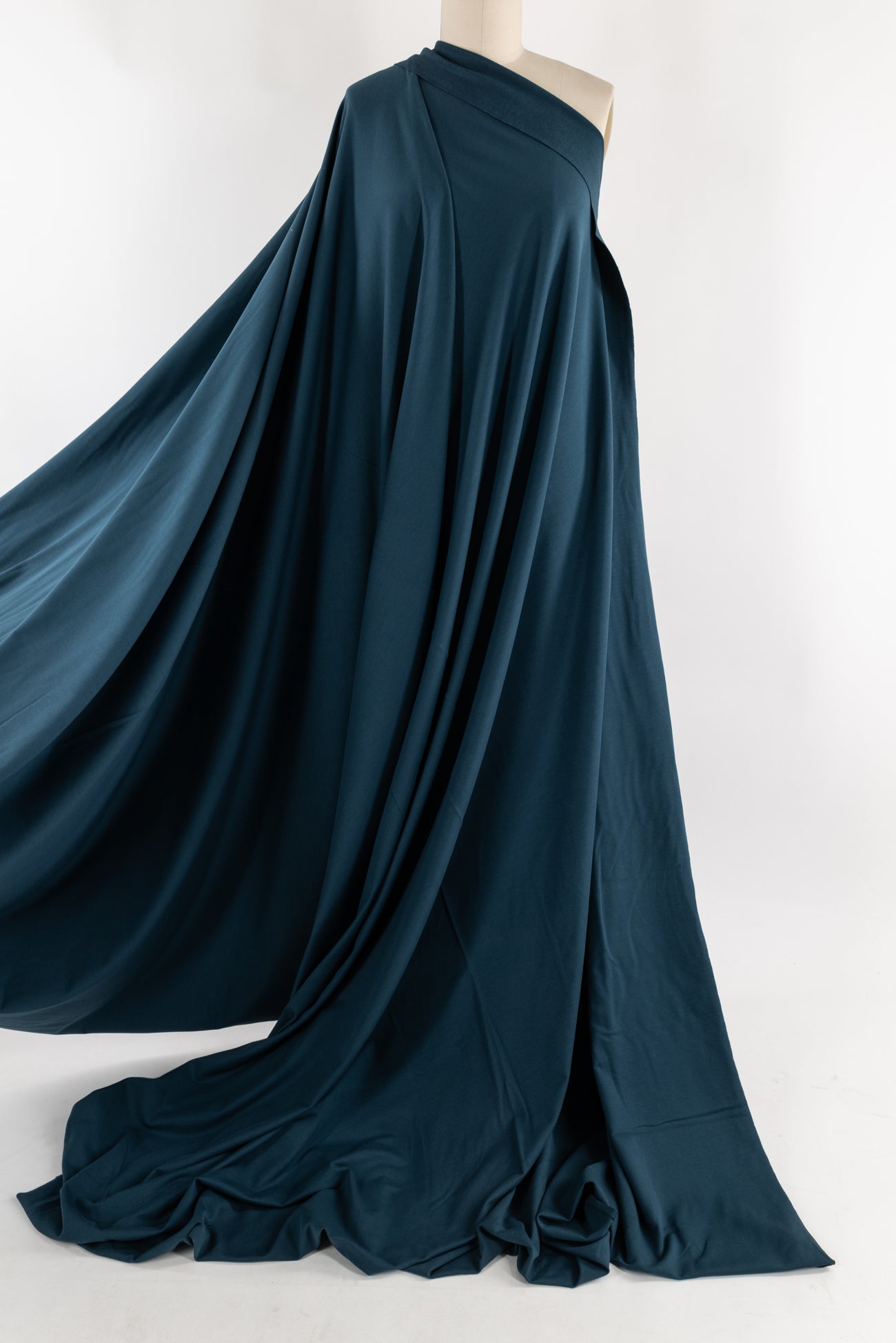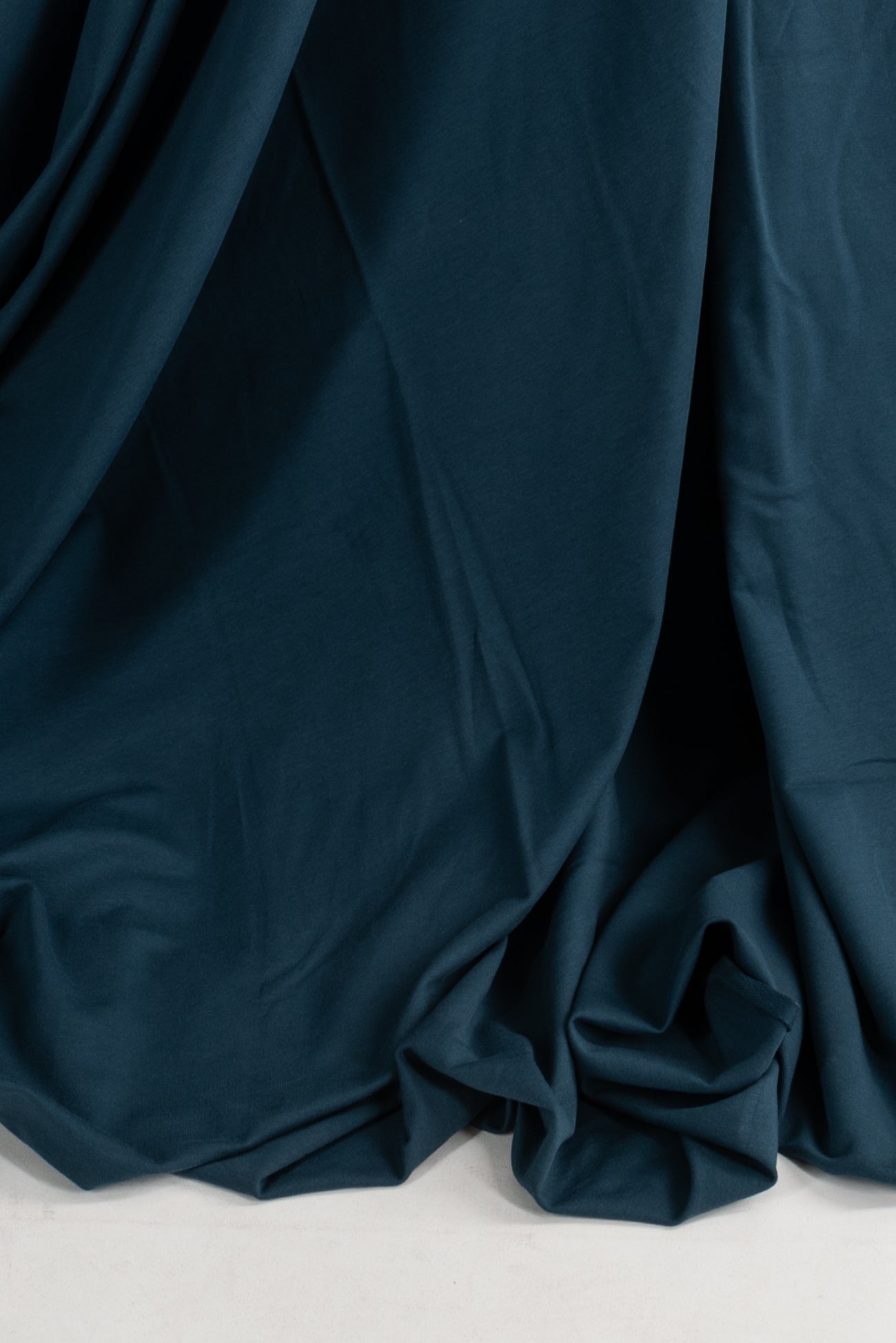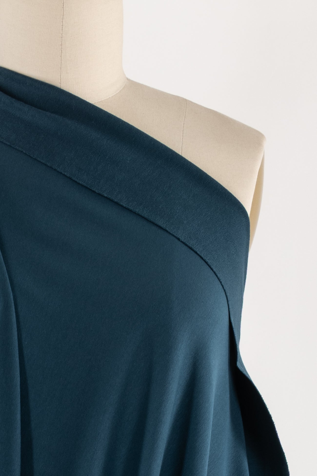 Cozy, lush French terry in subtle green-teal. Beautiful quality, mid-weight, stable, with a smooth face, soft knit backside, soft supple drape, and 4-way stretch with good recovery and rolling at the cut edge. Skims the body in a flattering way. Right for a hoodie, tunic, sweatshirt, t-shirt, top, jacket, vest, loungewear, soft pant, or men's. Oeko-Tex® certified.
