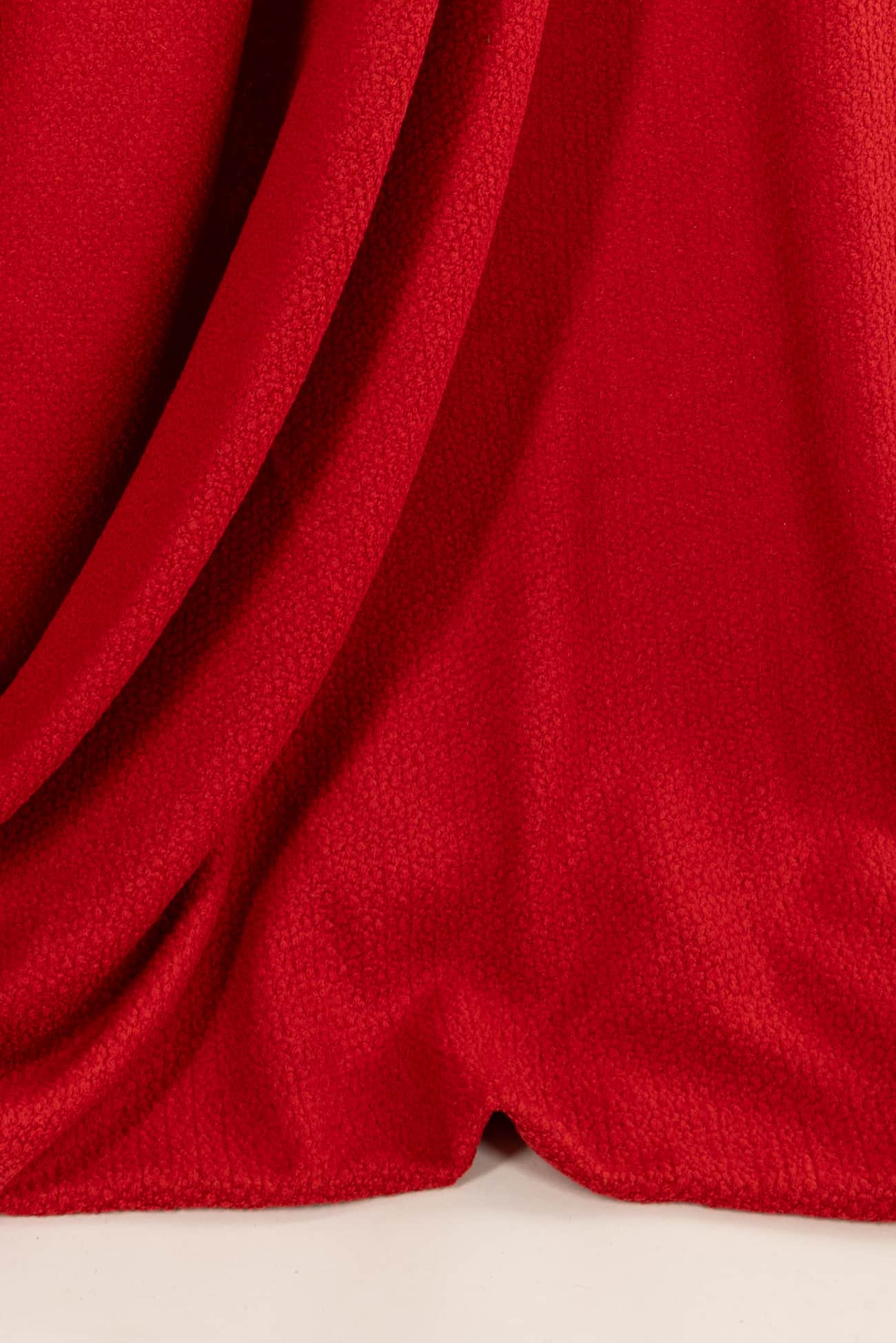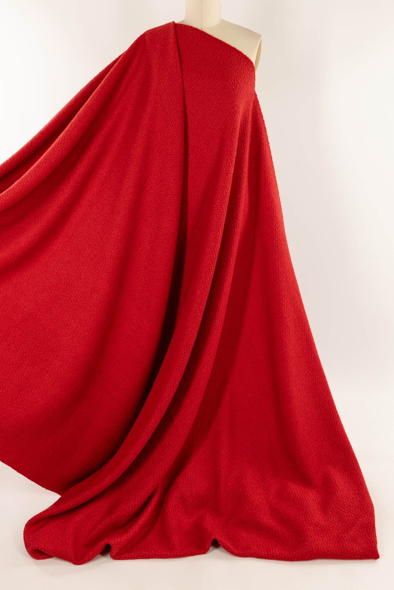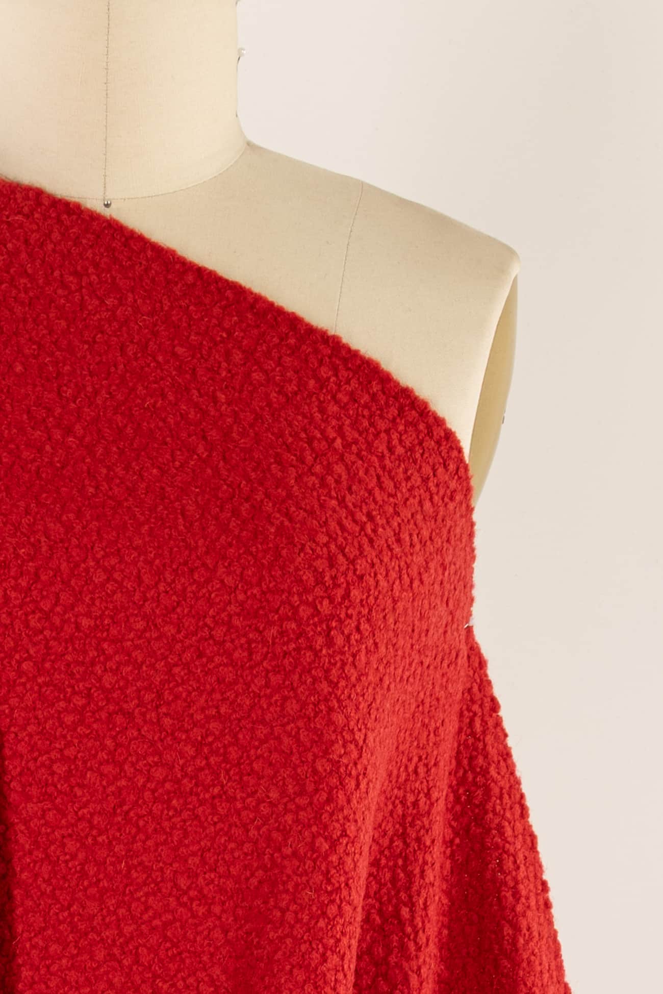 Color saturated warm toned muted persimmon boucle knit, deadstock produced in South Korea for an upscale LA designer. Heavy/mid weight with a bit of loft, an appealing cozy textured boucle surface, smooth on the back side and light crosswise stretch. No rolling at the cut edge, no raveling, so no need for a seam finish (lining optional), - will be easy to sew and a pleasure to wear. Beautiful quality! Right for a coat, jacket, vest, sweater, poncho.