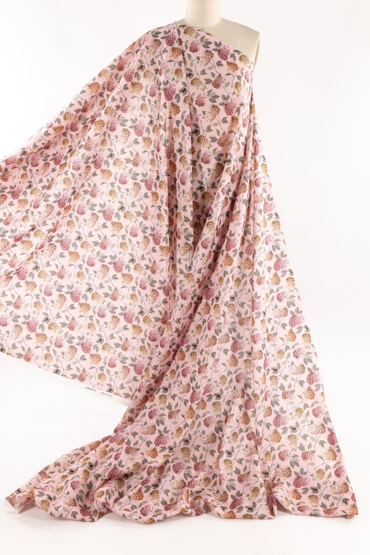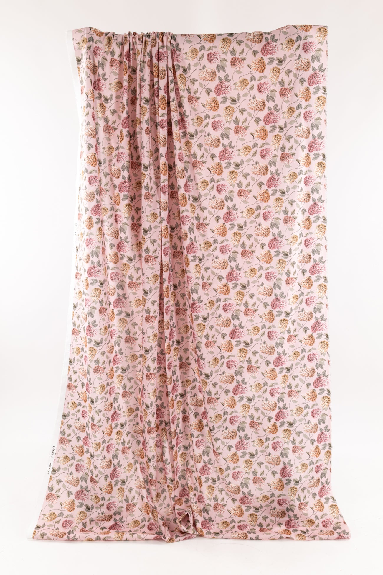 Modern version of a classic Liberty floral in pink and green on a soft pink background. Deadstock from a NYC designer, produced in Northern Italy for Liberty of London, printed on the renowned and exceptional Tana Lawn, the cotton that behaves and feels like silk. Fine-grained, with a cool, smooth, soft hand, fluid drape, depth of color. Perfect for a shirt, dress, skirt, tunic, soft pant, caftan, loungewear, children or men, accessories or home decor. Right to wear everyday or for statement pieces. OEKO-TEX® certified. One way design, 8" repeat