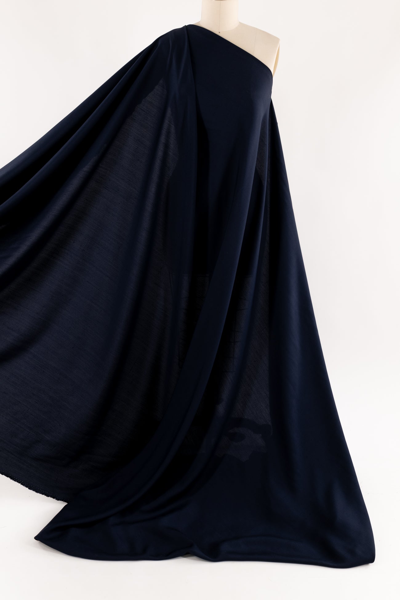 Deep navy blue in a true silk shantung woven. Fine quality deadstock from an LA designer. Light/mid-weight with a softly textured matte hand and fluid drape. Right for a shirt, tunic, dress, skirt, pant, kimono or caftan.