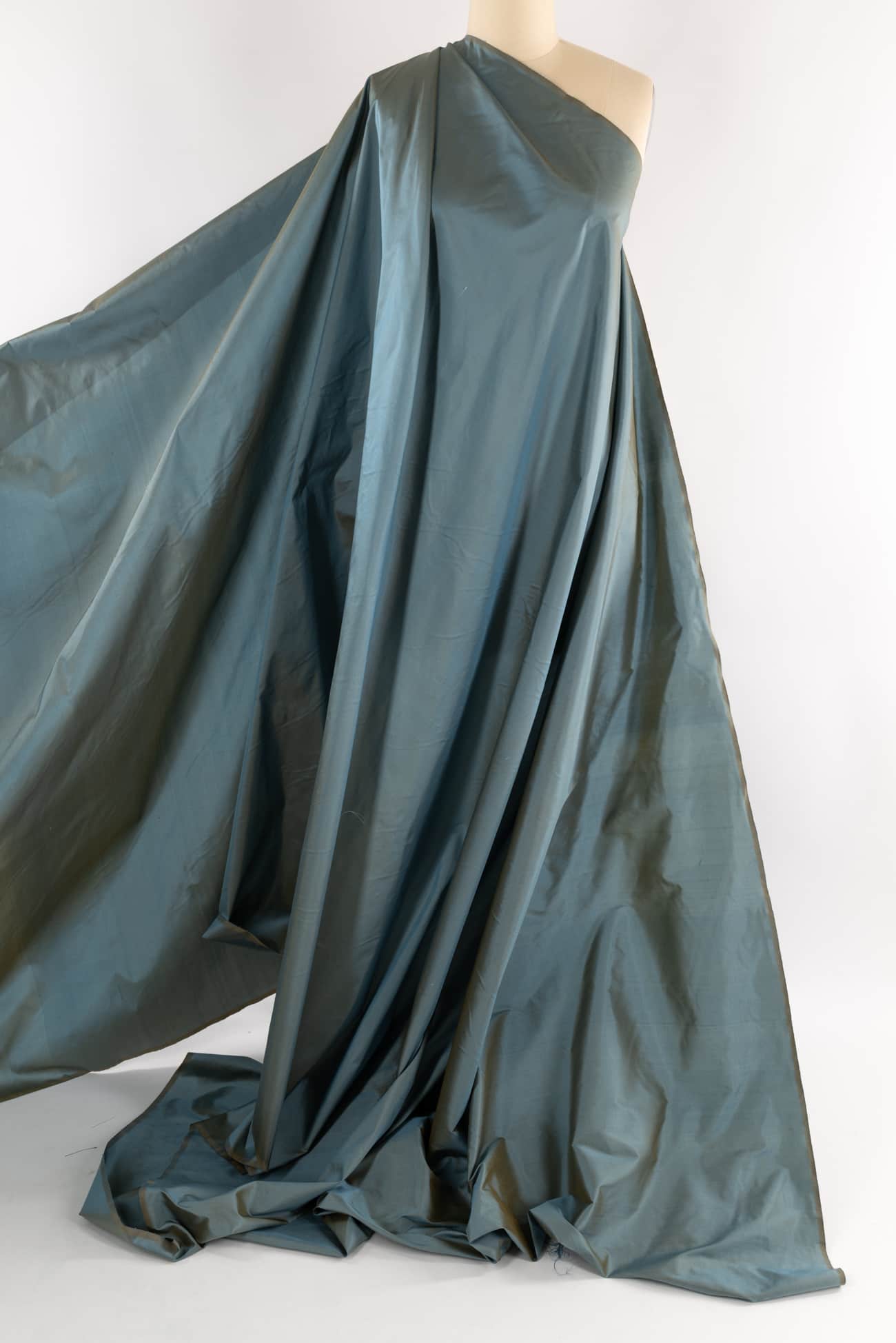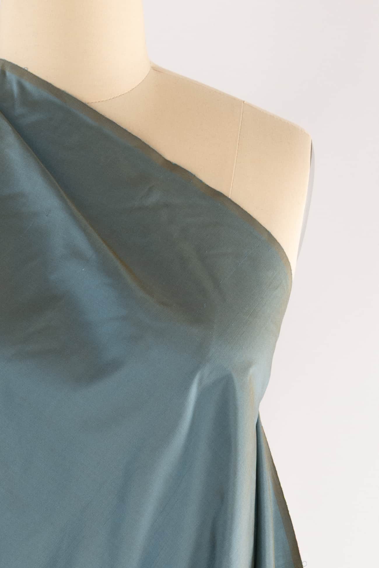Classic silk dupioni* in muted crossweave turquoise, fine quality deadstock from an LA designer. Light/shirting weight, opaque, softly textured, with a soft hand and lightly crisp yet malleable drape. Dress it up or down, make a dress, shirt, skirt, vest, soft pant, light jacket, or duster coat. Makes a luxurious lining, works for accessories and home decor too. A silk jacket or vest is a basic in my wardrobe and makes a smooth layering piece to slide over/under other garments and travels well. Limited quantity.