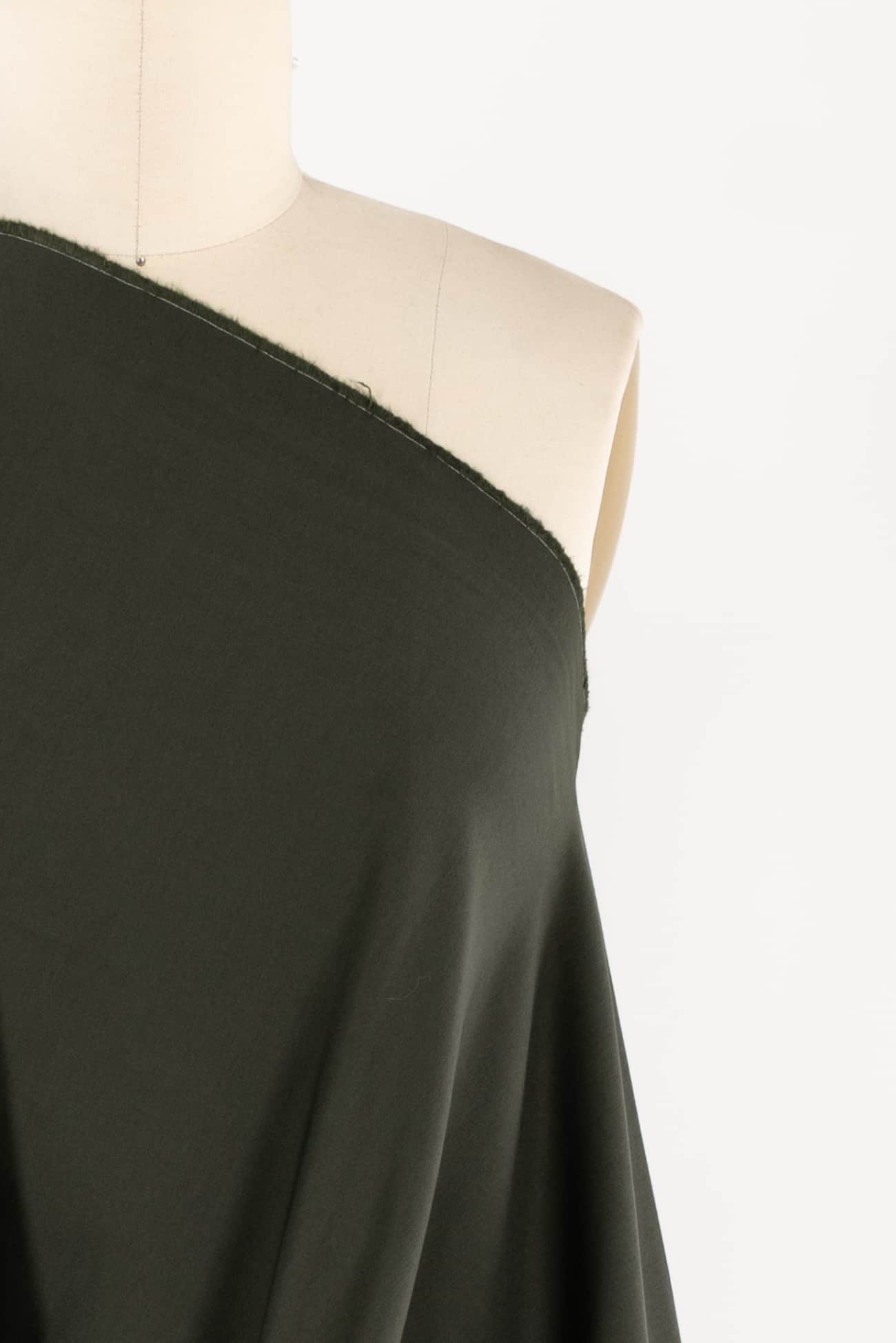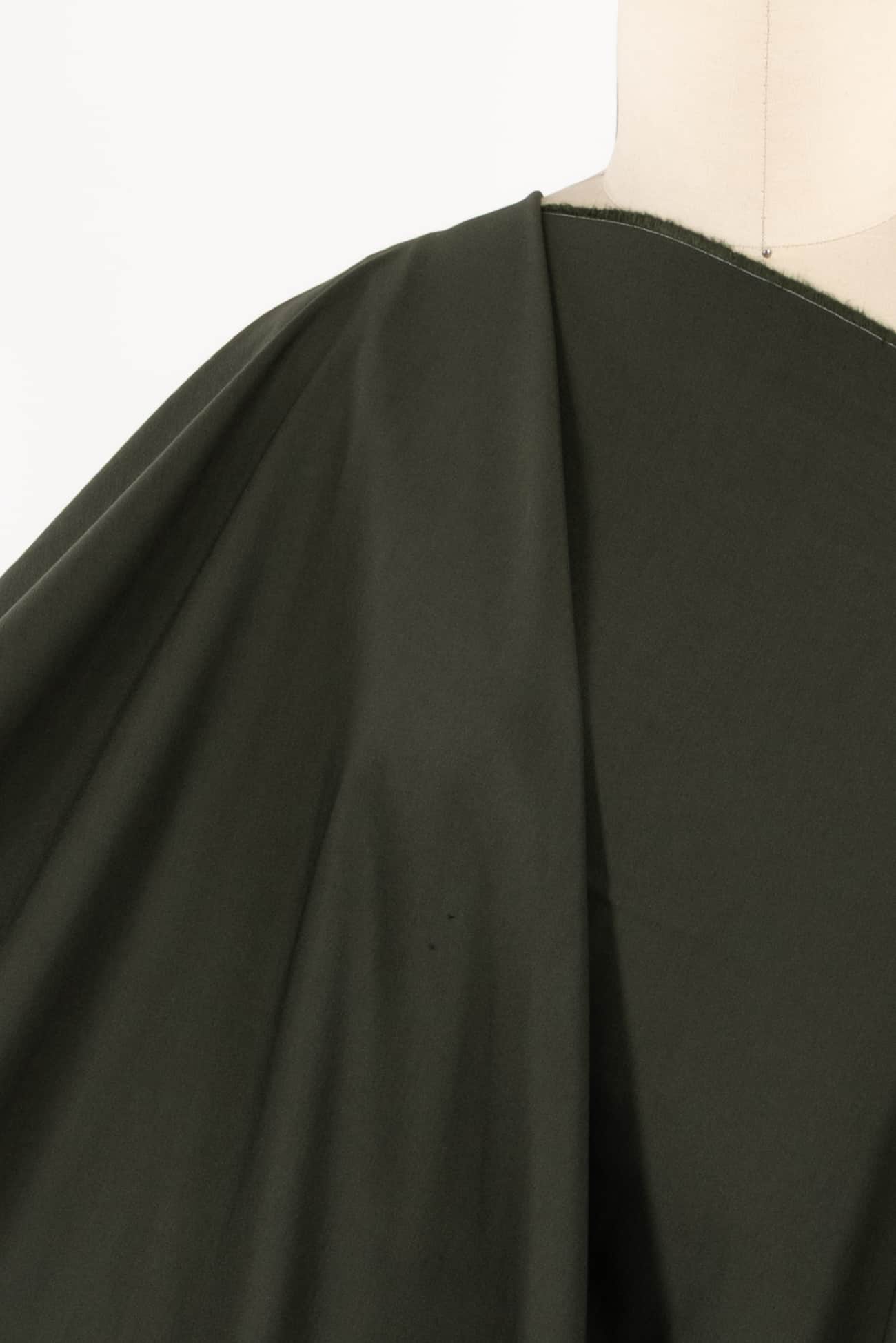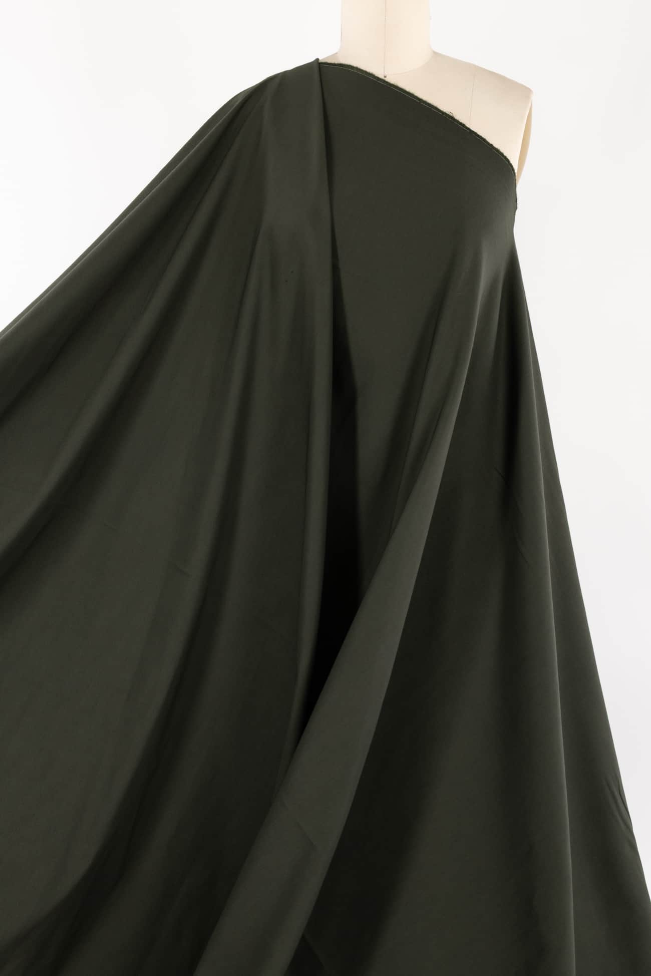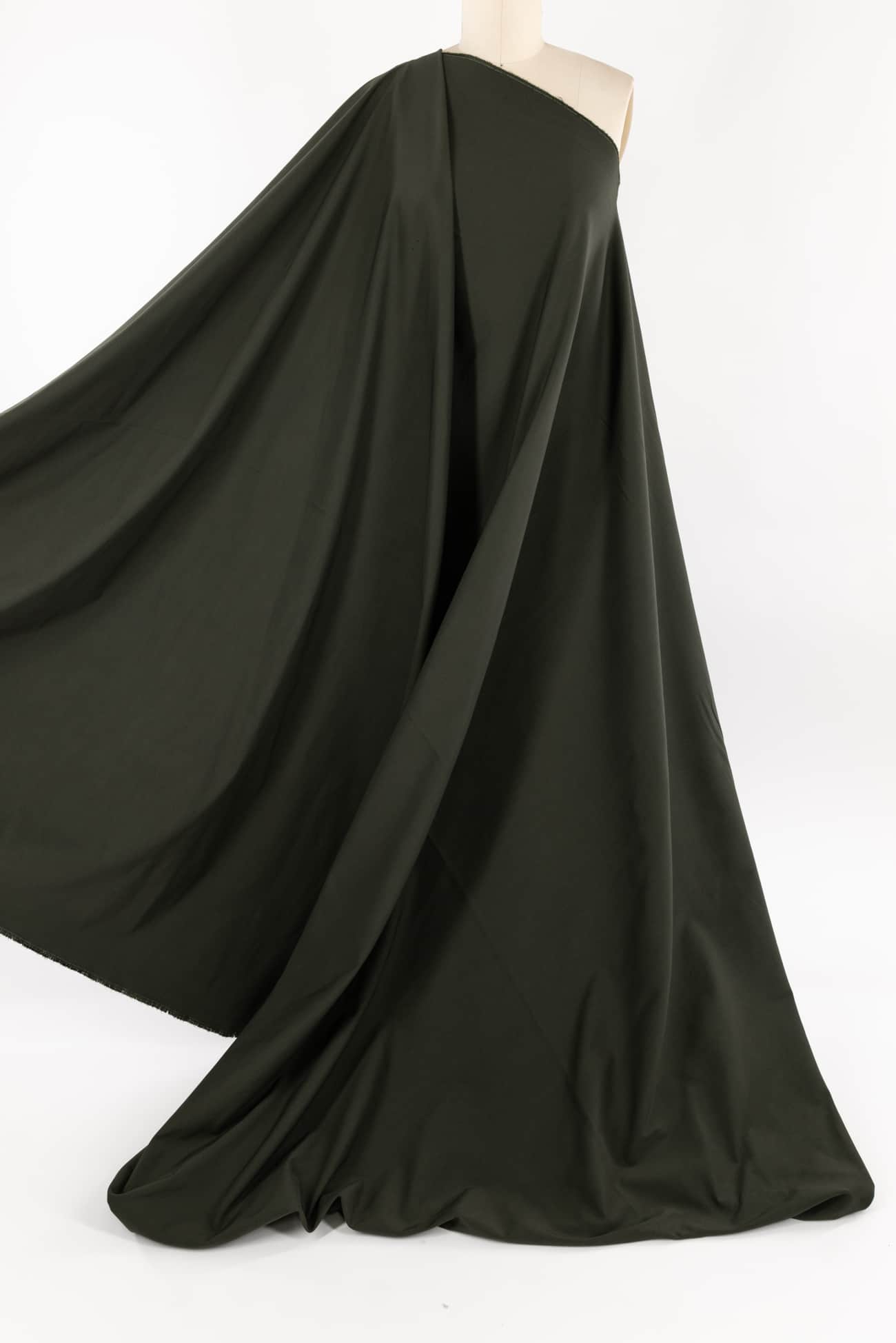 Elegant classic neutral, warm toned olive green bengaline stretch woven that is ideal for both tops and bottoms. I search for this type of fabric which is similar to those used in some of my own favorite RTW pants and jackets as it has excellent stretch and recovery, a smooth surface so other garments slide over/under easily, and is comfortable to wear and is an ideal fiber blend. Mid-weight, (slimming, not thick or heavy). Has lengthwise stretch; cut on the cross grain so the stretch goes around the body. Matte, with a cool, dry hand and lightly crisp drape. Pant perfect - right for fitted and softer pants. A good choice for a jacket, vest, duster coat, skirt, structured dress or jumpsuit. Ideal for travel and wardrobing.