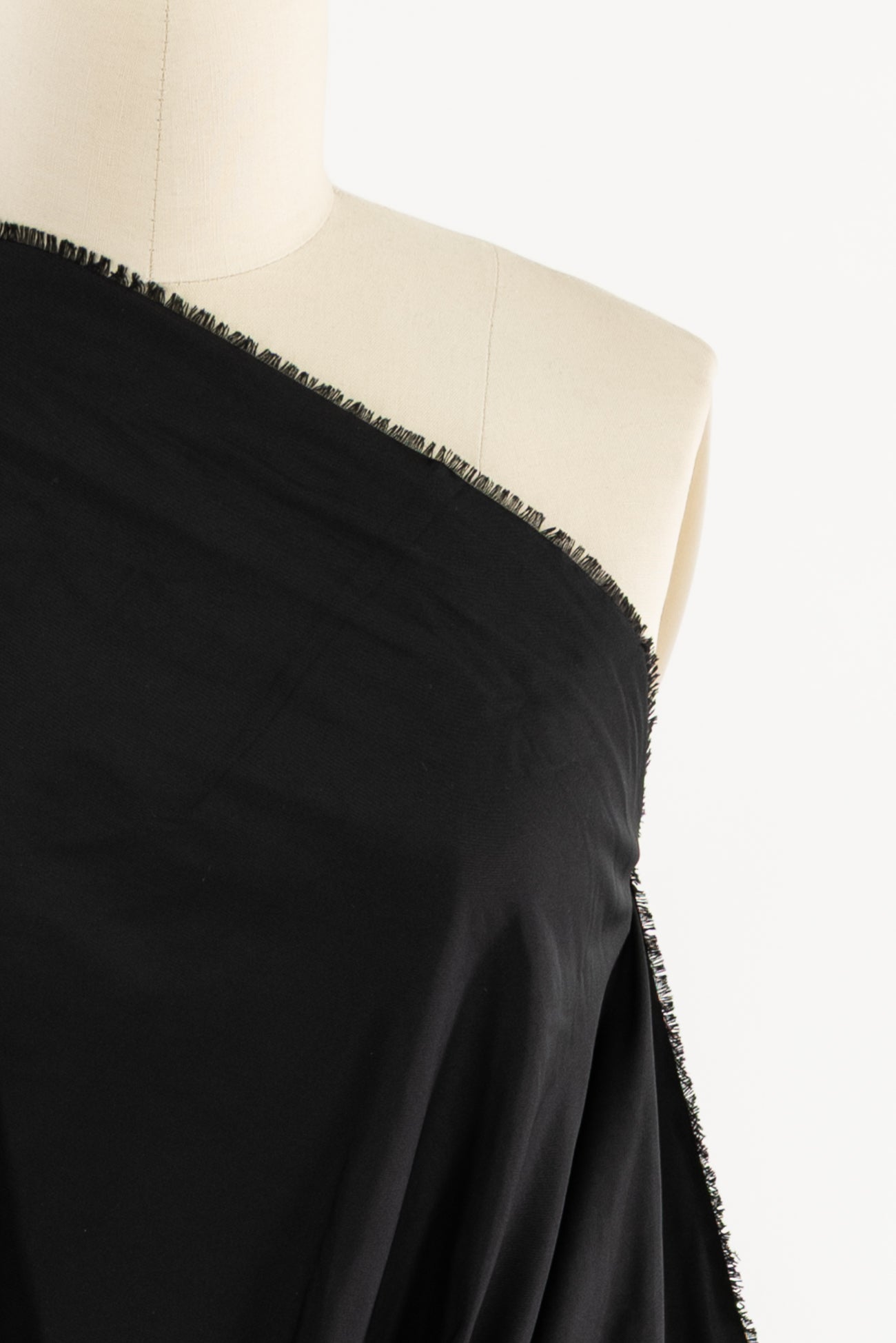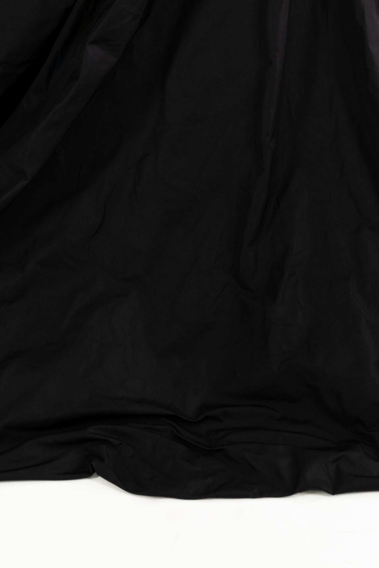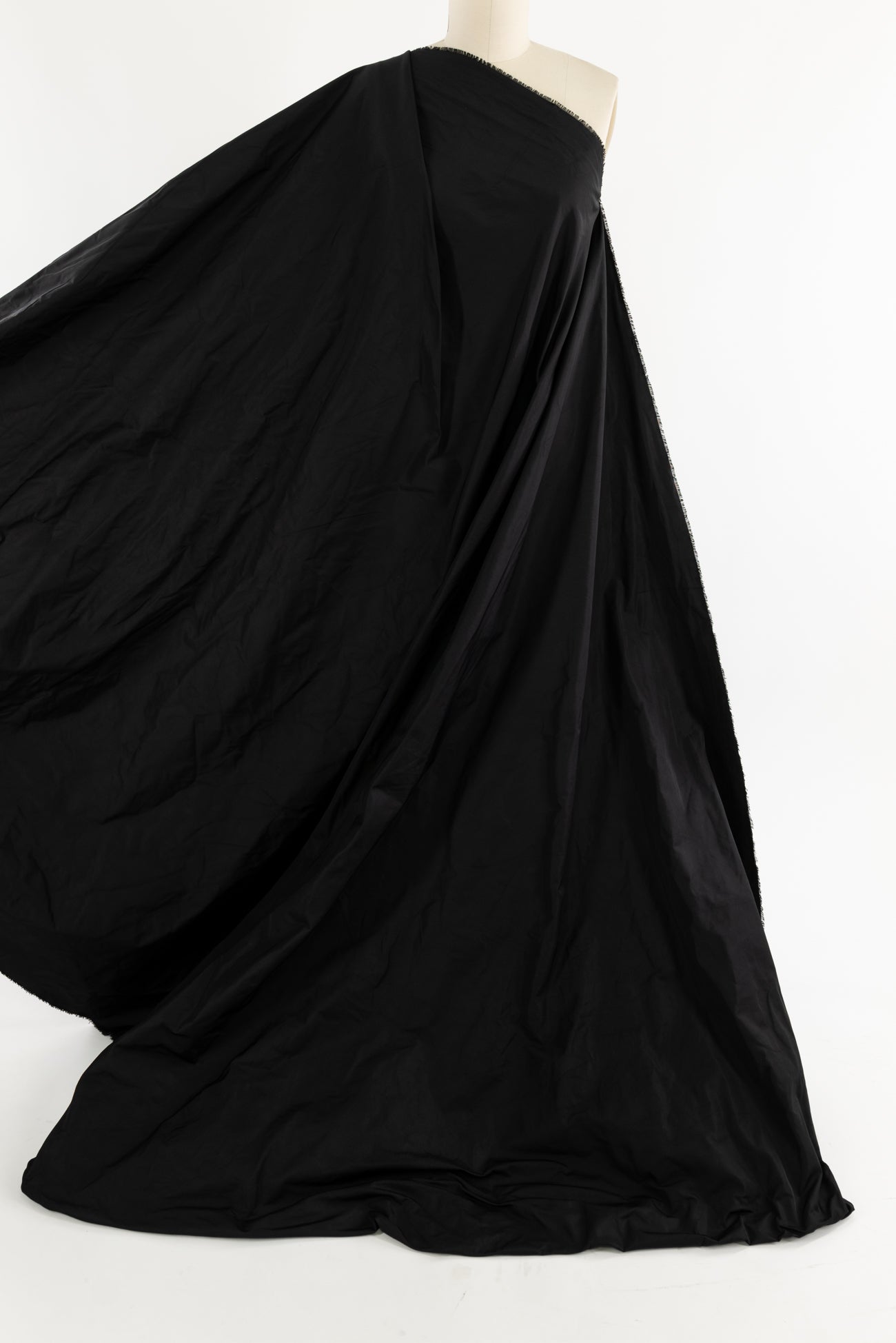 Rich black memory taffeta, deadstock from an upscale LA designer. Midweight, twill weave, with a sumptuous smooth hand and malleable drape, crushes, and then the wrinkles 'fall out'. Rare and very special. Right for a jacket, coat, vest. Ideal for layering as the smooth surface slides over/under other textures, and perfect for travel, can fold flat to nothing, then creases vanish