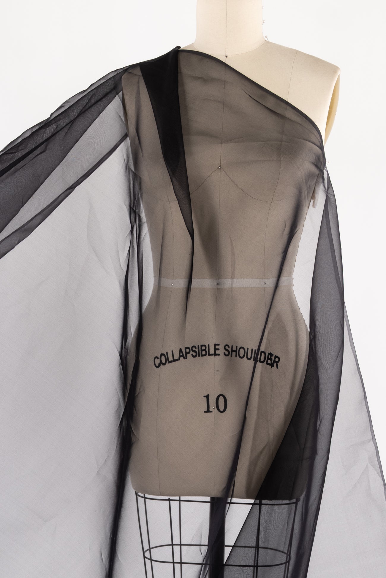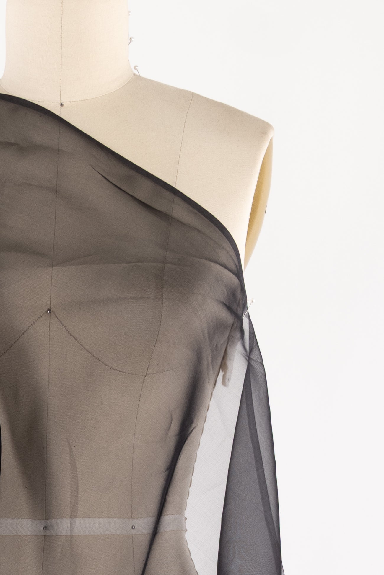 Sophisticated silk organza in basic black. Fine quality deadstock, milled in Japan, is lightweight, semi-opaque, with a smooth silky hand and crisp drape. Dress it up or down; to line or not. Right for a shirt, skirt, dress, light vest or crisp jacket.