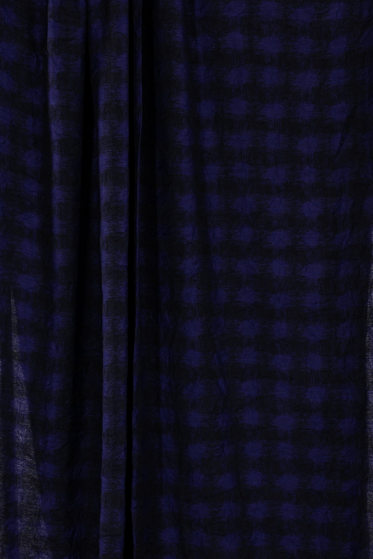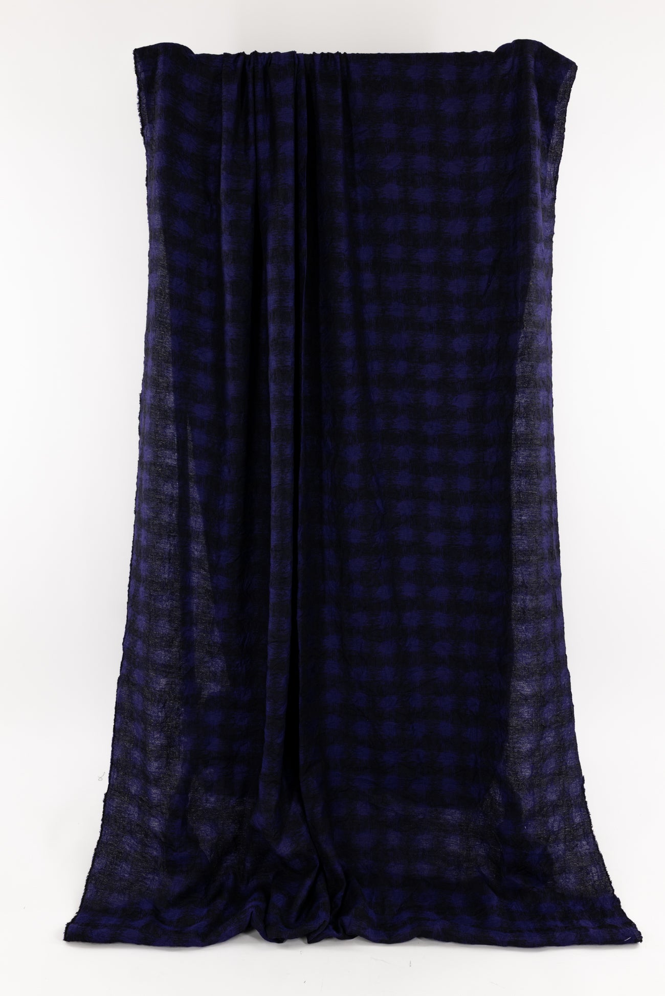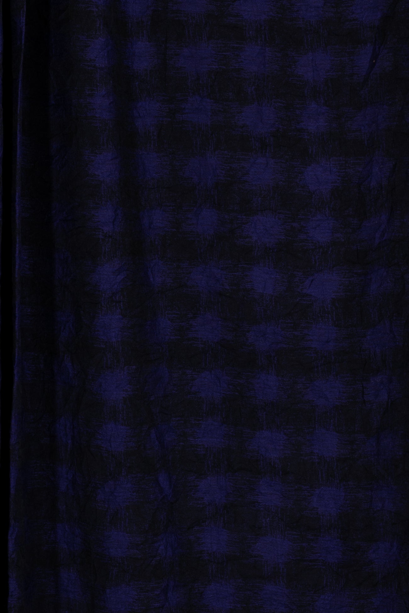 Deep purple and black textured jacquard double weave has woven in allover black 1" dots, deadstock from Chalet et Ceci. Lightweight, opaque, with a textured hand, smooth on the back side, lightly airy crisp drape. Right for a jacket, vest, dress, skirt, tunic, kimono, caftan. Very cool and unusual. Limited quantity.