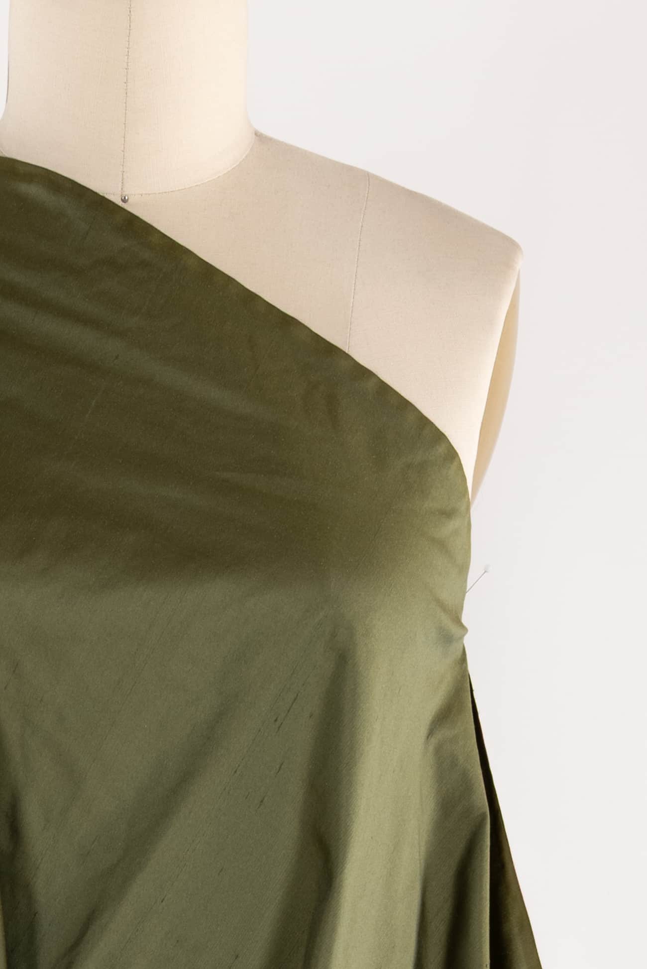 *Silk dupioni is known for its distinctively textured appearance and luxurious feel. It is created by weaving two or more different colors of silk threads, resulting in a slightly slubby, irregular texture with a lustrous quality and soft sheen.
