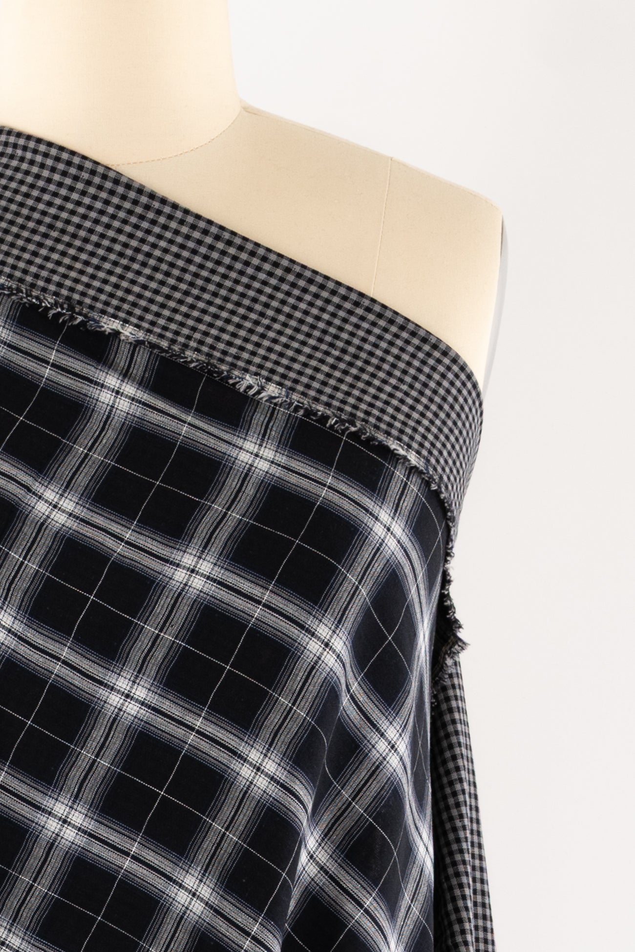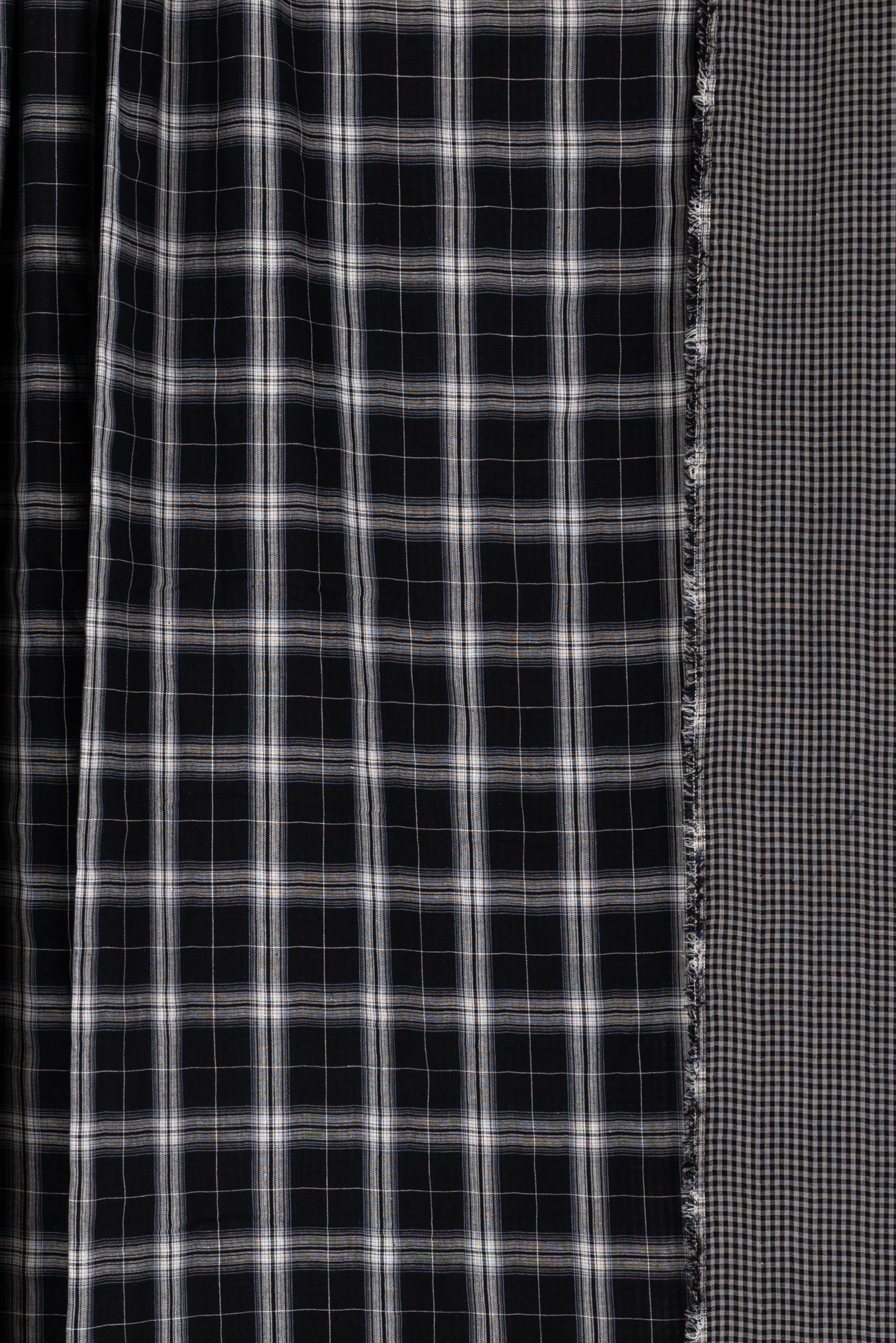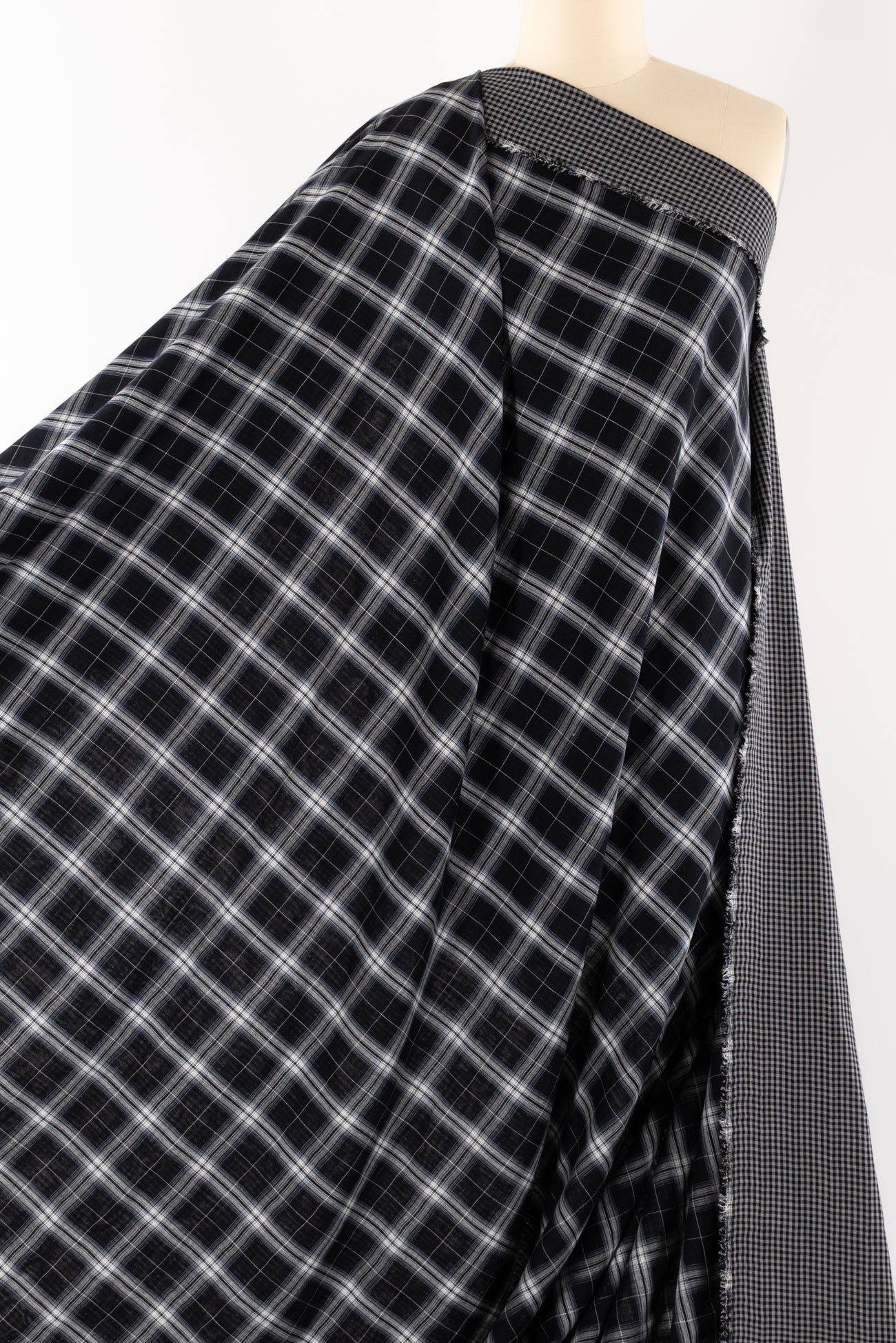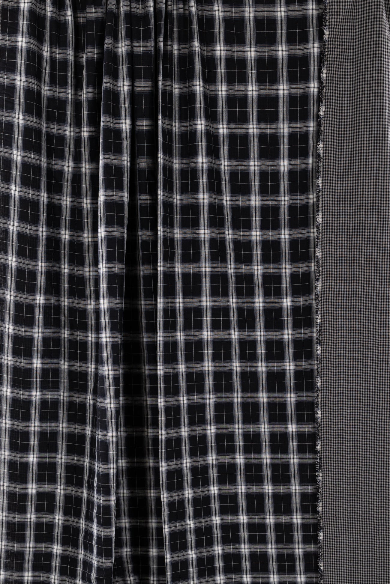 A black and white classic with a quintessential plaid on one side and tiny gray and black houndstooth on the reverse. A fine quality deadstock cotton double woven from an LA designer. Light/shirting weight, opaque with a soft smooth hand, 2¾" repeat on the plaid side and light drape. Really lovely and right for a shirt, tunic, skirt, dress, soft pants, caftan, men's or children's.