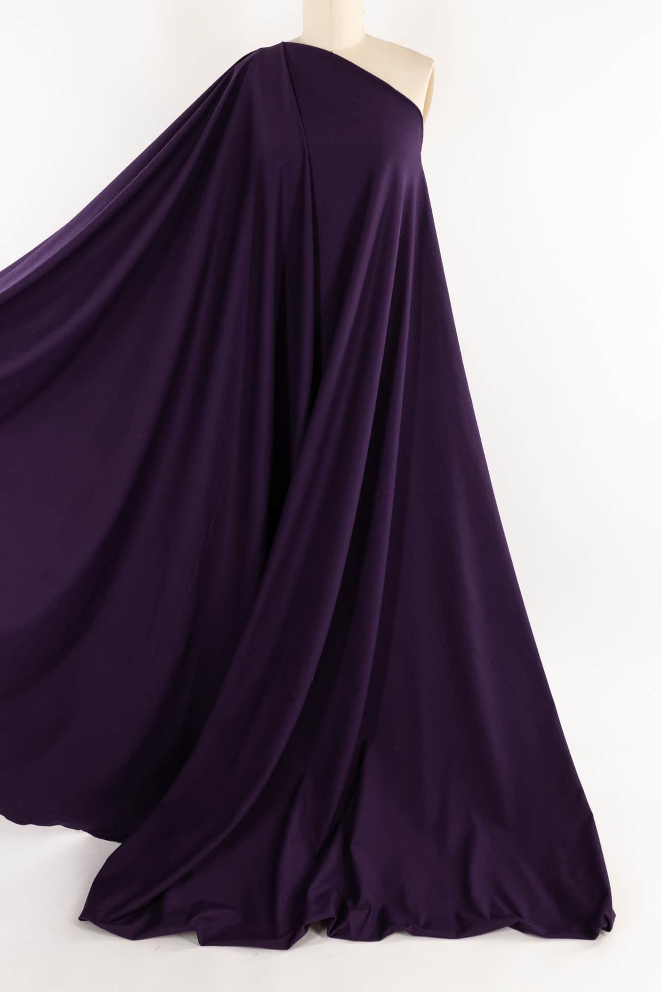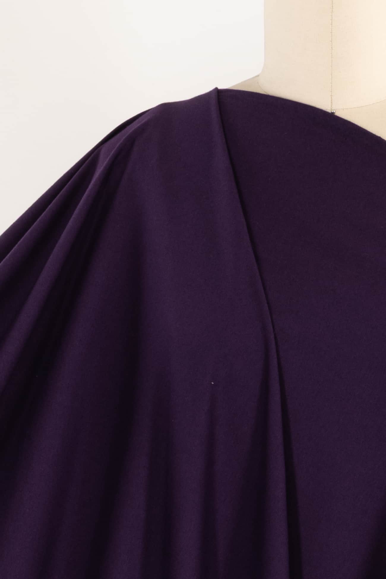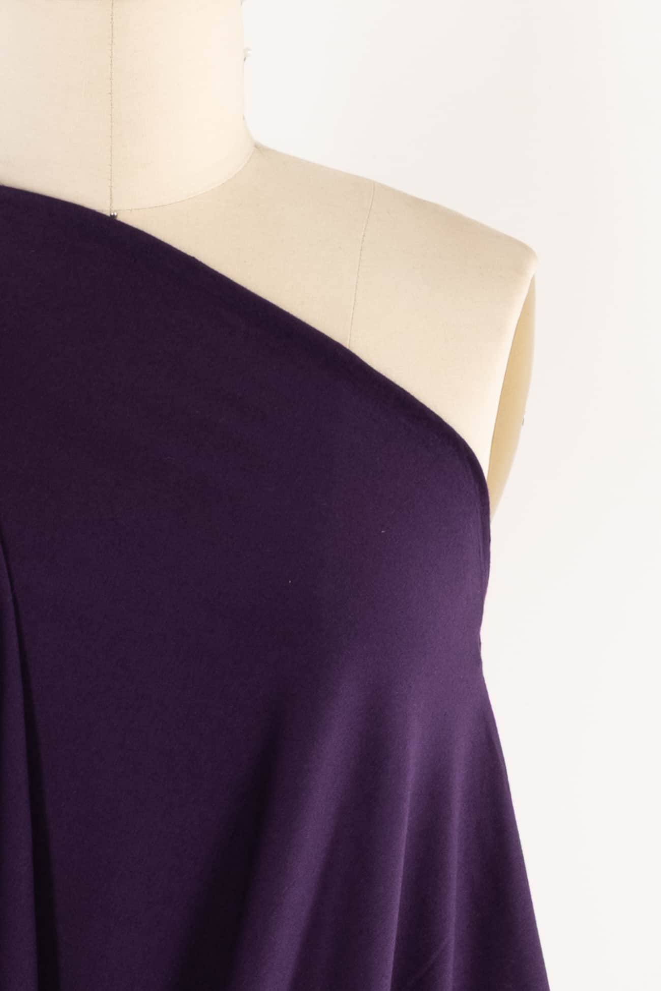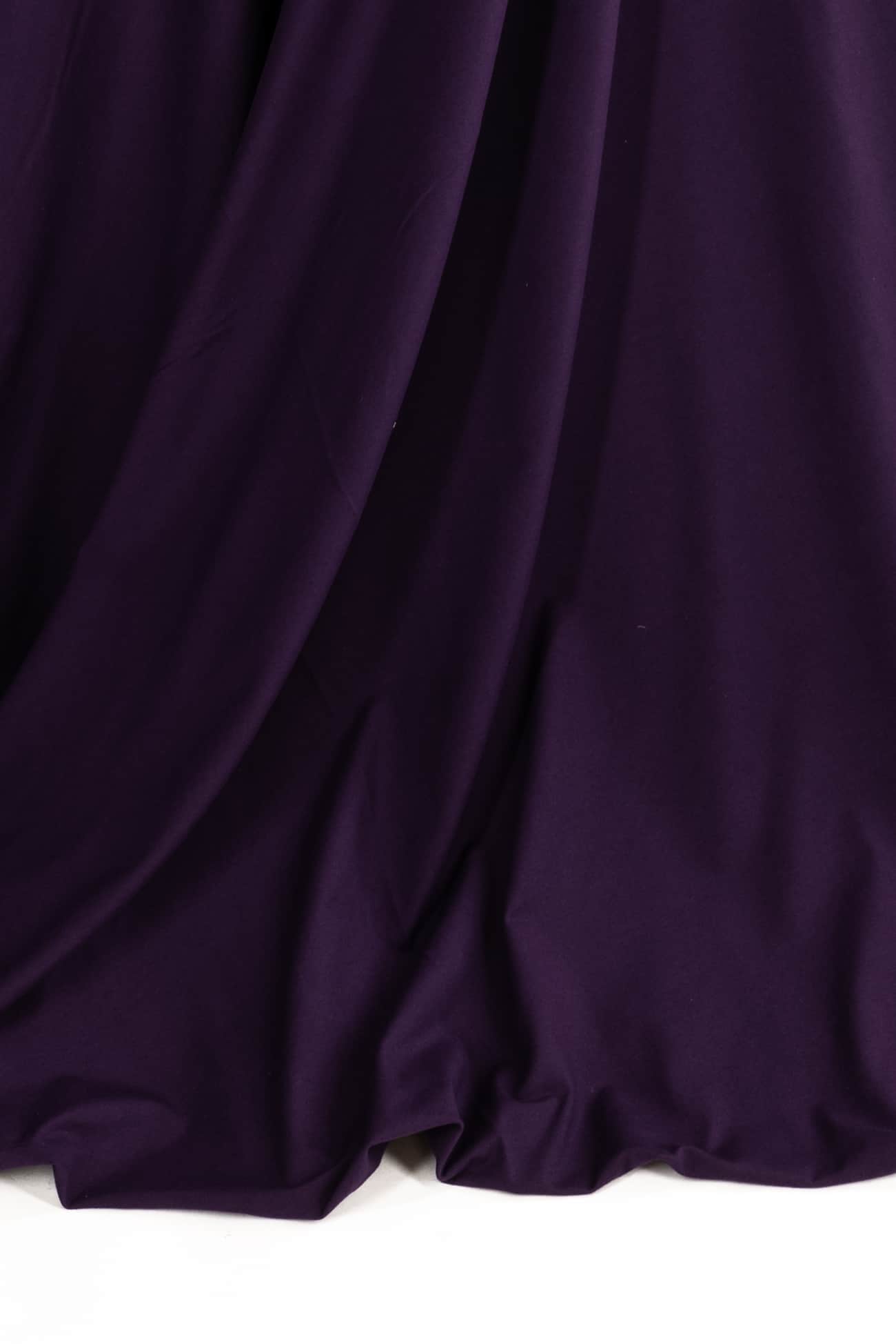 Superb quality purple cotton jersey, deadstock from an LA designer. Perfect for cool weather. Mid/lightweight with a smooth hand, soft drape, 4-way stretch with good recovery, just a touch of rolling at the cut edge so it will be easy to sew. Right for t-shirt, tunic, dress, cardi, hoodie, leggings, soft pants, loungewear, men's or children's.