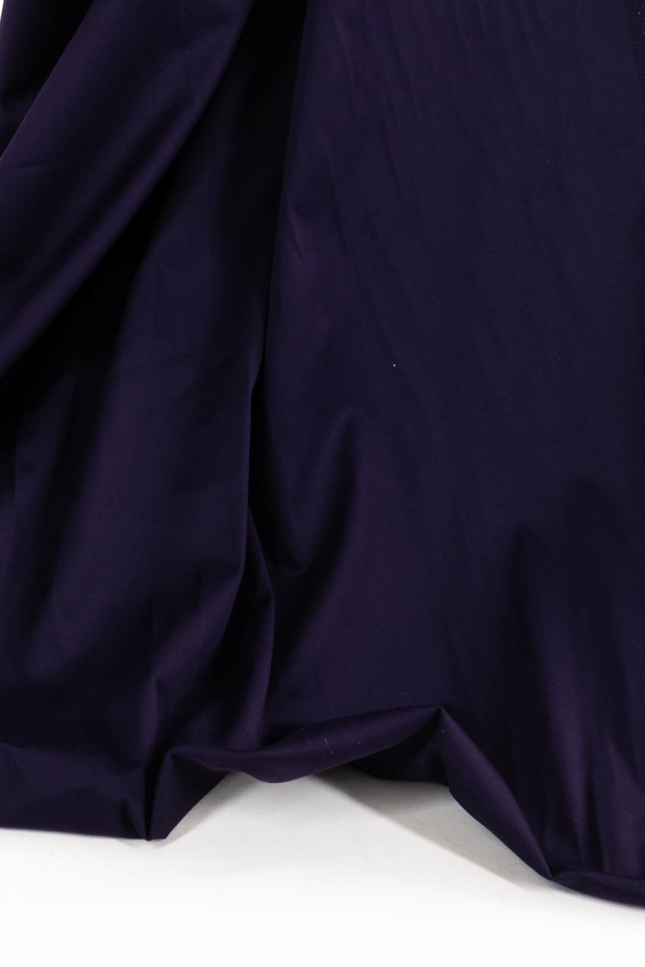 Dark deep purple in a lovely quality stretch cotton sateen, deadstock from an LA designer. Light/midweight with a soft, smooth, matte sateen hand, soft drape and slight crosswise stretch. Right for a shirt, dress, skirt, soft pant, jumpsuit, caftan.