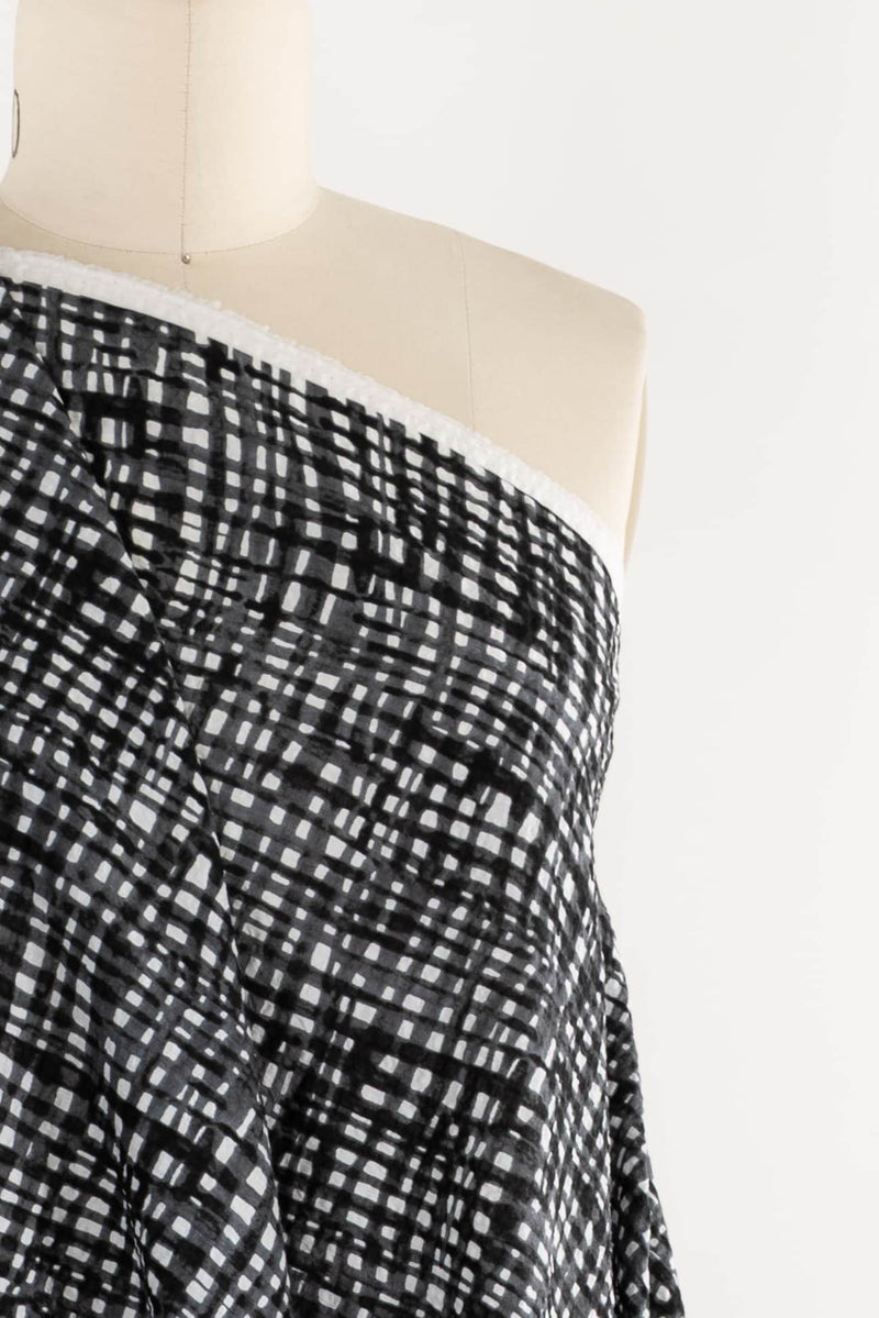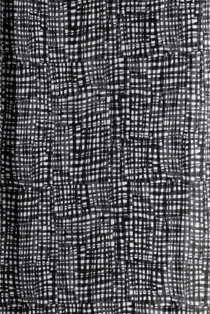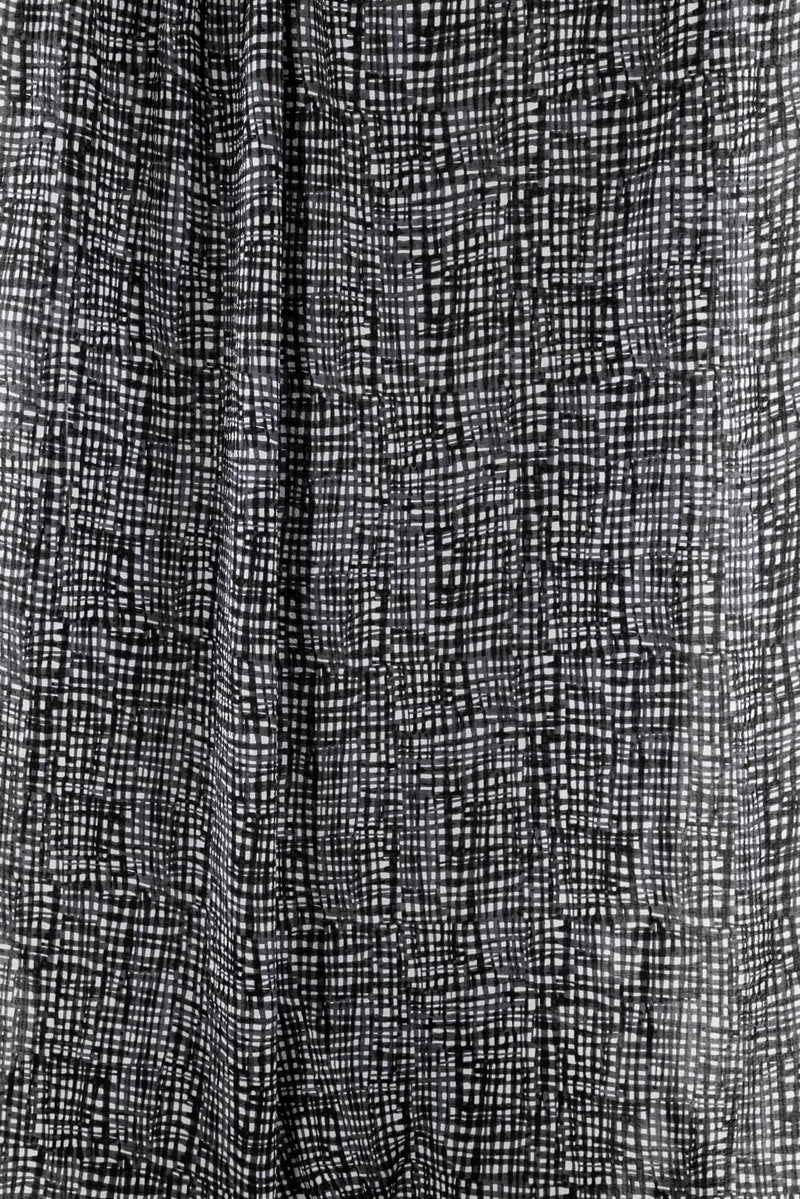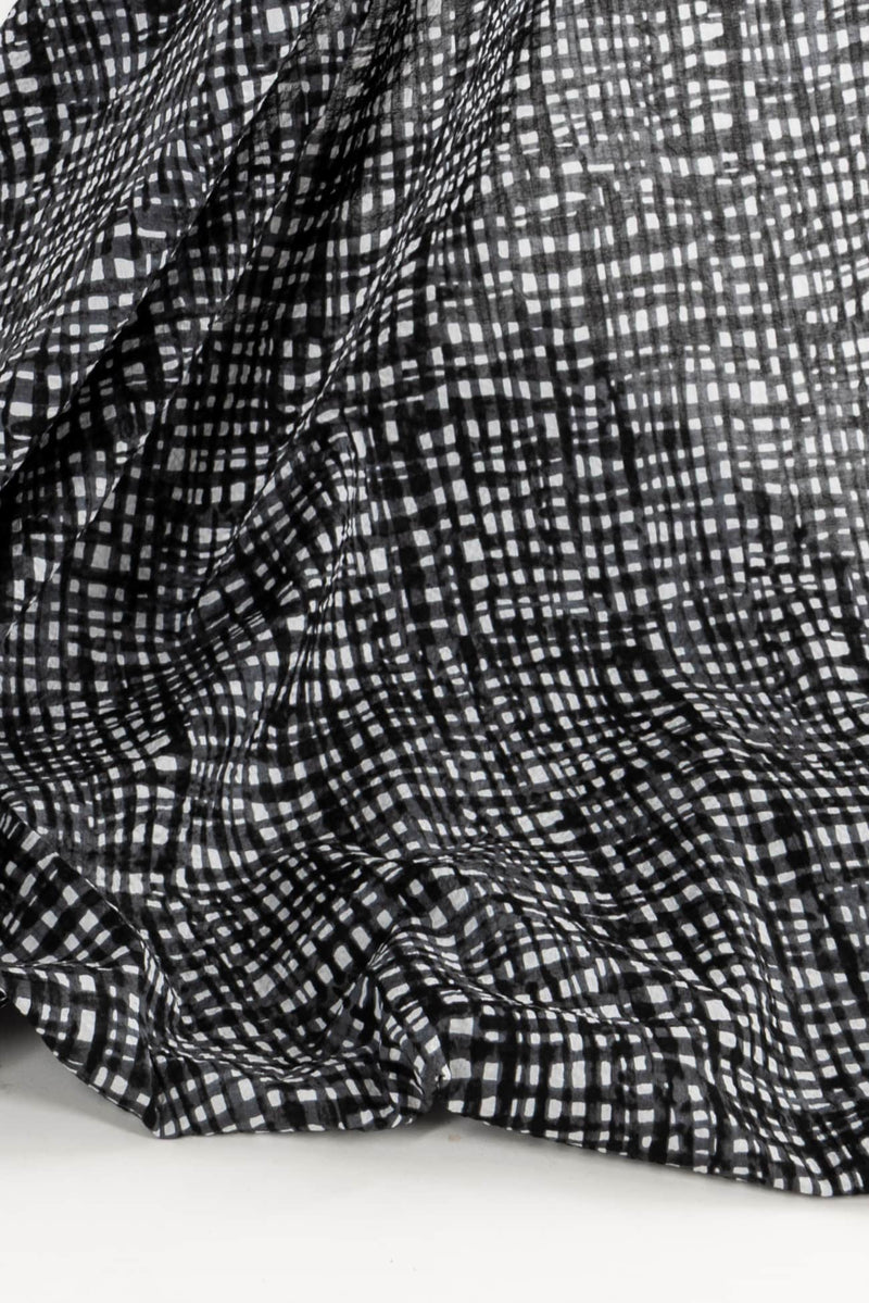 Exceptional seersucker in a beautiful hand-painted black on white check from a Japanese mill. The softly crimped texture of seersucker ensures it does not cling, delivering cool comfort even in the hottest climates. Perfect for the heat of summer whether you are in city or country. Lovely shirting/dress weight with an appealing soft cool lightly textured hand, supple drape and 11" repeat. Perfect for a shirt, blouse, dress, tunic, soft pants, caftan, kimono, men's or children's.