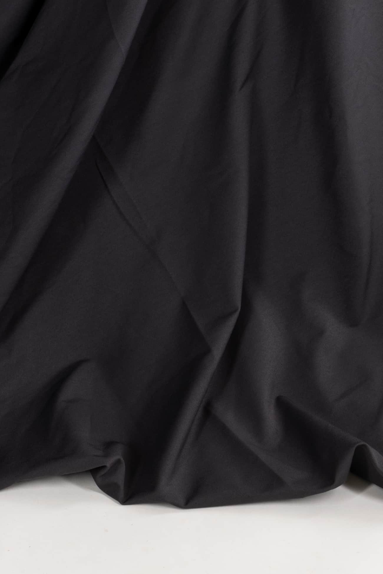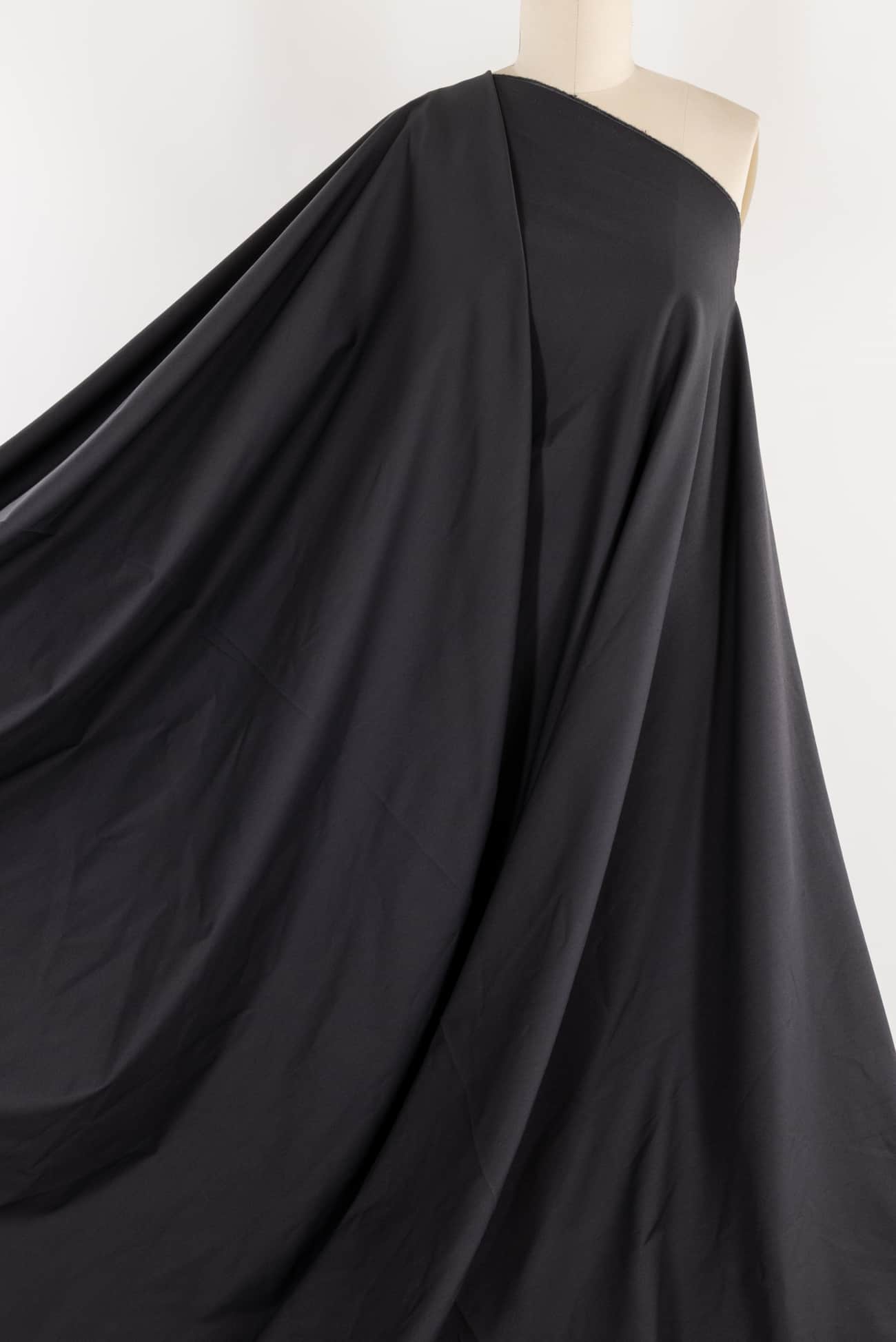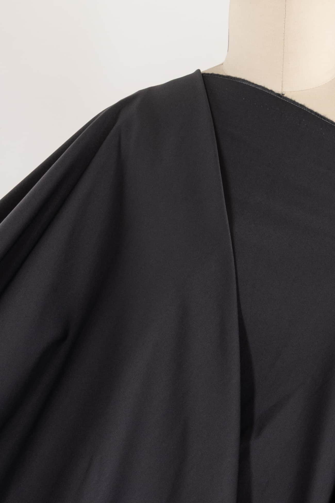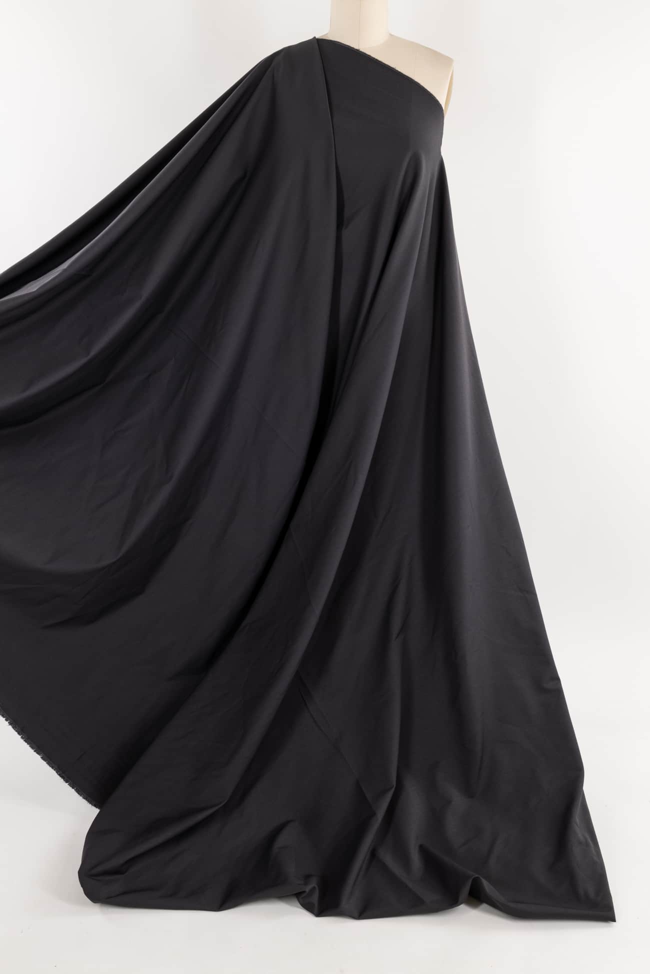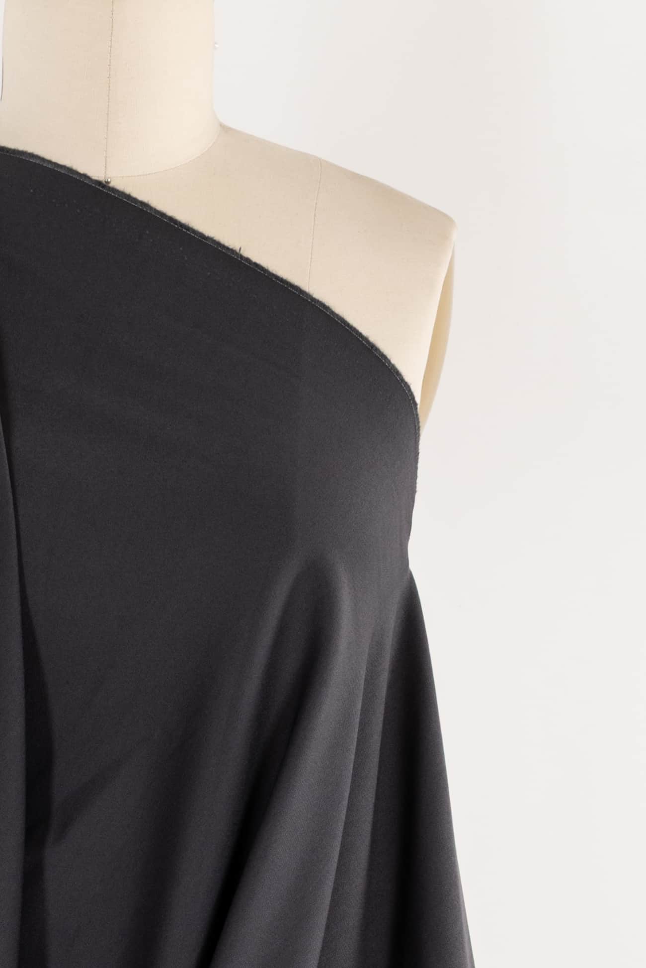 Color saturated deep cool toned gray bengaline stretch woven that is ideal for both tops and bottoms. I search for this type of fabric which is similar to those used in some of my own favorite RTW pants and jackets as it has excellent stretch and recovery, a smooth surface so other garments slide over/under easily, and is comfortable to wear and is an ideal fiber blend. Mid-weight, (slimming, not thick or heavy). Has lengthwise stretch; cut on the cross grain so the stretch goes around the body. Matte, with a cool, dry hand and lightly crisp drape. Pant perfect - right for fitted and softer pants. A good choice for a jacket, vest, duster coat, skirt, structured dress or jumpsuit. Ideal for travel and wardrobing.