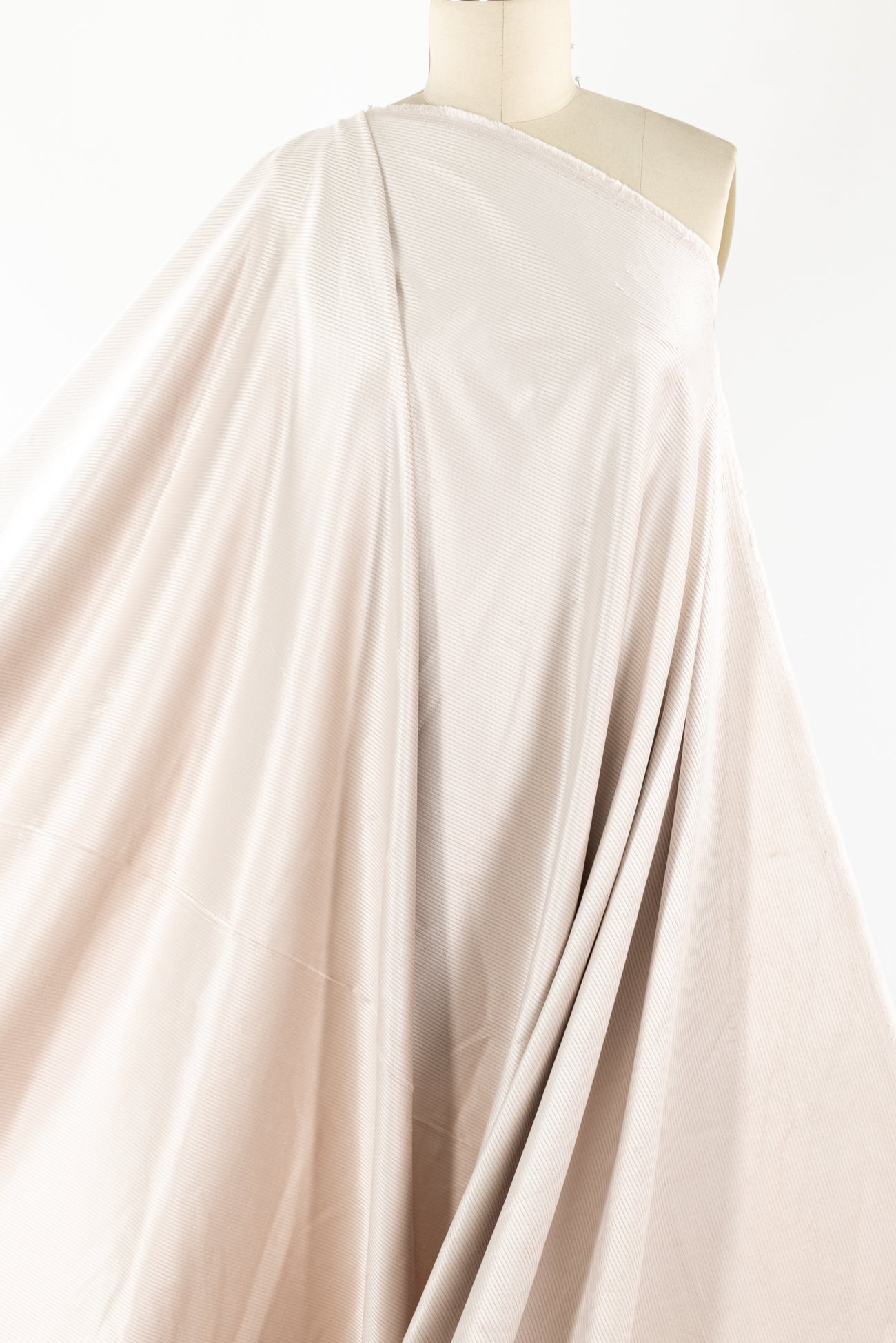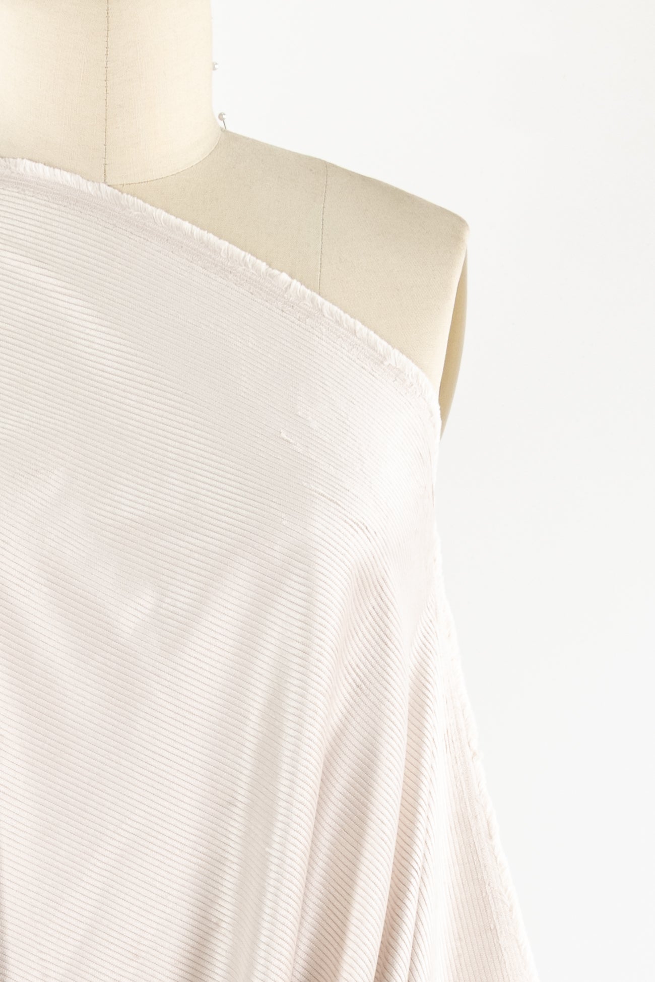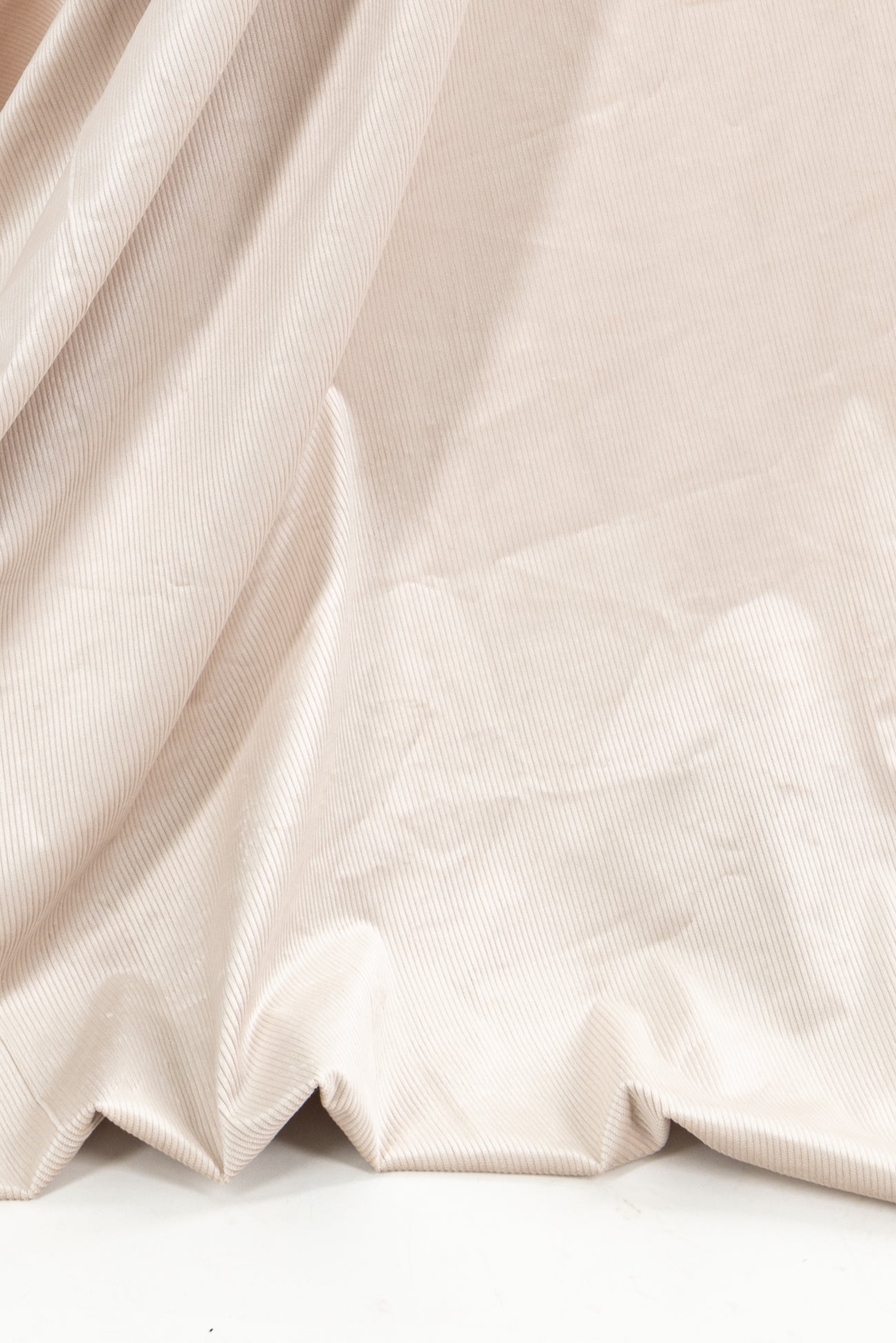 Birch/bone white in a classic mid-wale corduroy, fine quality deadstock from a French mill for an LA designer. Mid-weight with a soft hand, crosswise stretch, light drape and 9 wales/inch. Right for a jacket, light coat, vest, dress, shirt, skirt, pants or men's. Cut for nap.