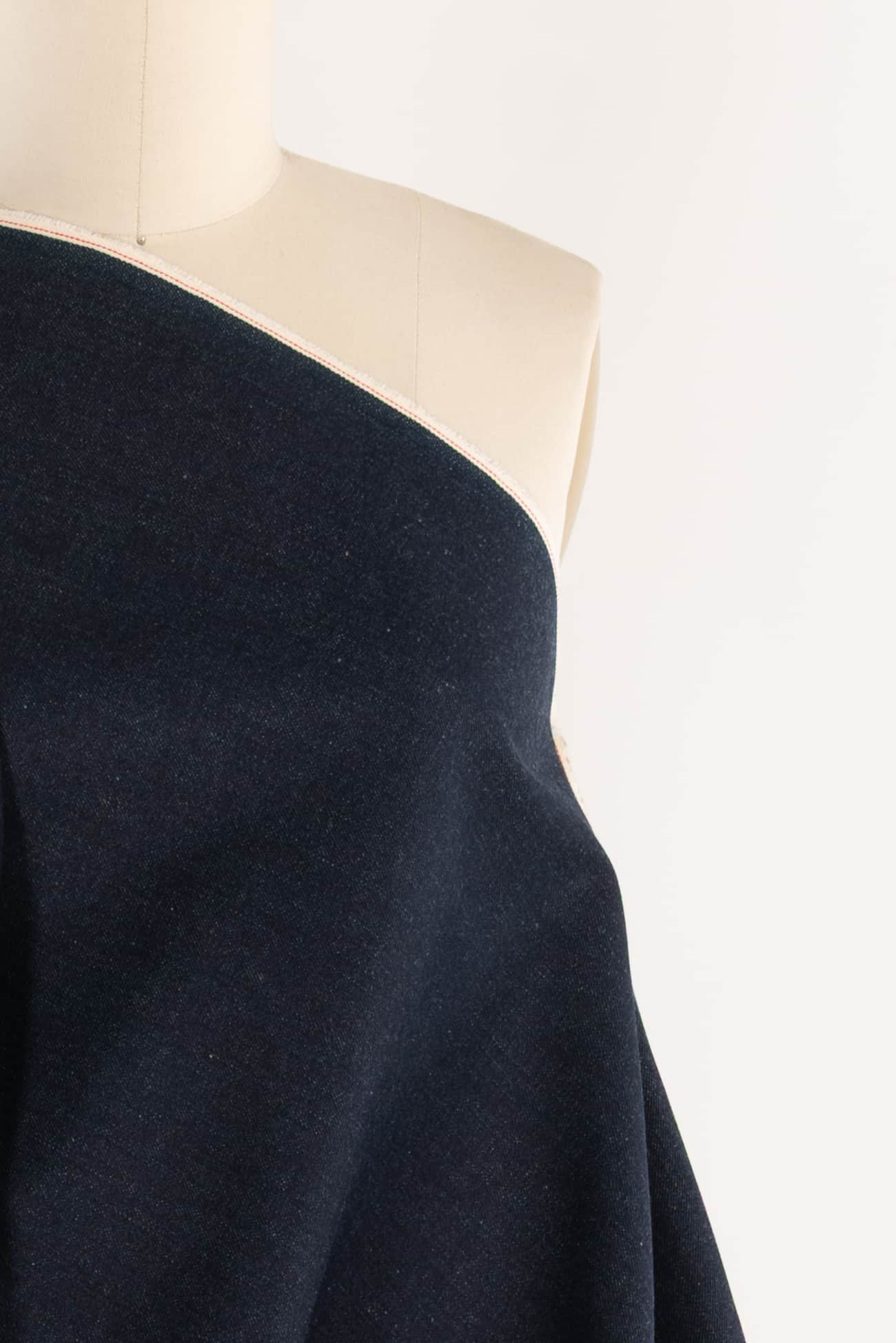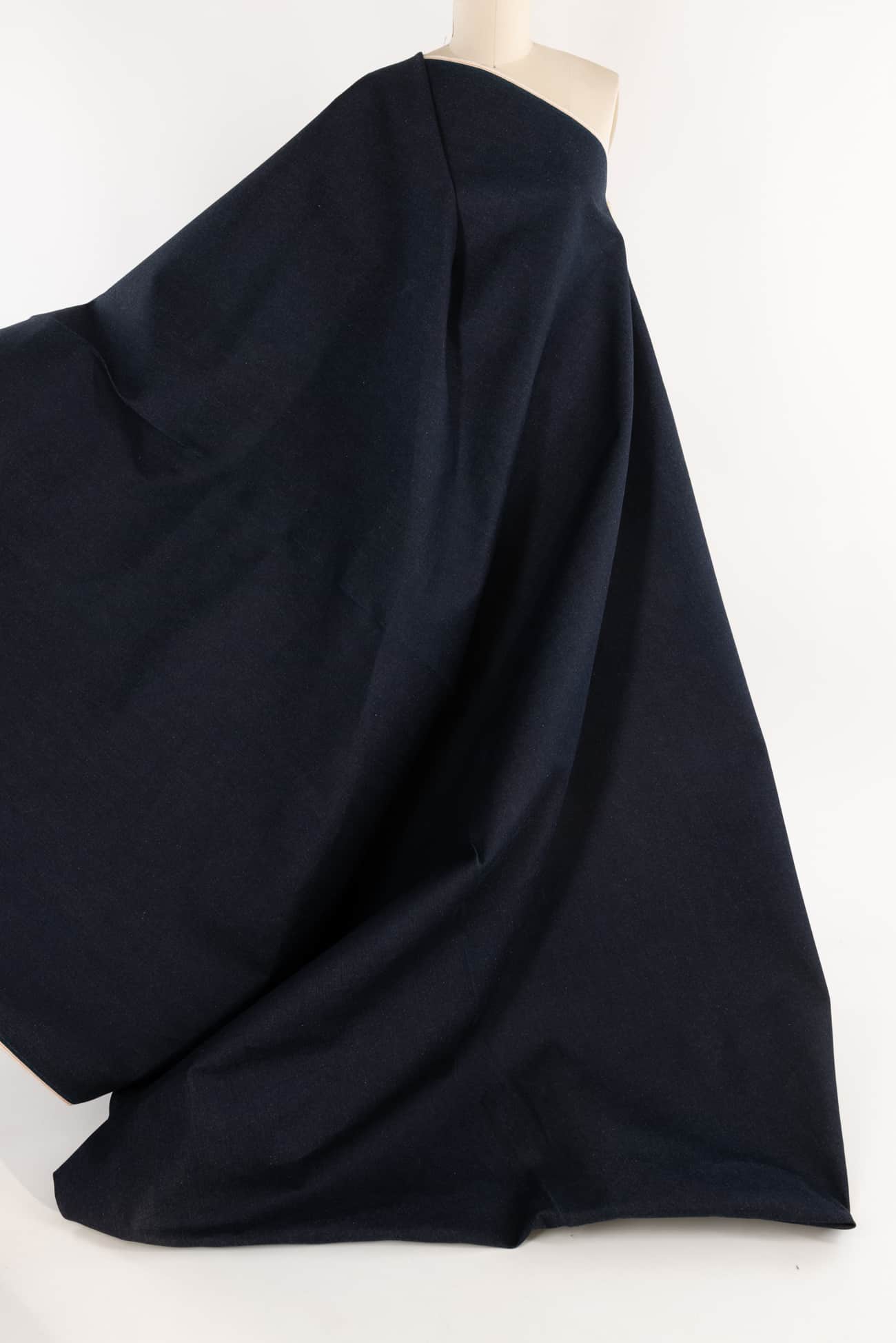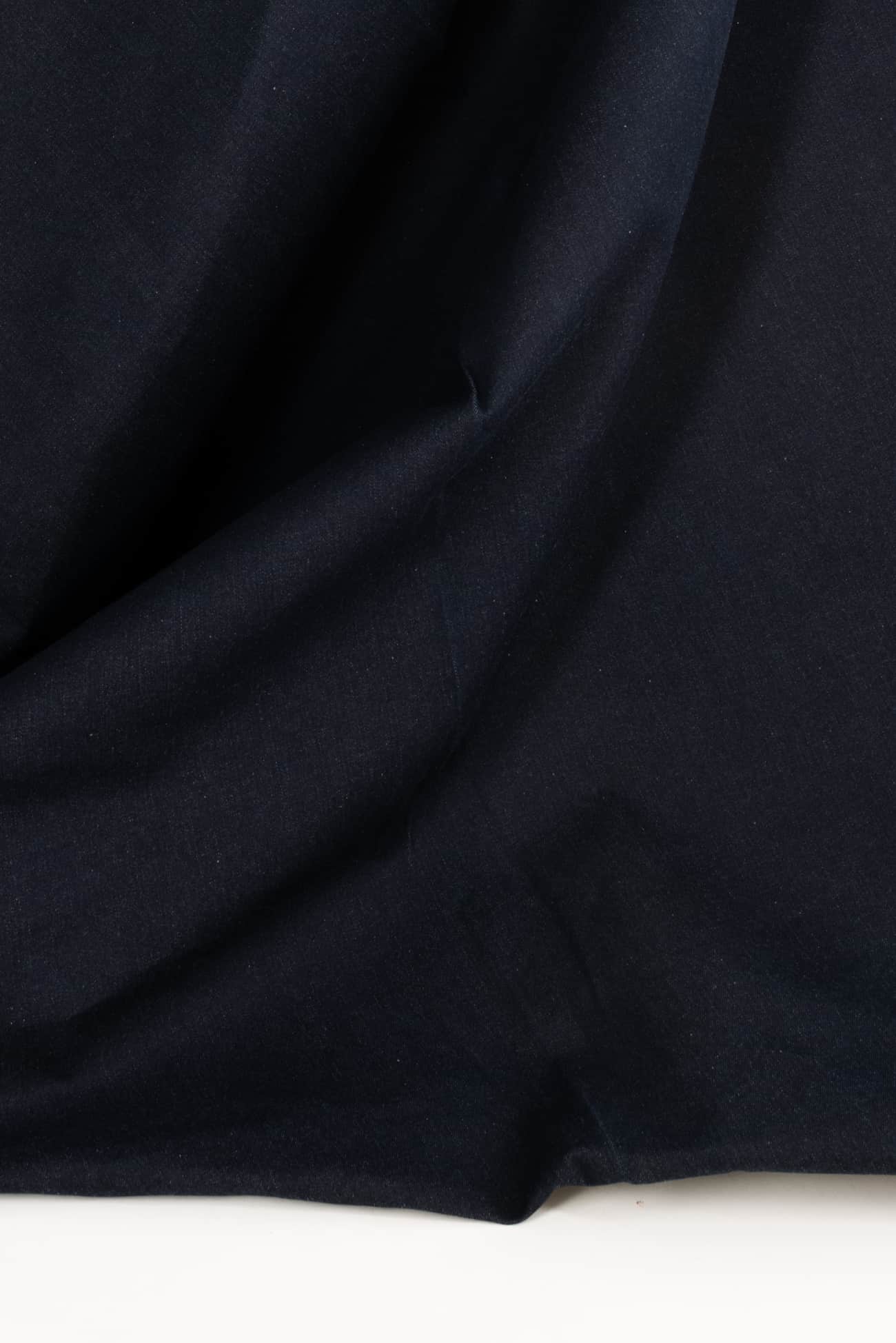 Classic navy blue cotton denim, top quality deadstock from an Italian mill, made for Milanese brand J@cob Cohën, known for 'transforming denim into everyday luxury'. Think $400 jeans. Heavyweight with a lightly textured twill hand, structured drape and hip red accented selvedge. No stretch. Right for workwear, jeans, a light jacket or coat, structured dress, skirt, tunic, top, jumpsuit or men's. Limited quantity available.