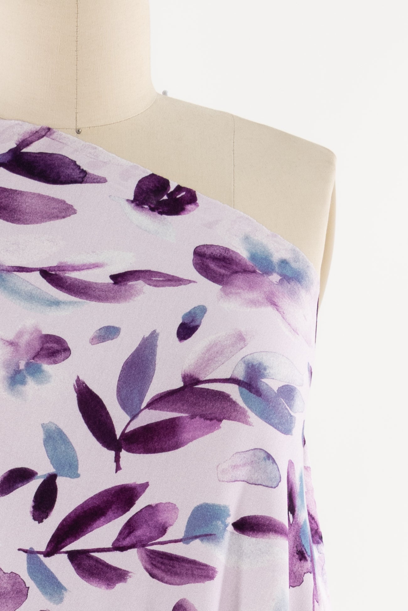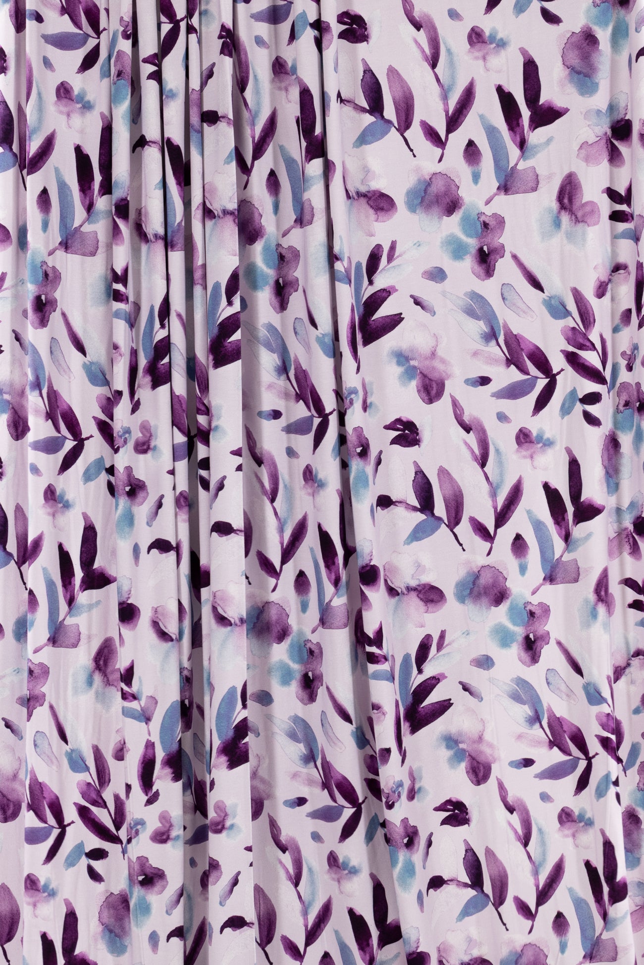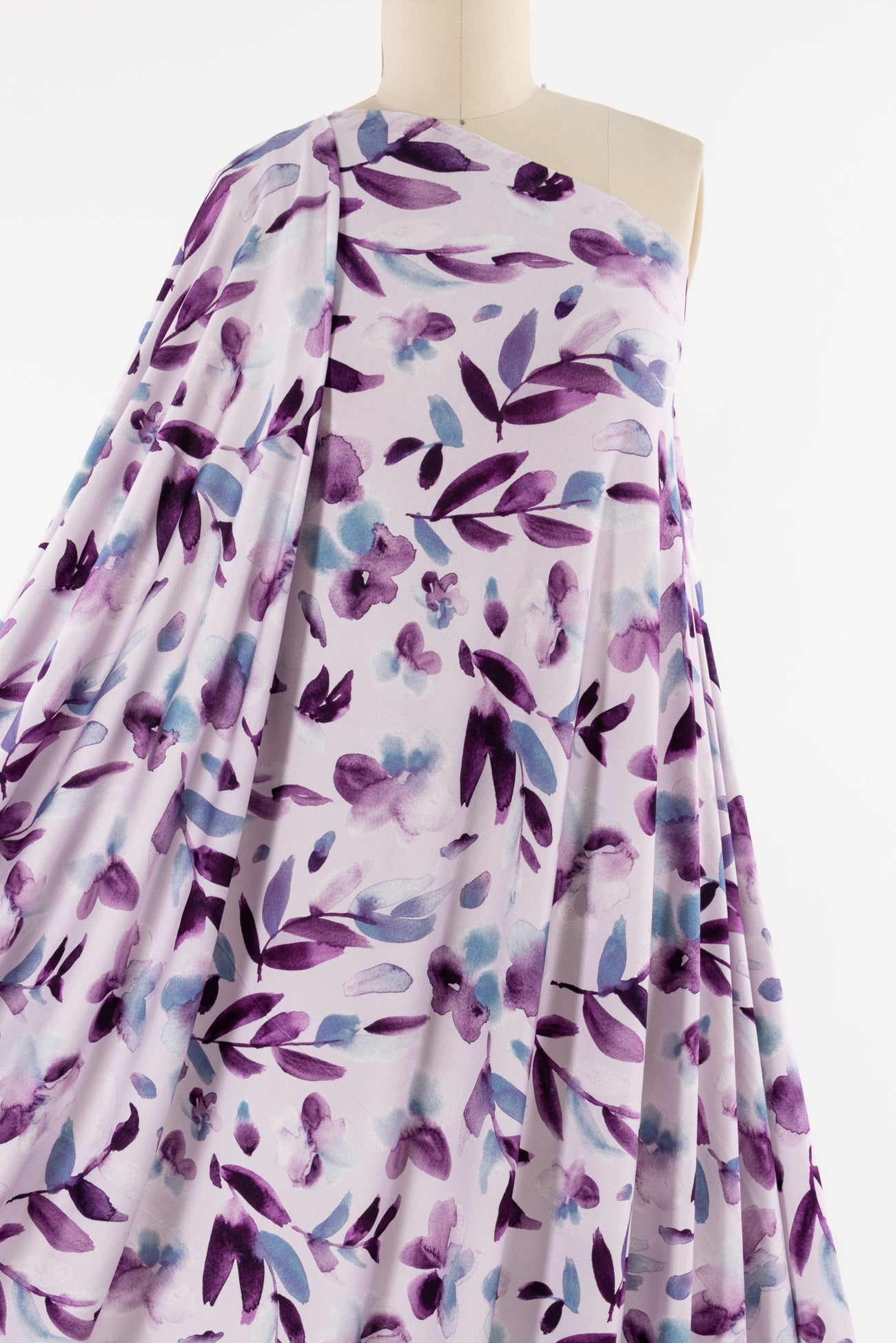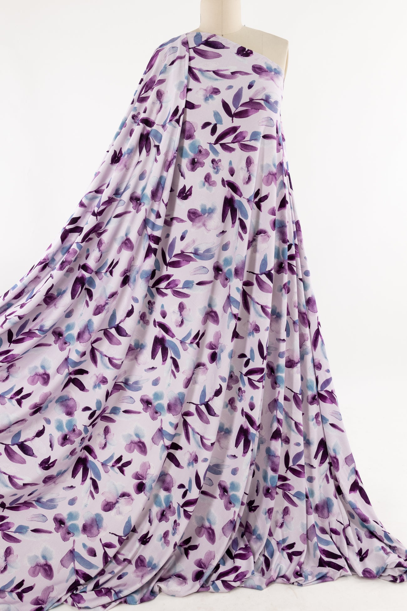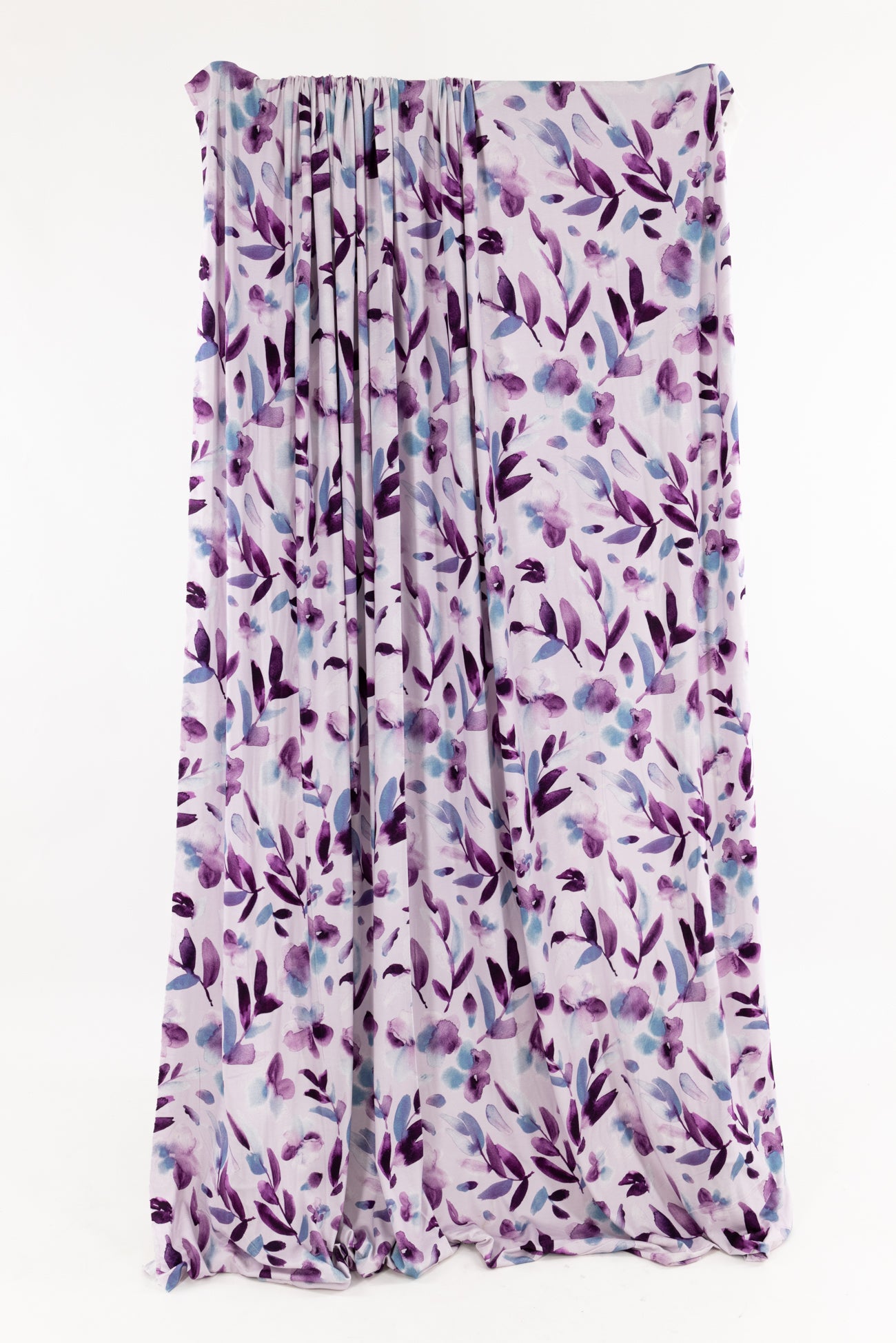Lovely lavender floral in watercolor tints of purple and blue, in a gorgeous digital print on an impeccable European quality viscose/spandex jersey knit, produced in Denmark. Light/mid-weight, opaque, and will skim the body in a flattering way. It has a soft smooth hand, fluid drape, 4-way stretch, and some rolling at the cut edge. Right for a variety of garments; t-shirt, tunic, dress, soft pants, leggings, cardigan, skirt, loungewear, or children's. Oeko-Tex® certified. One-way design, 17½ inch repeat.