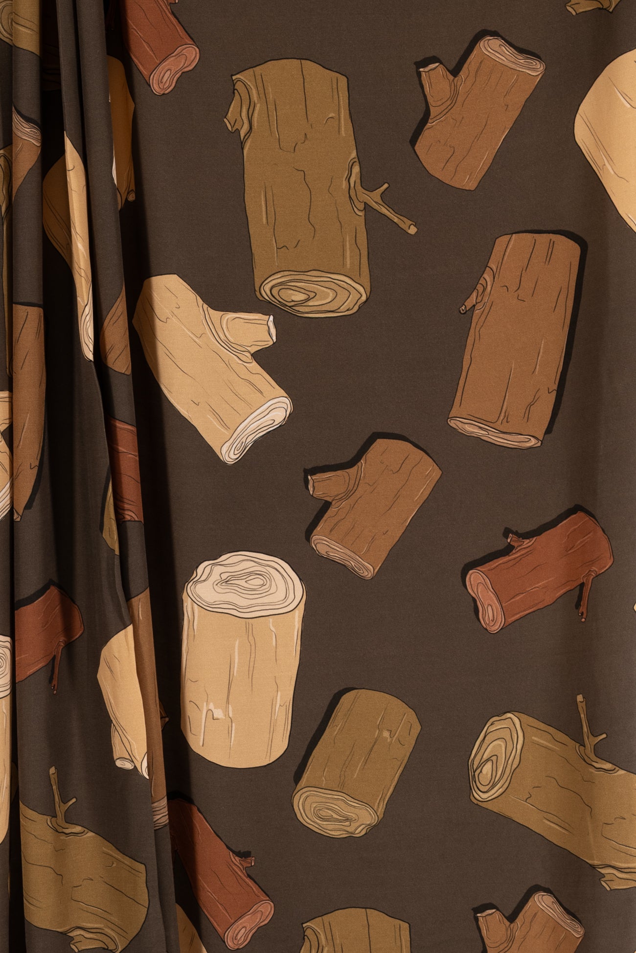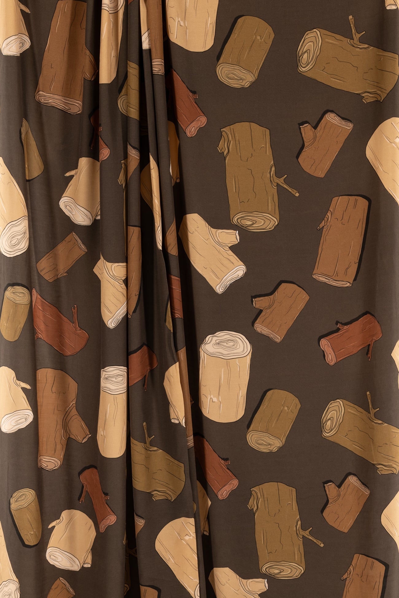 Log Jamboree Italian Viscose Woven and Woody Italian Viscose Woven are the same print in different colorways and scale.