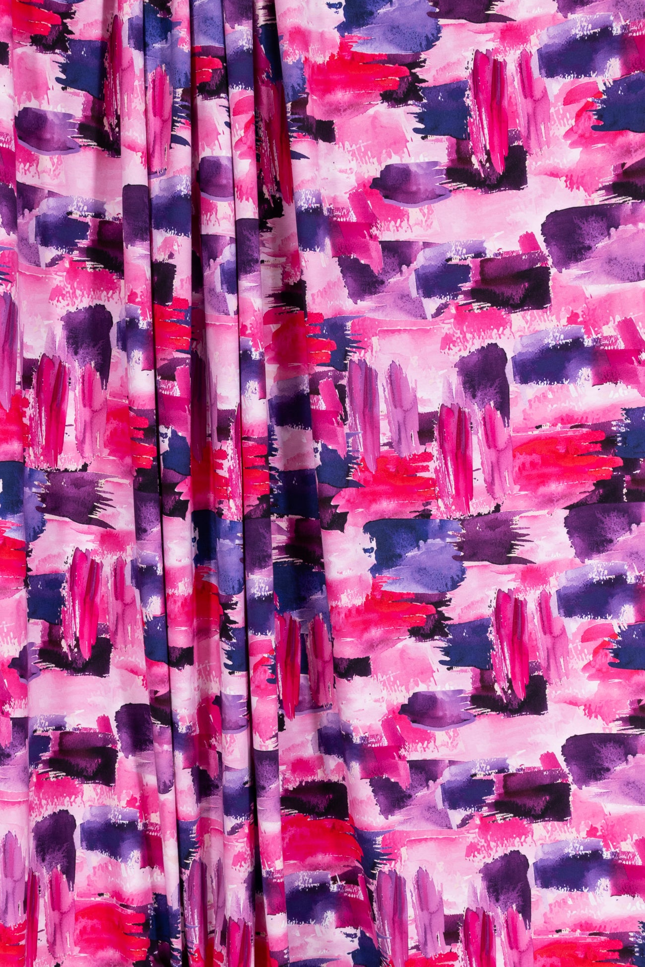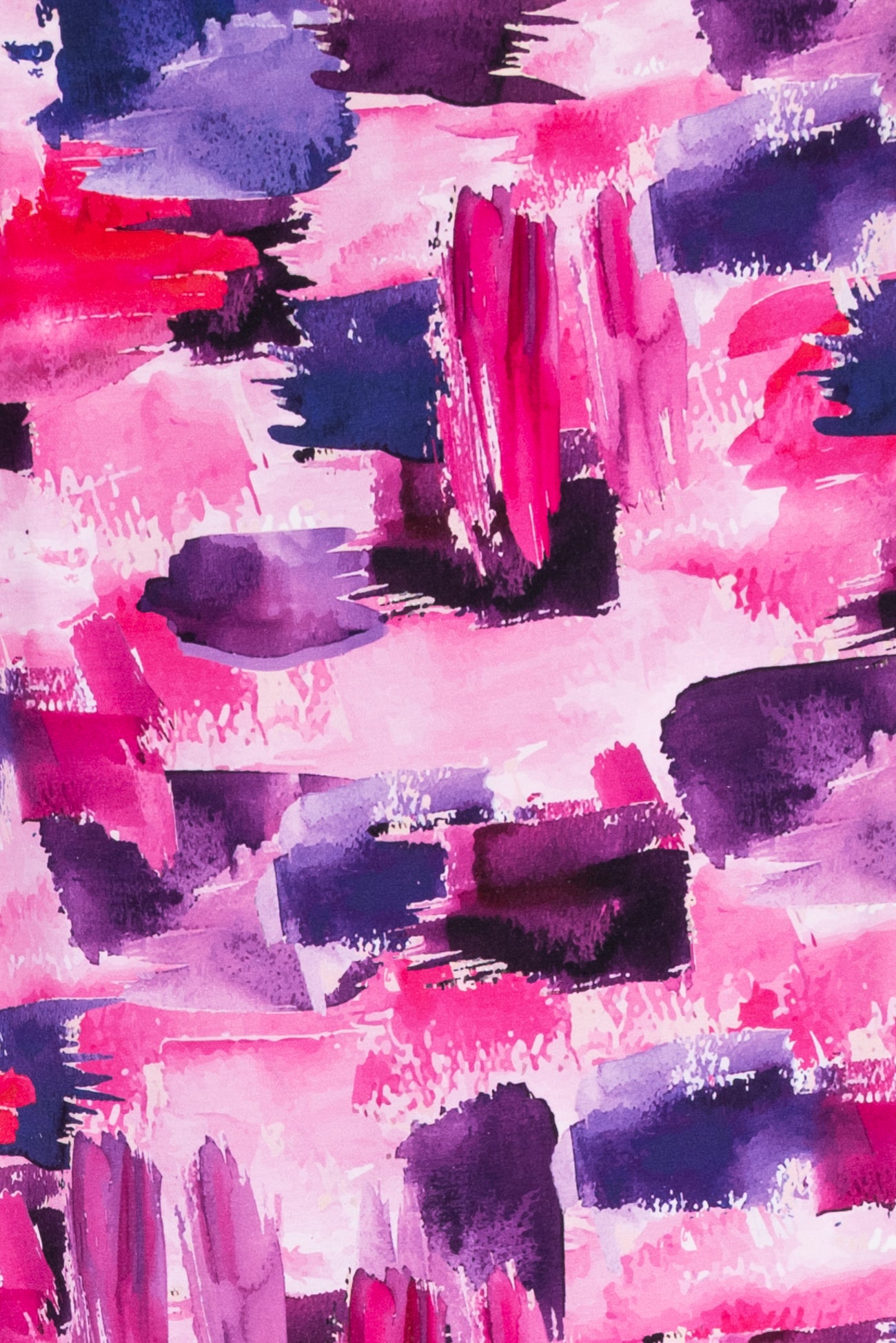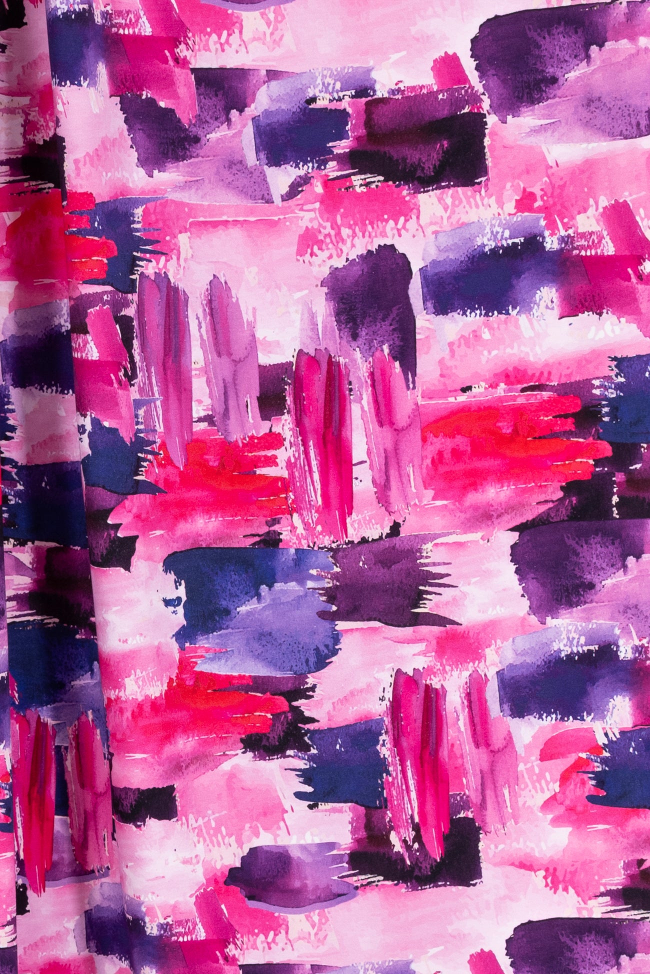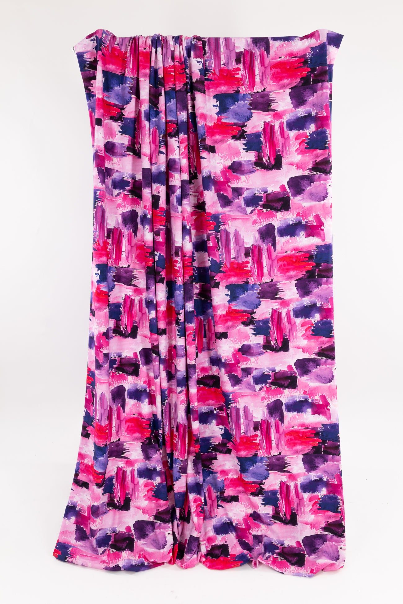 The beauty of brushstrokes in shades of red through pink to purple, in a gorgeous abstract digital print on an impeccable European quality cotton/spandex jersey knit, produced in Denmark. Light/mid-weight, opaque, and will skim the body in a flattering way. It has a soft smooth hand, fluid drape, 4-way stretch, and some rolling at the cut edge. Right for a variety of garments; t-shirt, tunic, dress, soft pants, leggings, cardigan, skirt or loungewear, as well as children's and men's clothing. Oeko-Tex® certified. One-way design, 4" repeat.
