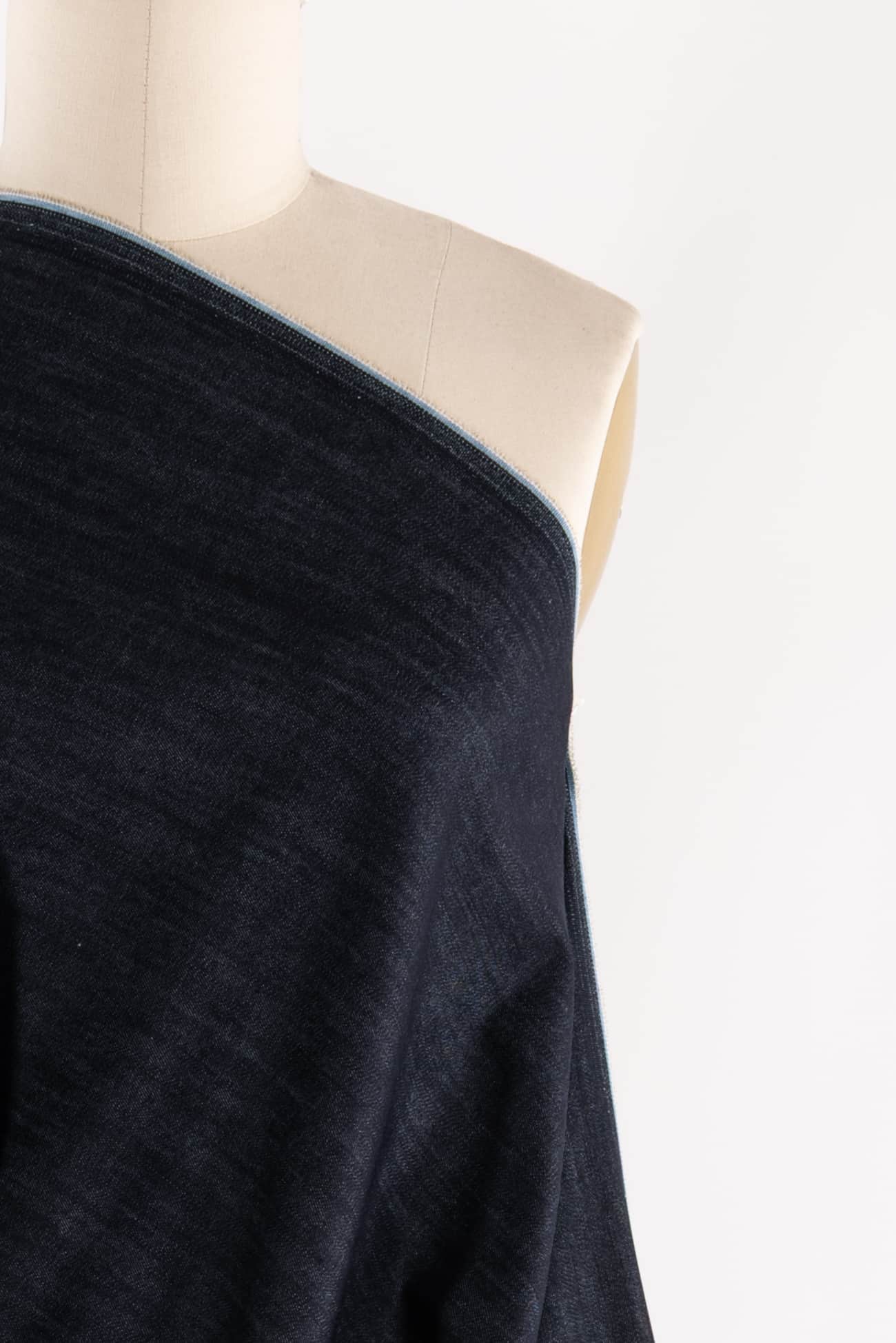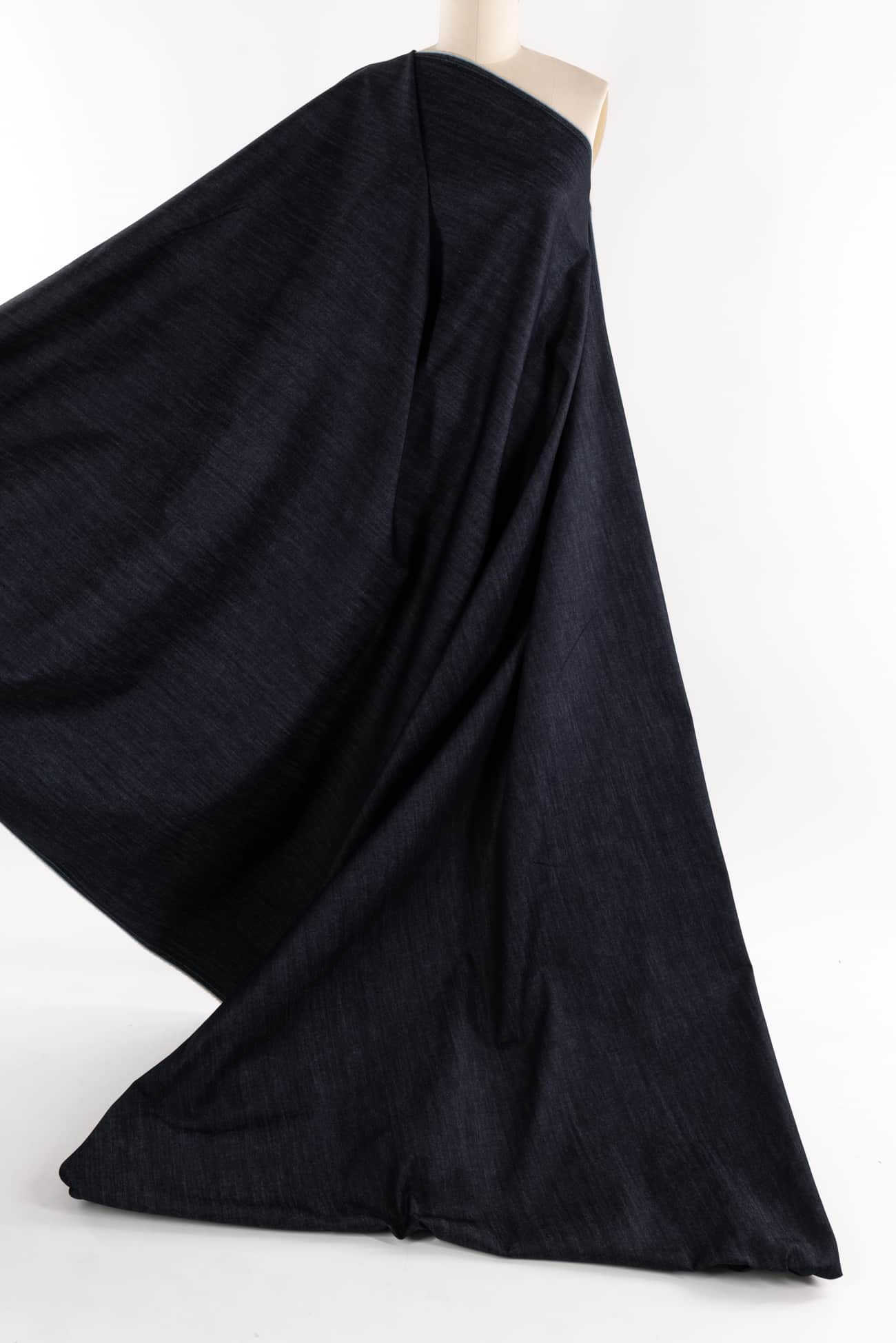 Classic indigo stretch denim, beautiful quality, deadstock from Alexander Wang. Mid/lightweight, cool, smooth hand, lightly crisp drape, good crosswise stretch and recovery. A beautiful basic for pants, jeans, jacket, vest, skirt, dress, men's and children's wear.