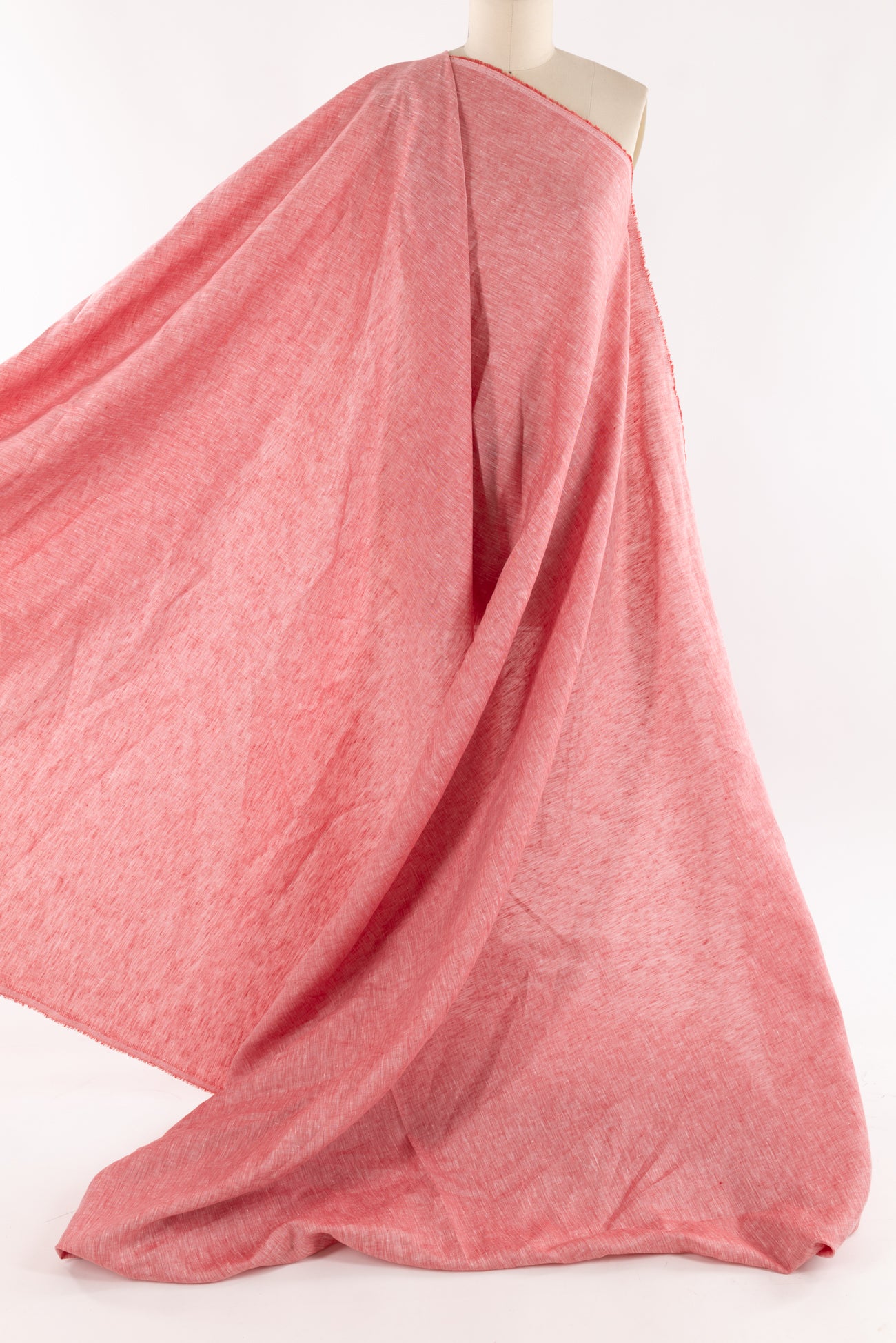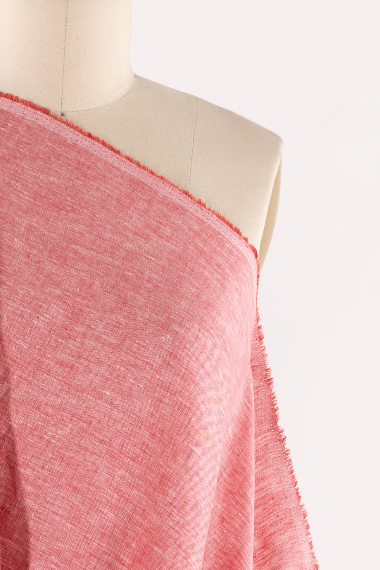 Elegant barn red and white yarn-dyed crossweave in a supple linen, fine quality deadstock from a NYC designer. Lightweight, opaque, with a fine grained weave, smooth cool hand and light airy drape. Right for a dress, shirt, tunic, skirt, soft pant, kimono, caftan, or light jacket.