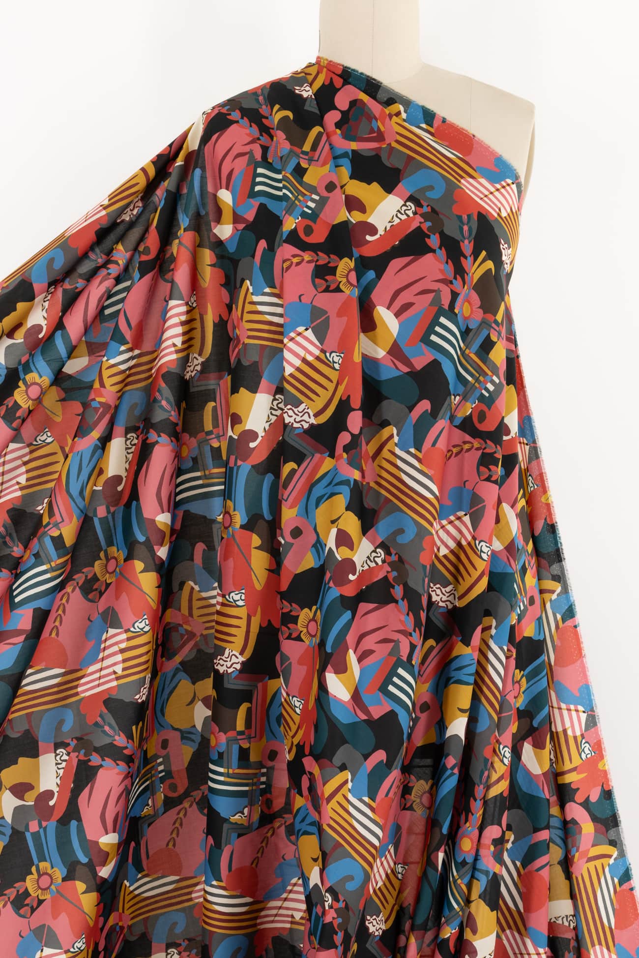 Modern Liberty print with stylized cool toned multicolored leaves and gestural striped accents. Produced in Northern Italy for Liberty of London, printed on the renowned and exceptional Tana Lawn, the cotton that behaves and feels like silk. Fine-grained, with a cool, smooth, soft hand, fluid drape, depth of color, and one-way design with a 12" repeat. Perfect for a shirt, dress, skirt, tunic, soft pant, caftan, loungewear, children or men, accessories or home decor. Right to wear everyday or for statement pieces. OEKO-TEX® certified.