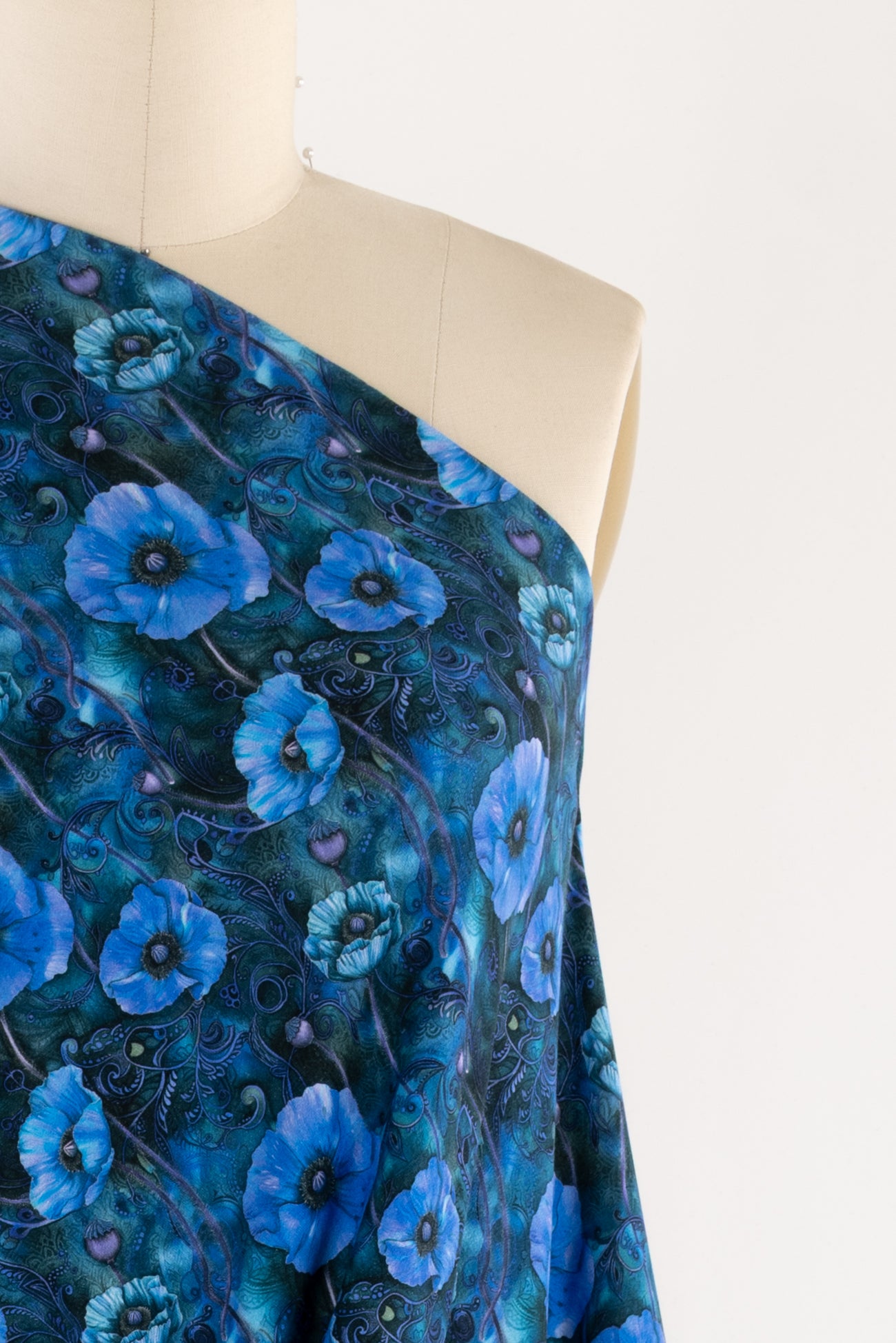 Blue Poppies Dutch Cotton Brushed French Terry Knit