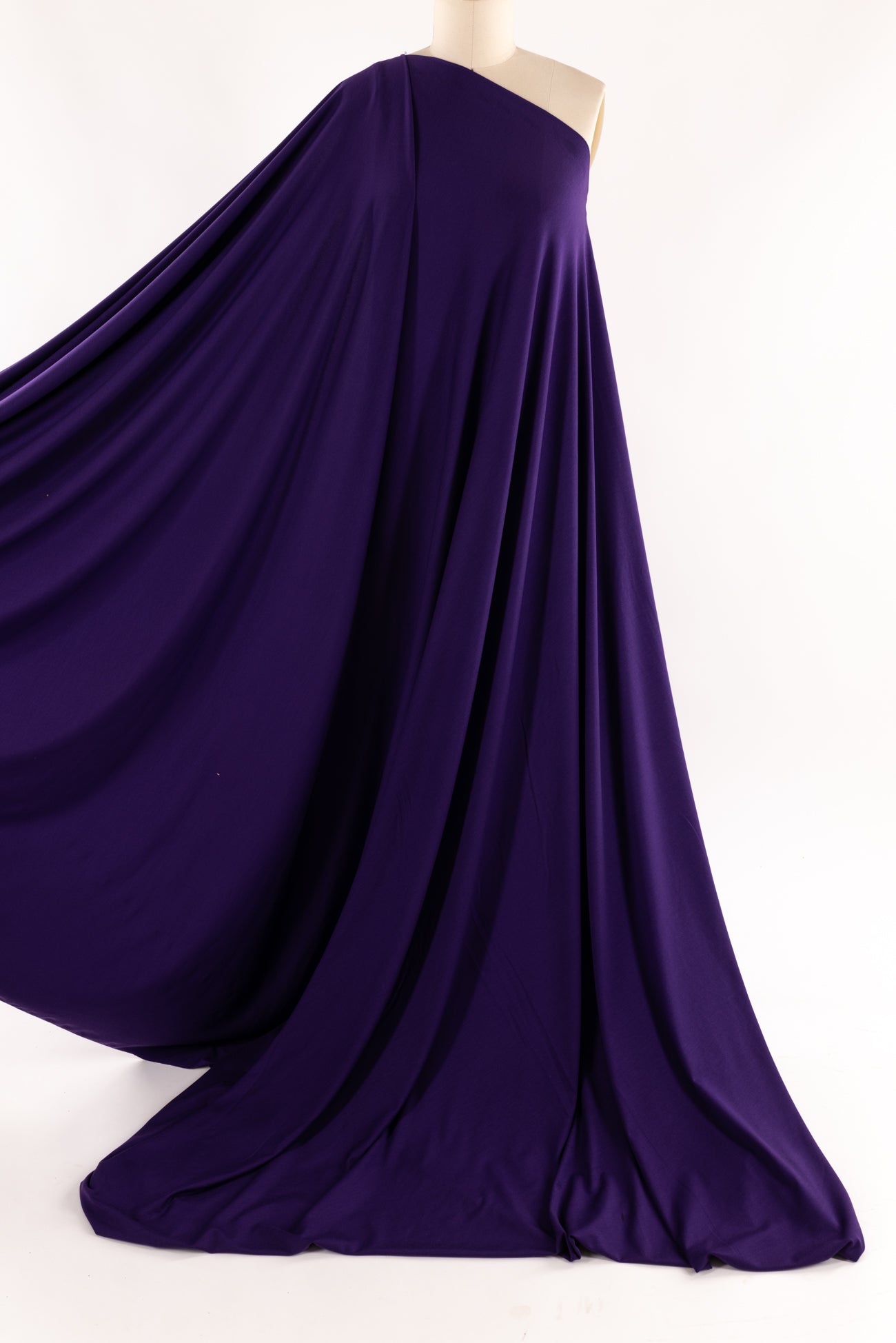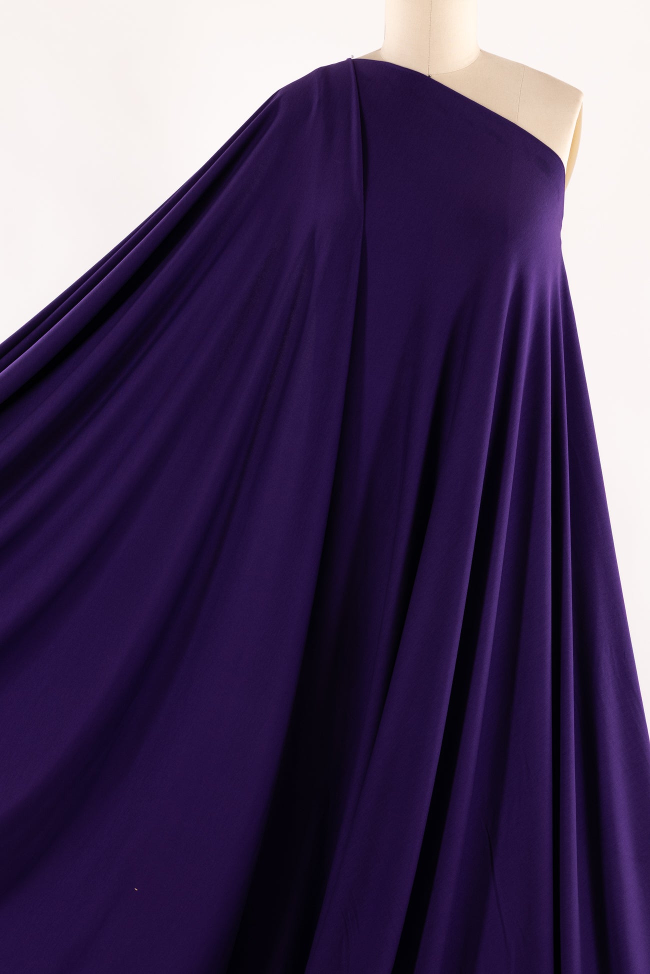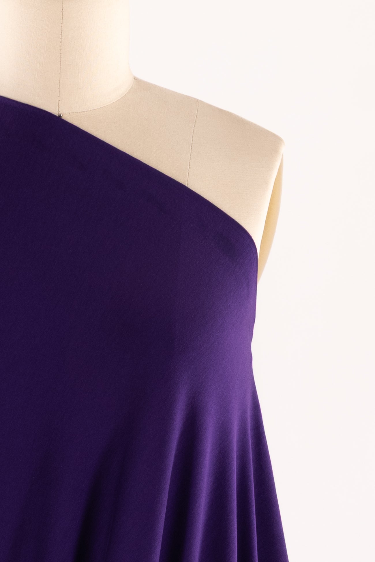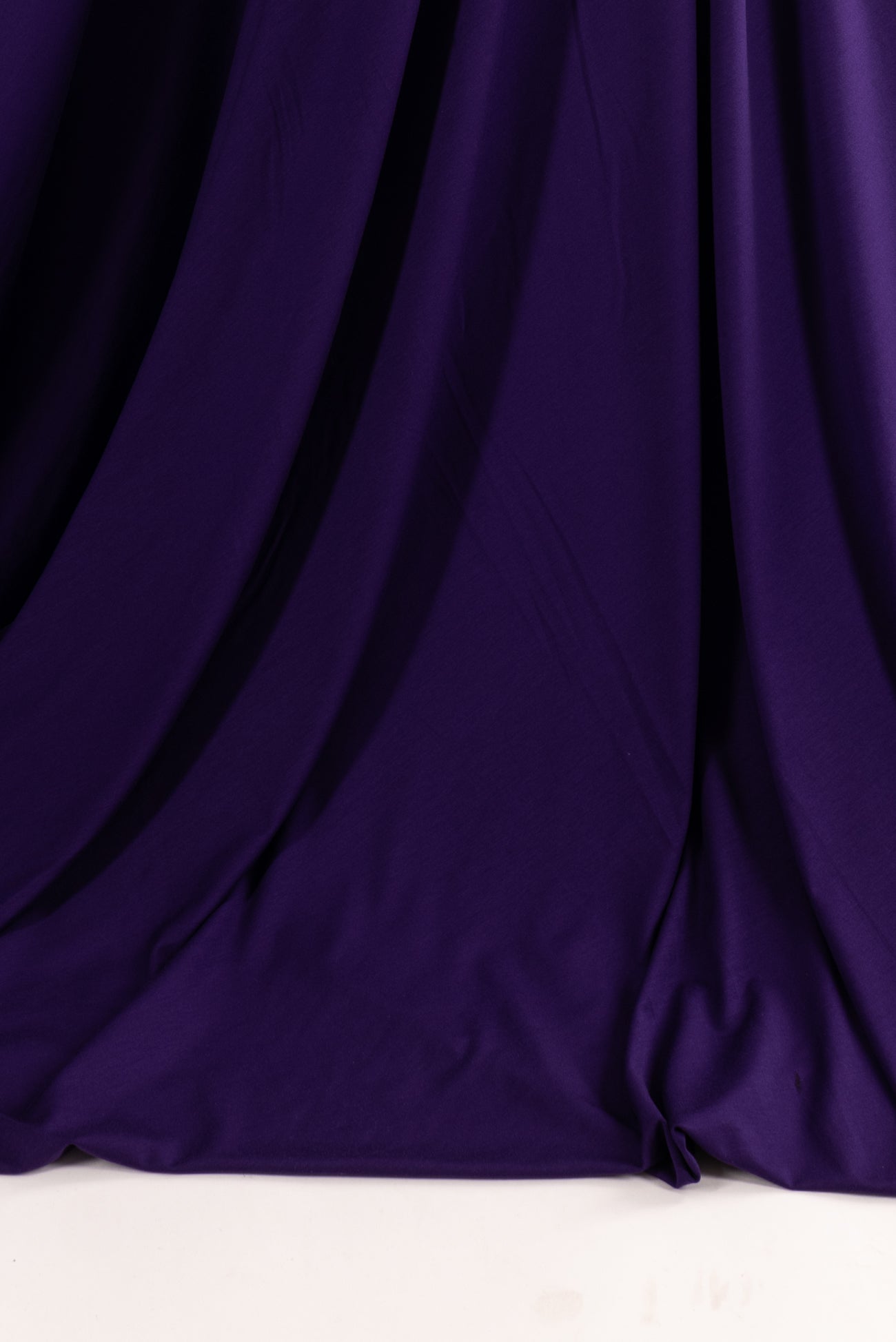 Clear royal purple in a fine jersey, beautiful quality in an elevated basic, deadstock from Eileen Fisher. Lightweight with a smooth, fine texture, fluid drape, 4-way stretch, and some rolling at the cut edge. Right for a t-shirt, tunic, cardigan, dress, skirt, soft pants or caftan. Limited quantity available.