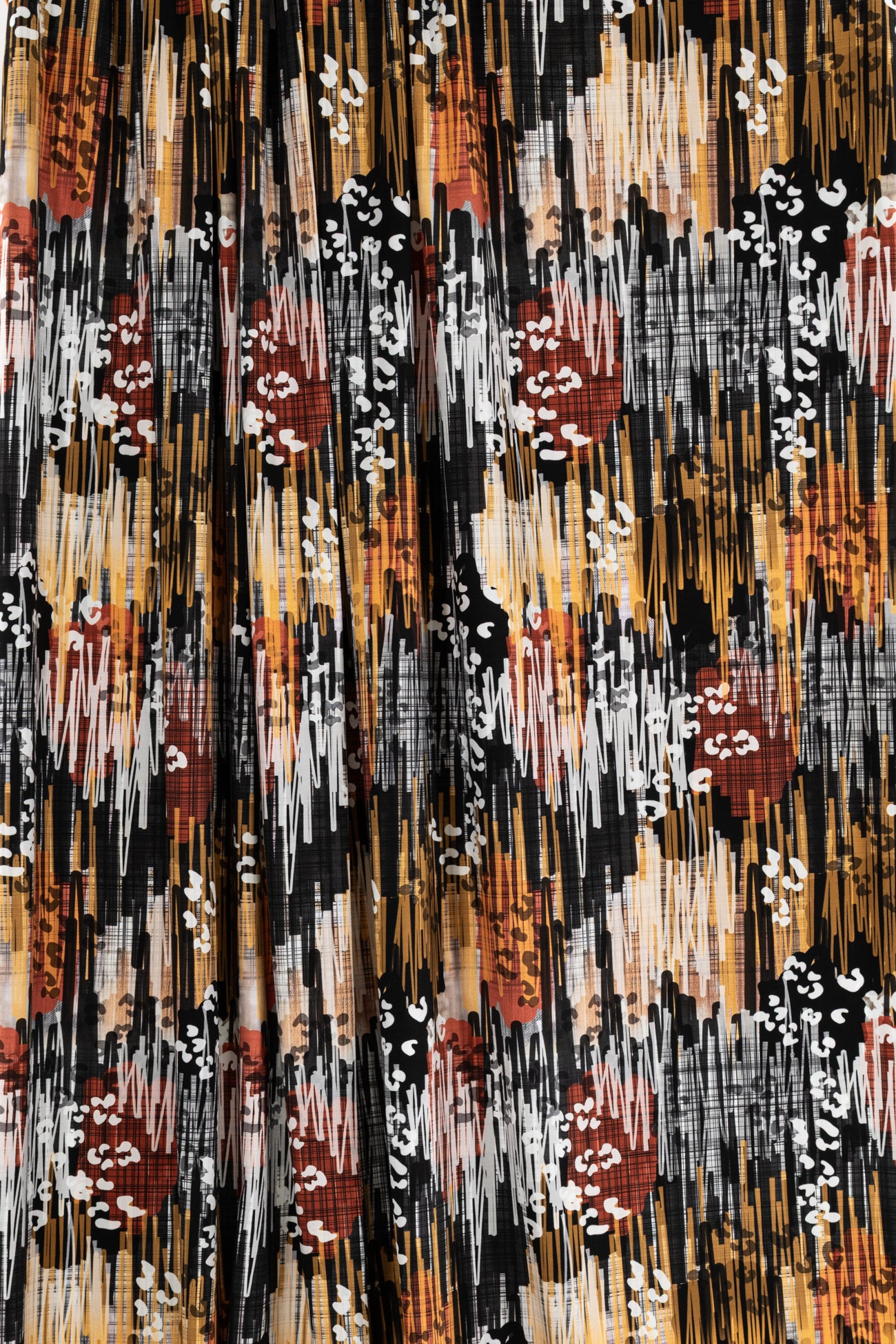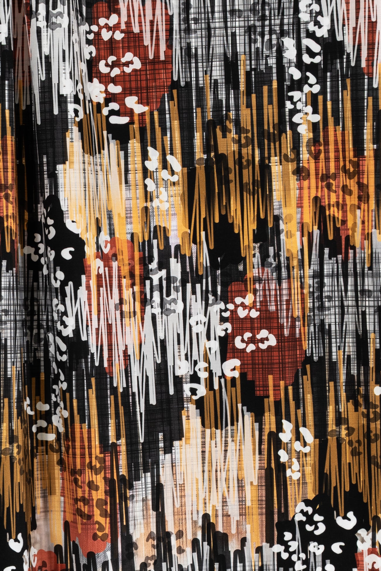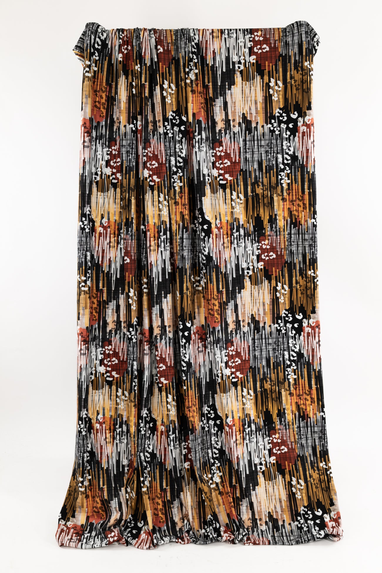 Striking arty abstract in camel, apricot, ochre, gray, white and black, digitally printed on luxurious cotton knit jersey in the Netherlands. Impeccable quality, light/mid-weight, opaque, with a flattering body-skimming flow, appealing soft hand, fluid drape, crosswise stretch, some lengthwise stretch, a 25½" repeat and some rolling at the cut edge. Ideal for a wide range of garments, t-shirt, tunic, dress, skirt, soft pants, loungewear, caftan, kimono, or children's. Oeko-Tex® certified.