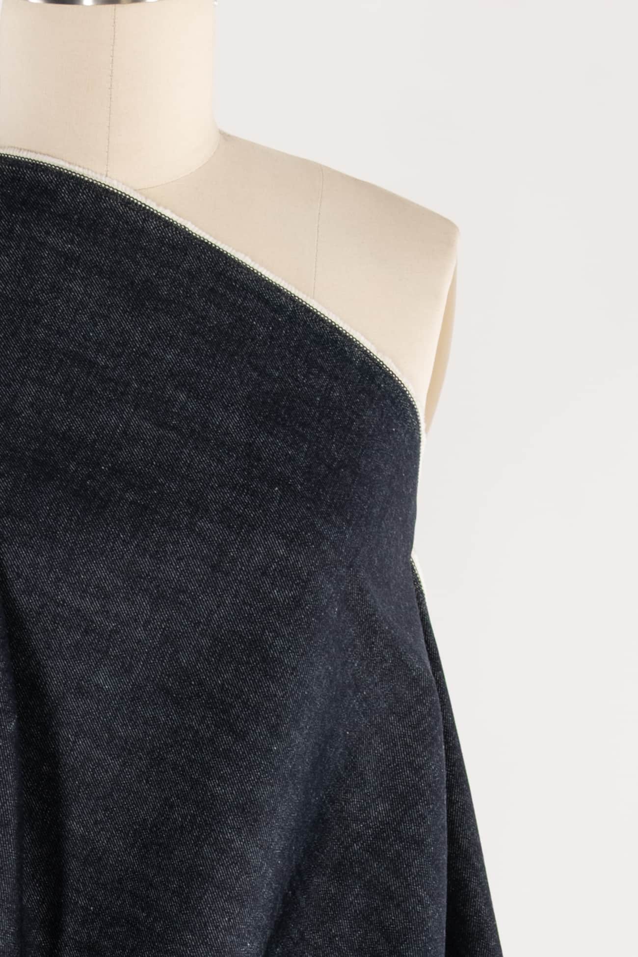 Exceptional navy cotton denim, top quality deadstock from an Italian mill, made for Milanese brand J@cob Cohën, known for 'transforming denim into everyday luxury'. Think $400 jeans. No stretch. Heavyweight with a lightly textured twill hand and structured drape. Right for workwear, jeans, a light jacket or coat, structured dress, skirt, tunic, top, jumpsuit or men's. Limited quantity available.