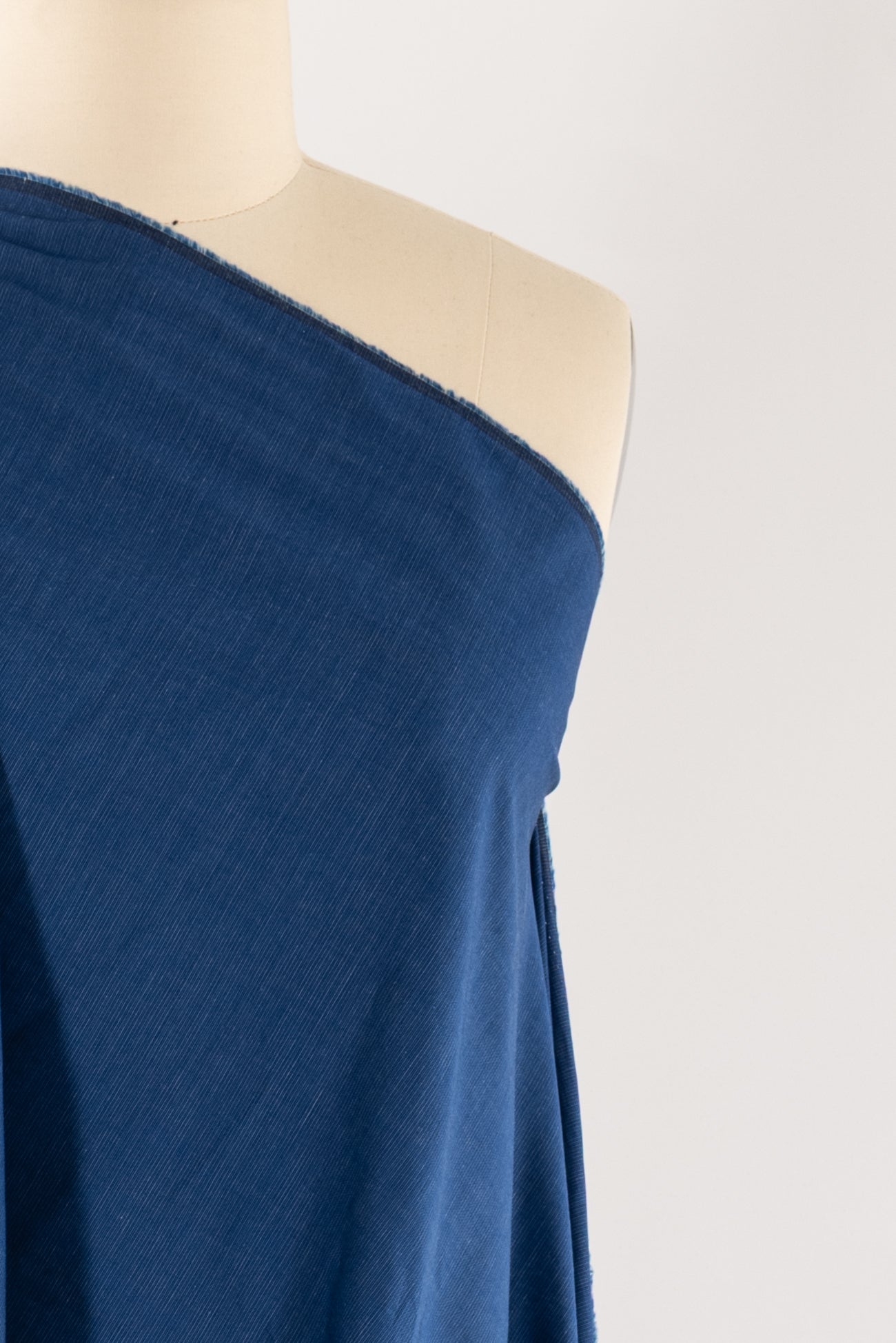 An elegant combination of clear blue and white threads creates a subtle horizontal stripe in an impeccable quality yarn-dyed cotton woven, produced in Japan. Fine grained light/shirting weight, deadstock, with a soft smooth hand and a soft drape. Just right for a dress, shirt, tunic, skirt, soft pants, caftan, kimono, men's or children's.