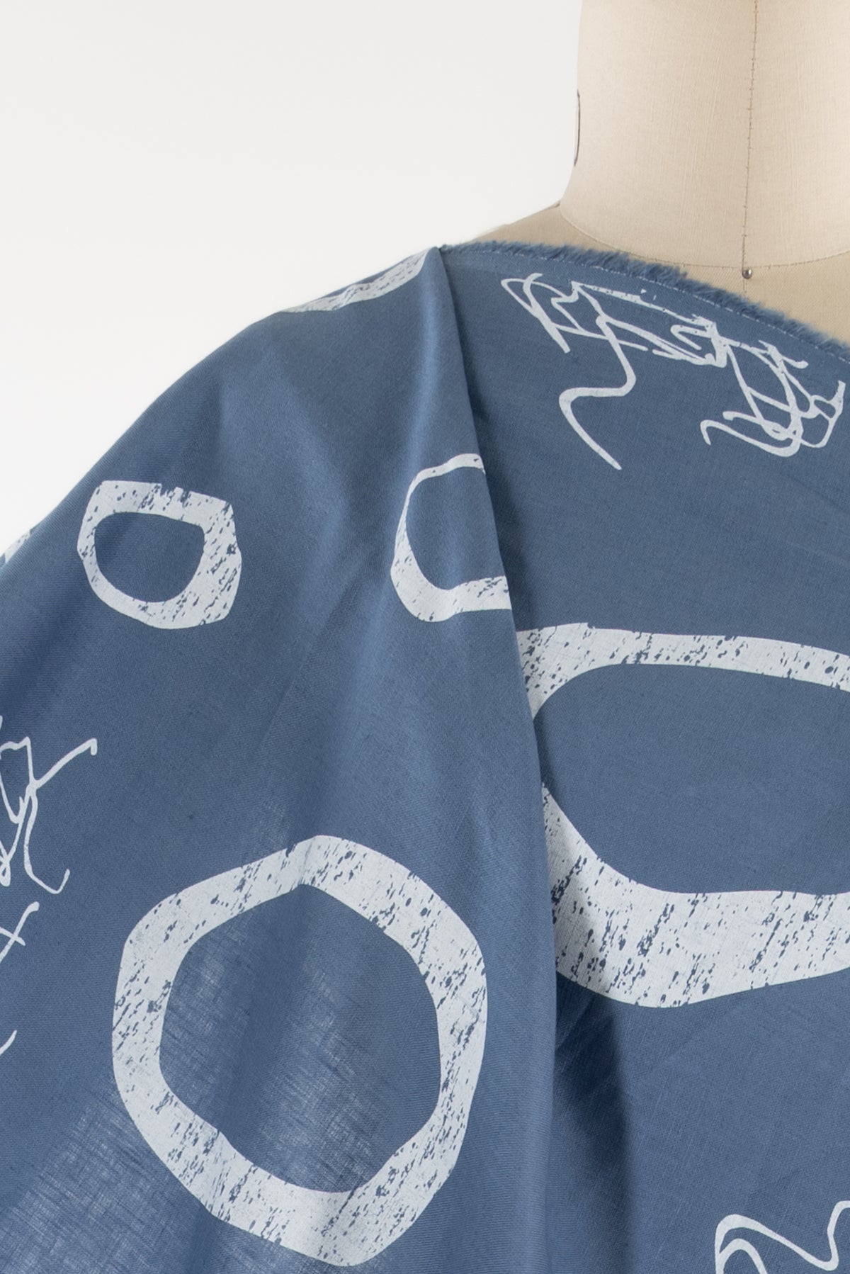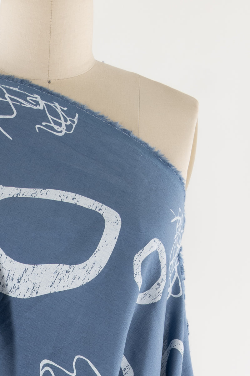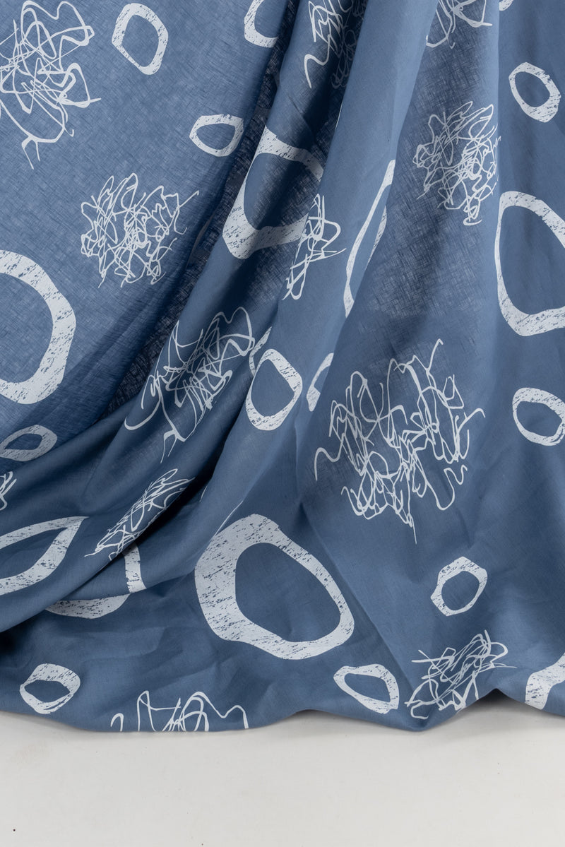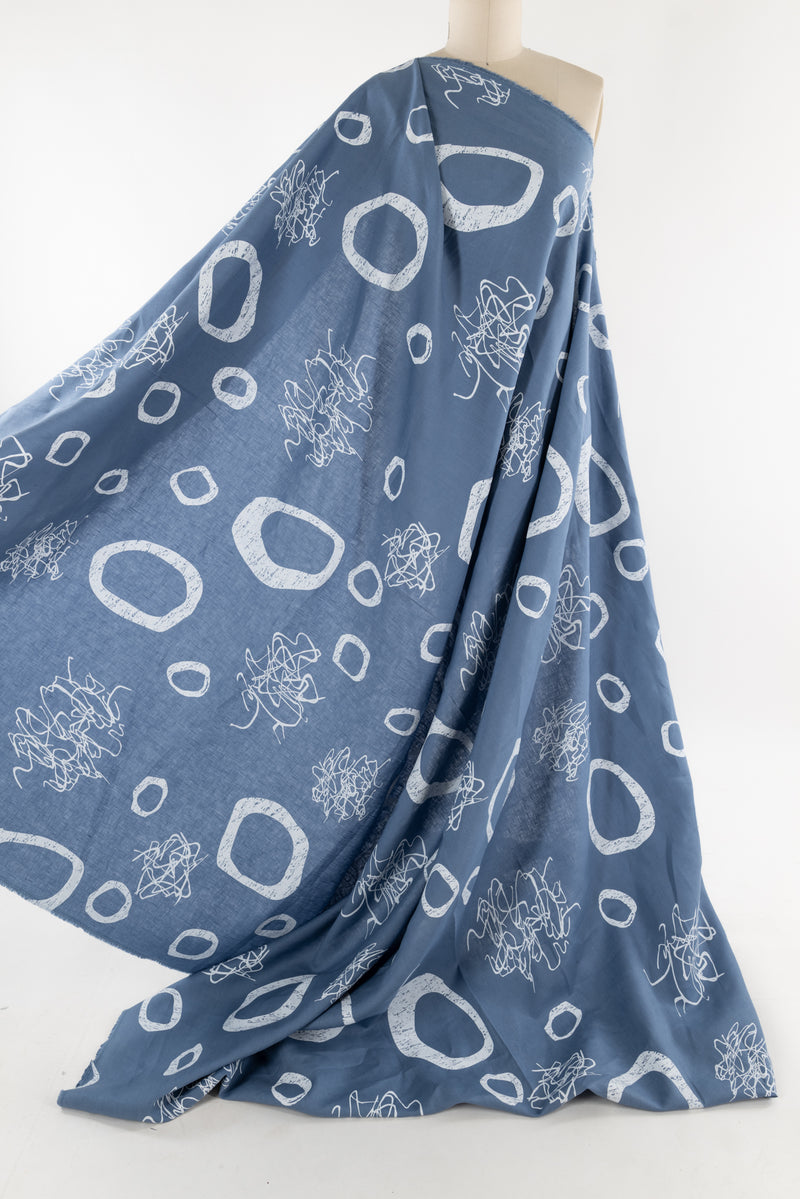 An artistic array of white circles and squiggles dance on sky blue on a gorgeous light/mid-weight yarn dyed linen. Beautiful quality deadstock from Southern California designer Chalet et Céci has a subtle smooth matte hand, muted linen glow, 24½" repeat, and light drape. Just right for a shirt, light jacket, vest, dress, skirt, loungewear, or pants. Lovely quality, a beautiful basic linen which will work lined or unlined. If you are making an unlined jacket or coat, I recommend lining the sleeves to prevent wrinkling and allow other garments to slip on/off easily. If making structured pants, I'd underline the front to the knee to prevent wrinkling. My favorite lining for linen is a rayon bemberg or rayon blend.