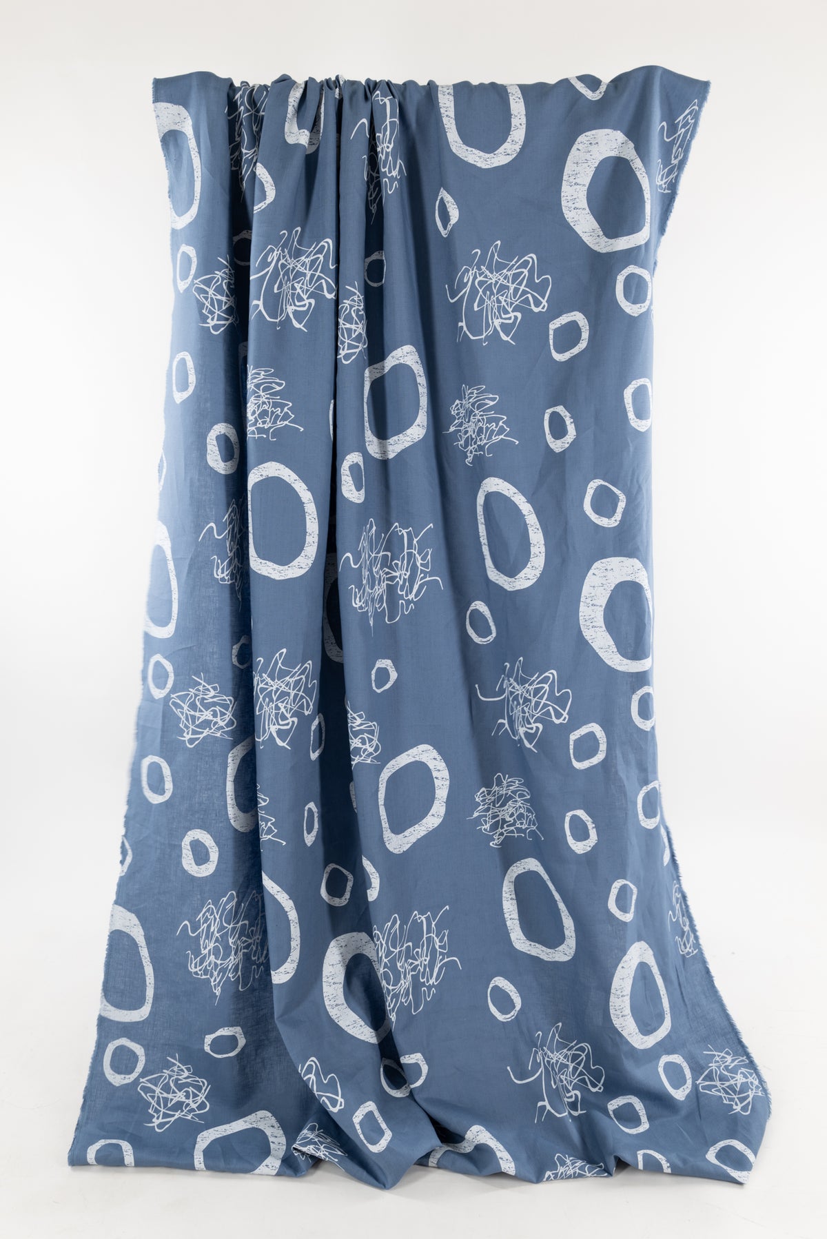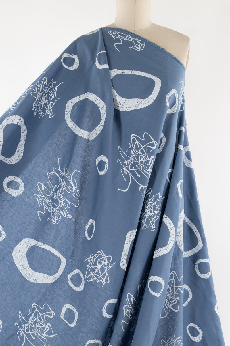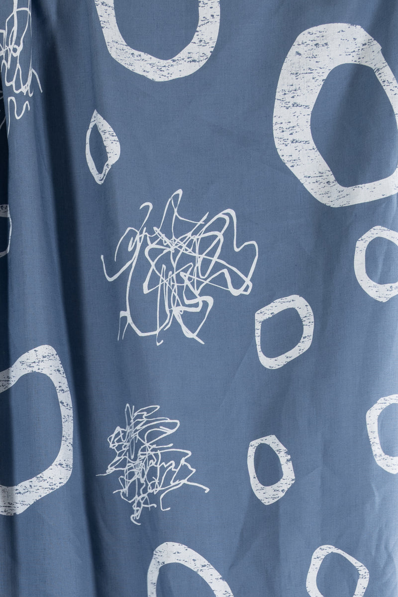 An artistic array of white circles and squiggles dance on sky blue on a gorgeous light/mid-weight yarn dyed linen. Beautiful quality deadstock from Southern California designer Chalet et Céci has a subtle smooth matte hand, muted linen glow, 24½" repeat, and light drape. Just right for a shirt, light jacket, vest, dress, skirt, loungewear, or pants. Lovely quality, a beautiful basic linen which will work lined or unlined. If you are making an unlined jacket or coat, I recommend lining the sleeves to prevent wrinkling and allow other garments to slip on/off easily. If making structured pants, I'd underline the front to the knee to prevent wrinkling. My favorite lining for linen is a rayon bemberg or rayon blend.