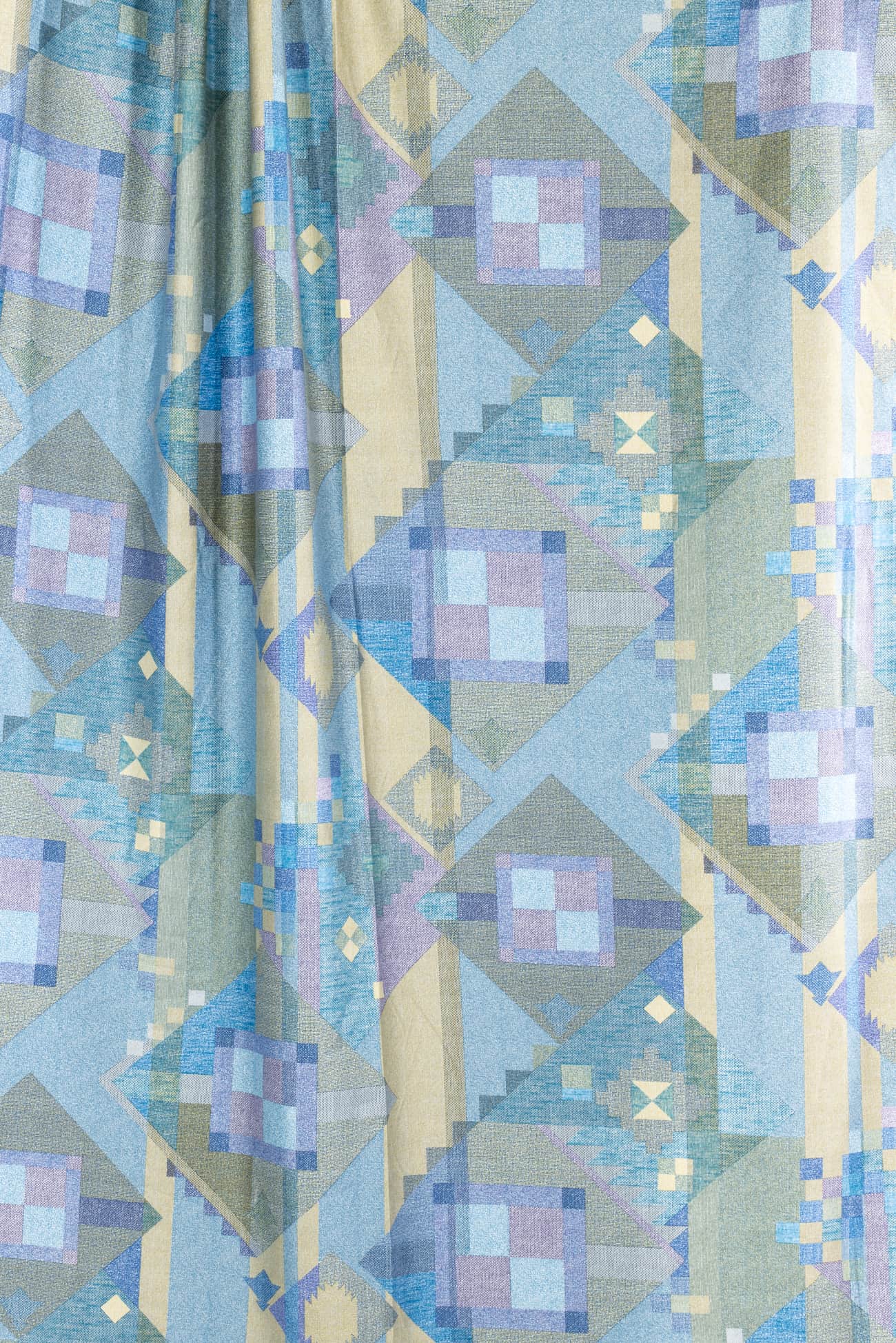 Charming pastel pointillist geometric in shades of blue, green, lavender, deadstock produced for a NYC designer in a Japanese mill on impeccable shirting weight cotton. Lightweight, opaque, fine grained with a smooth hand and soft drape. Right for a dress, shirt, skirt, tunic, kimono, caftan, soft pants, loungewear, children's clothes and for home decor projects. Ome way design, 25" repeat.