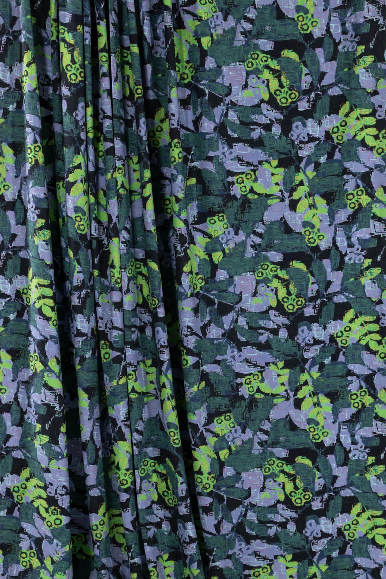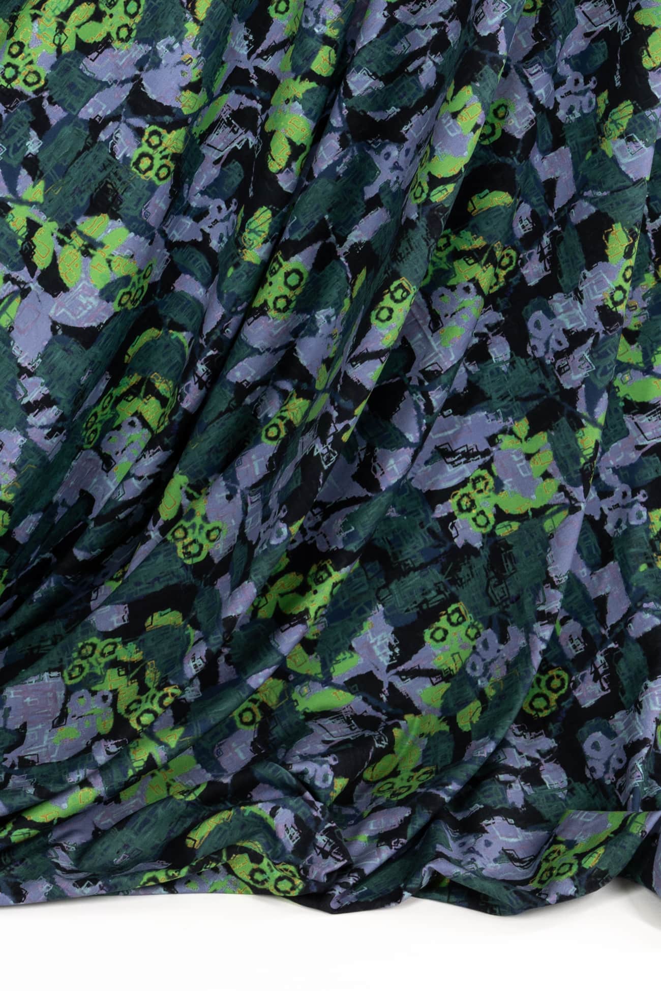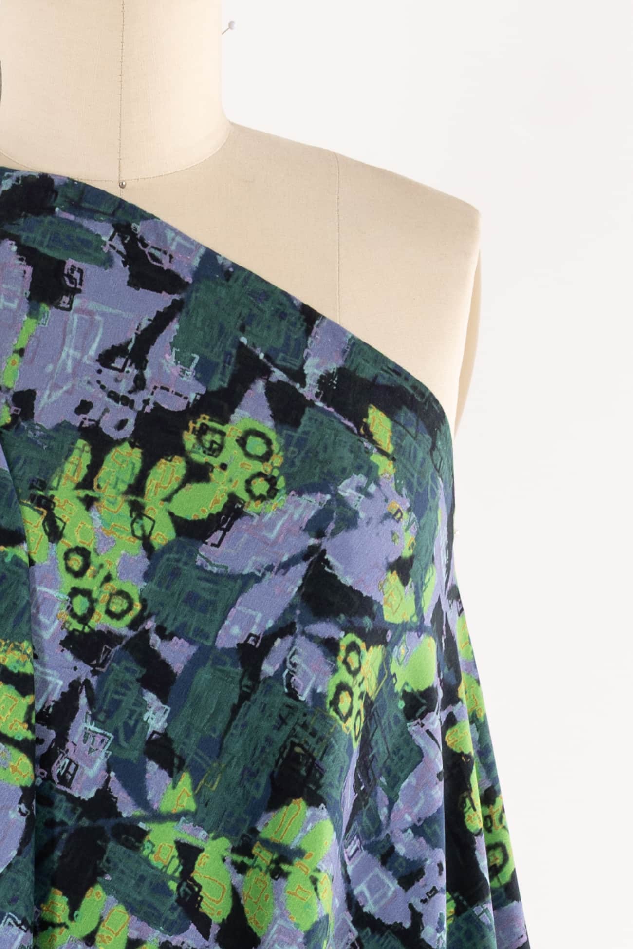Charming contemporary floral in shades of blue, lavender, and green with touches of black in a digital print on an impeccable European quality cotton/spandex jersey knit, from Denmark. Light/mid-weight, opaque, and will skim the body in a flattering way. It has a soft, smooth texture, fluid drape, 4-way stretch, a 15¾" repeat, and some rolling at the cut edge. Right for a t-shirt, tunic, dress, soft pants, leggings, cardigan, skirt, or loungewear, as well as children's or men's clothing. Oeko-Tex® certified.