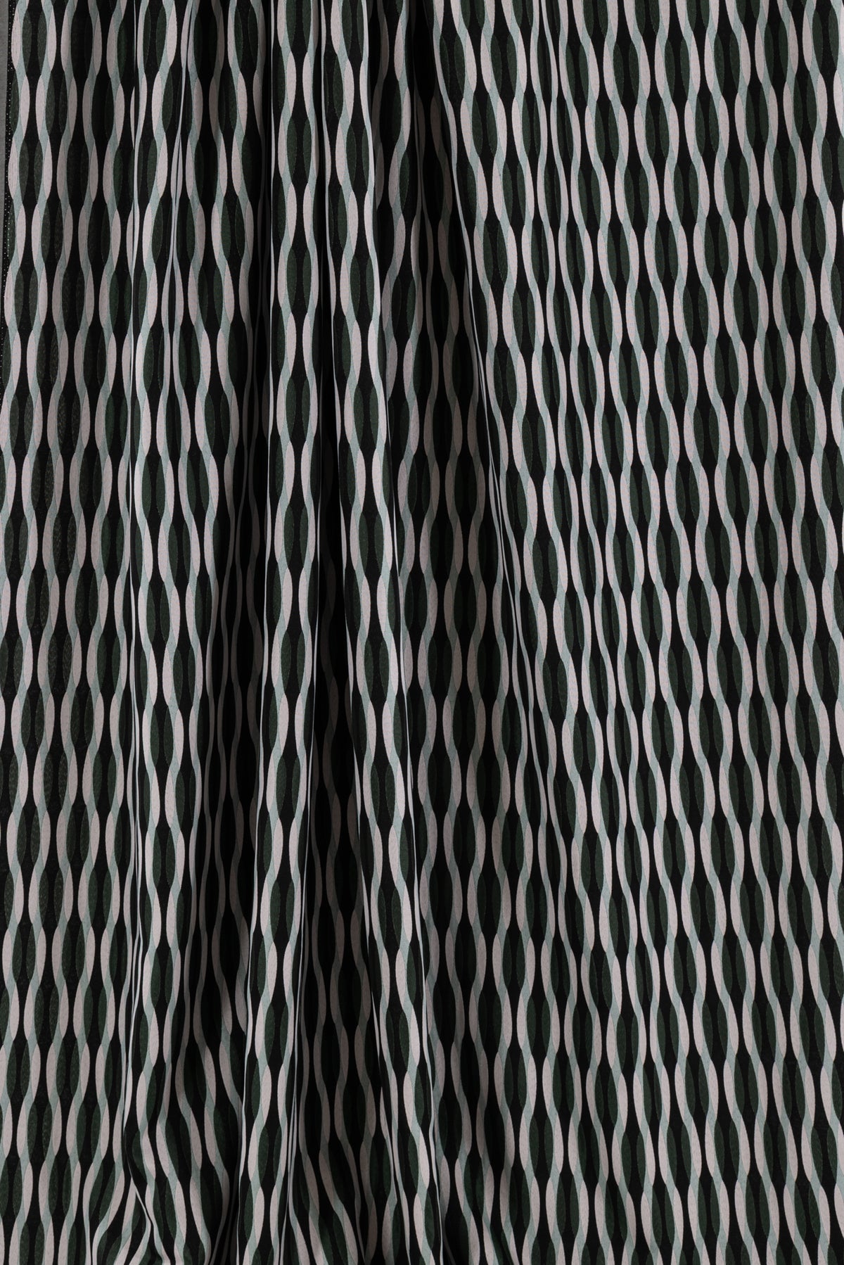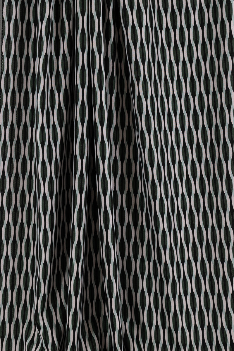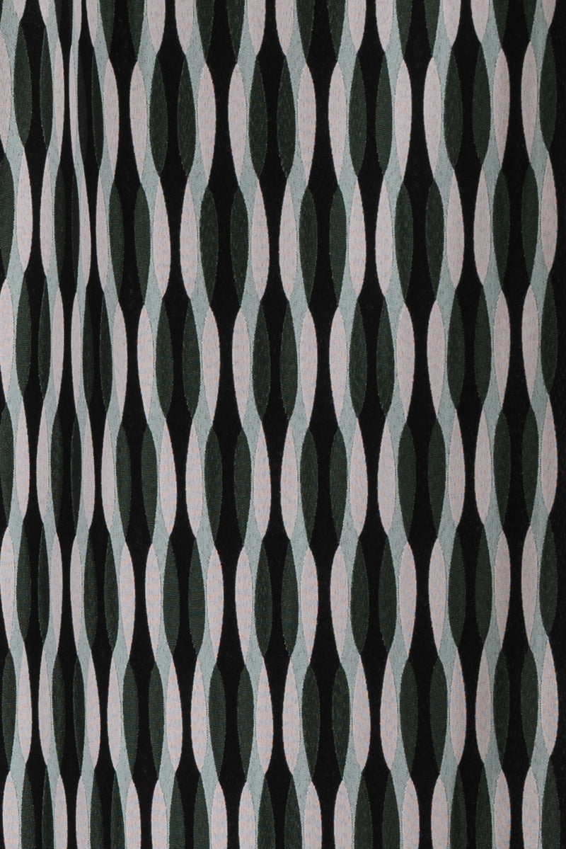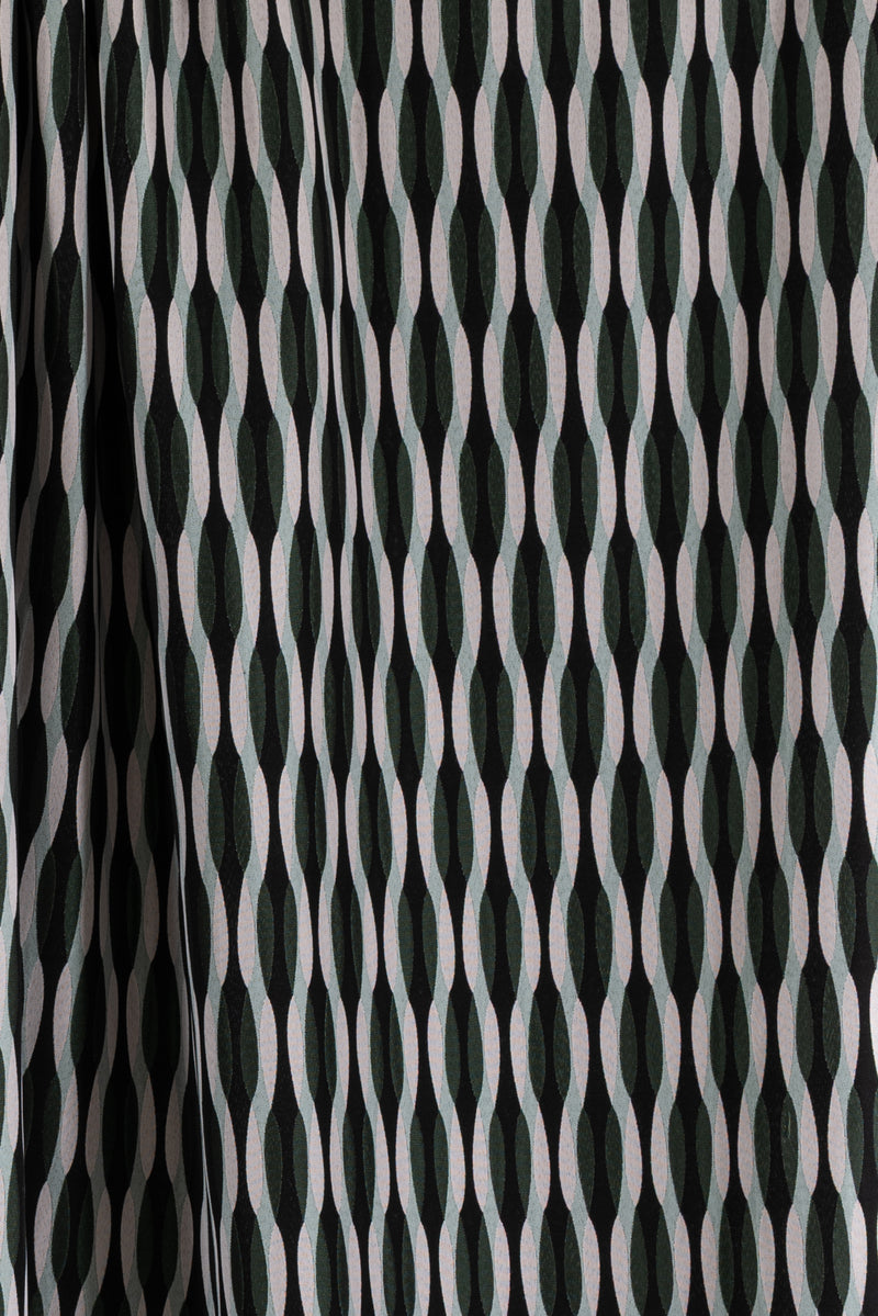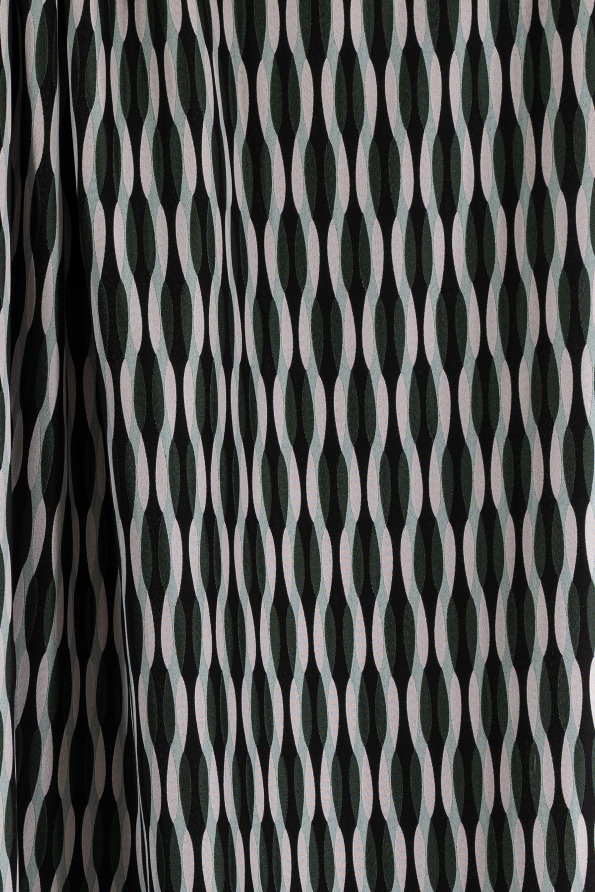 Striking jacquard with graceful undulating lines in forest, pale pistachio, black and white. Fine deadstock from LA designer Corey Lynn Calter. Light/mid-suiting weight with a subtle texture, soft hand, and malleable drape. Use either or both sides. Feels delicious, no wrinkling, ideal for a jacket, pants, vest, duster coat, or structured dress.