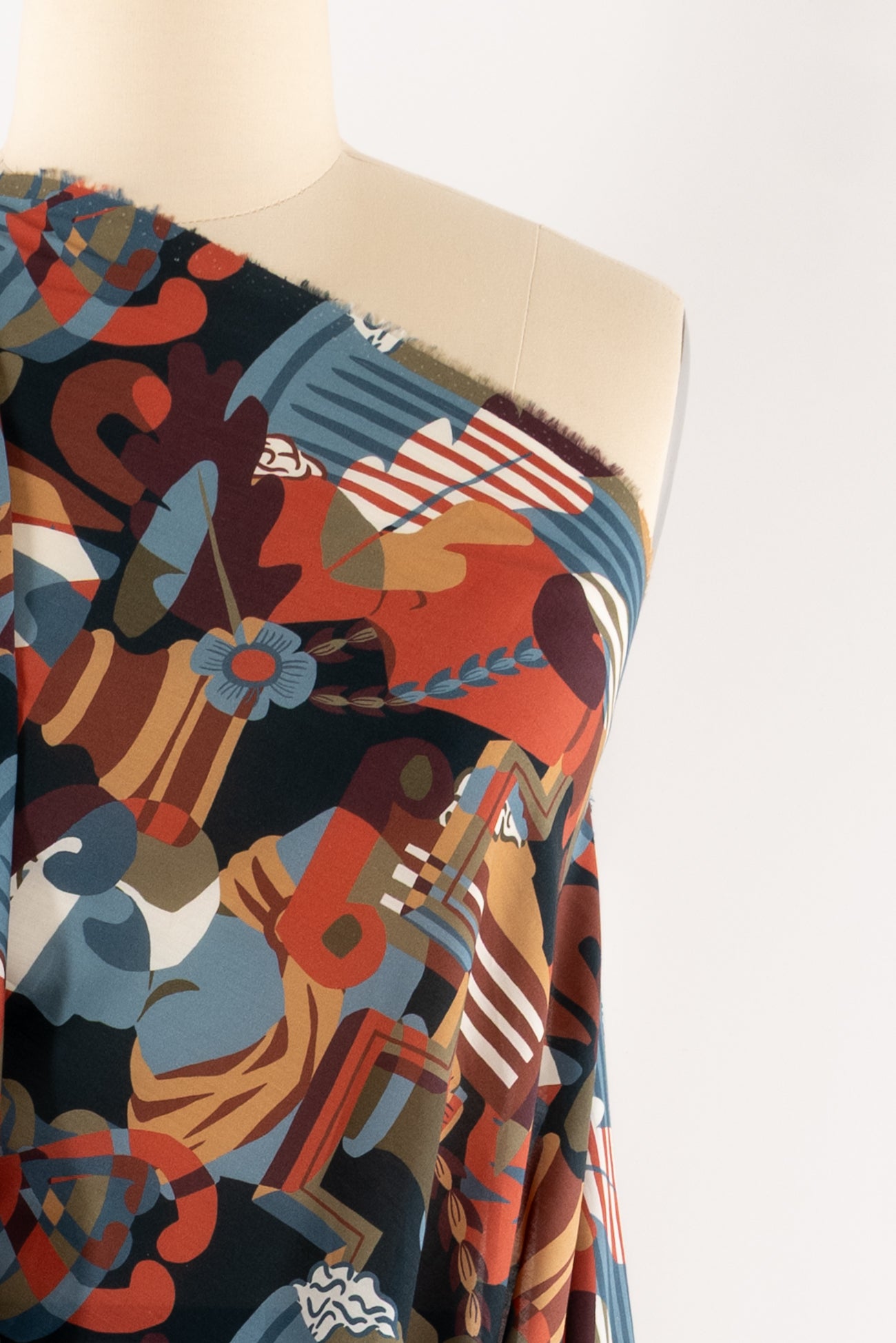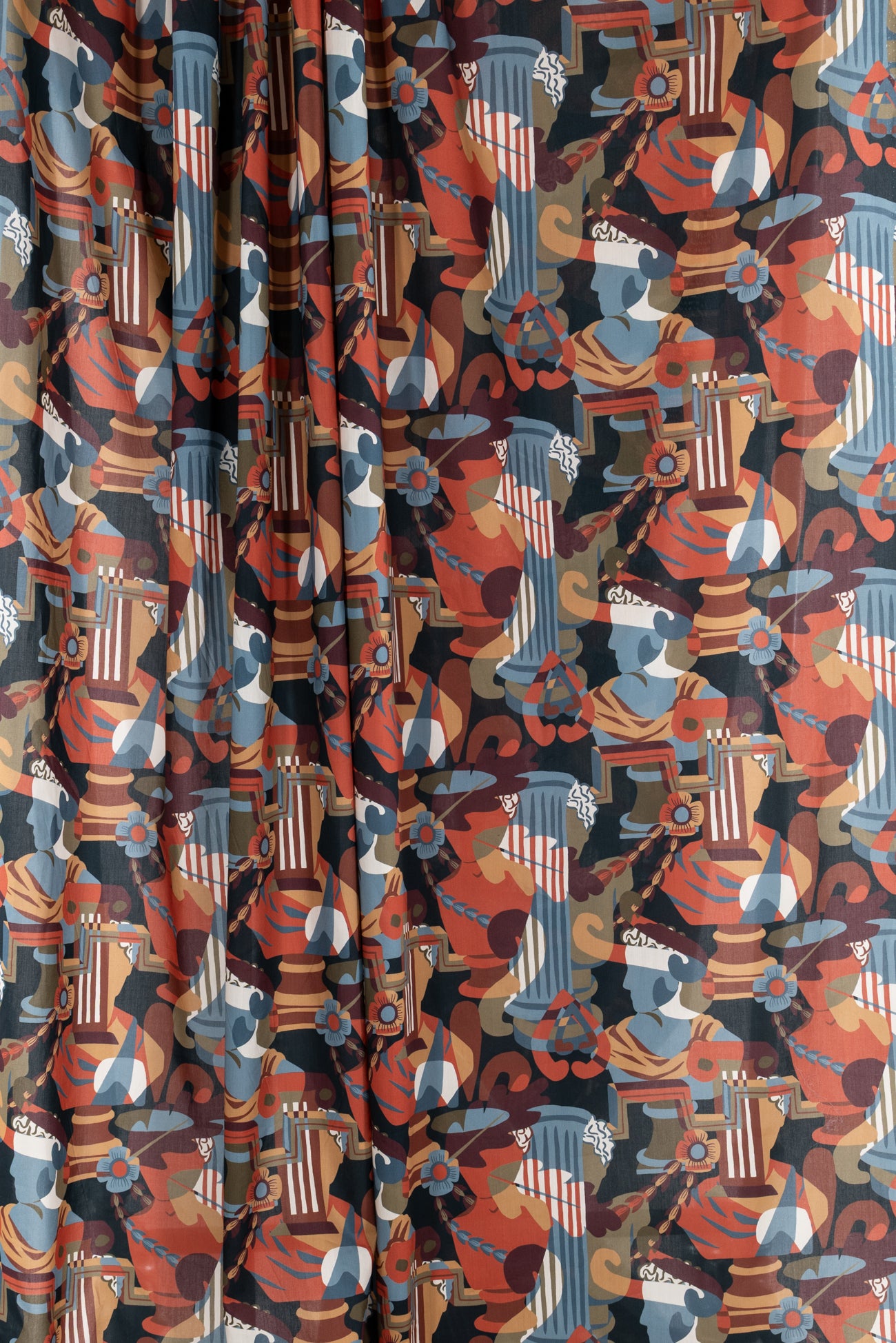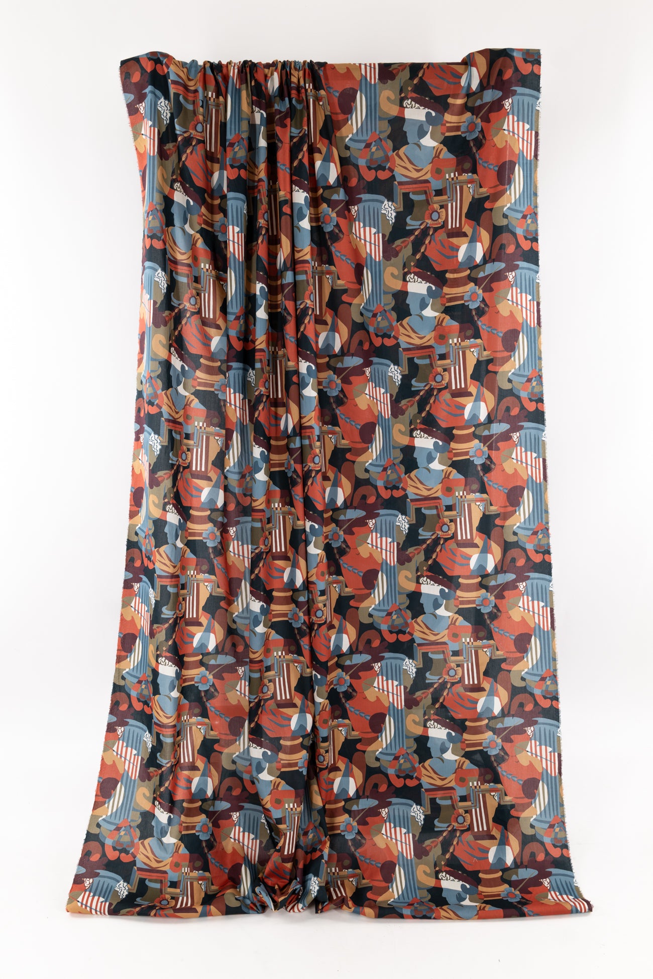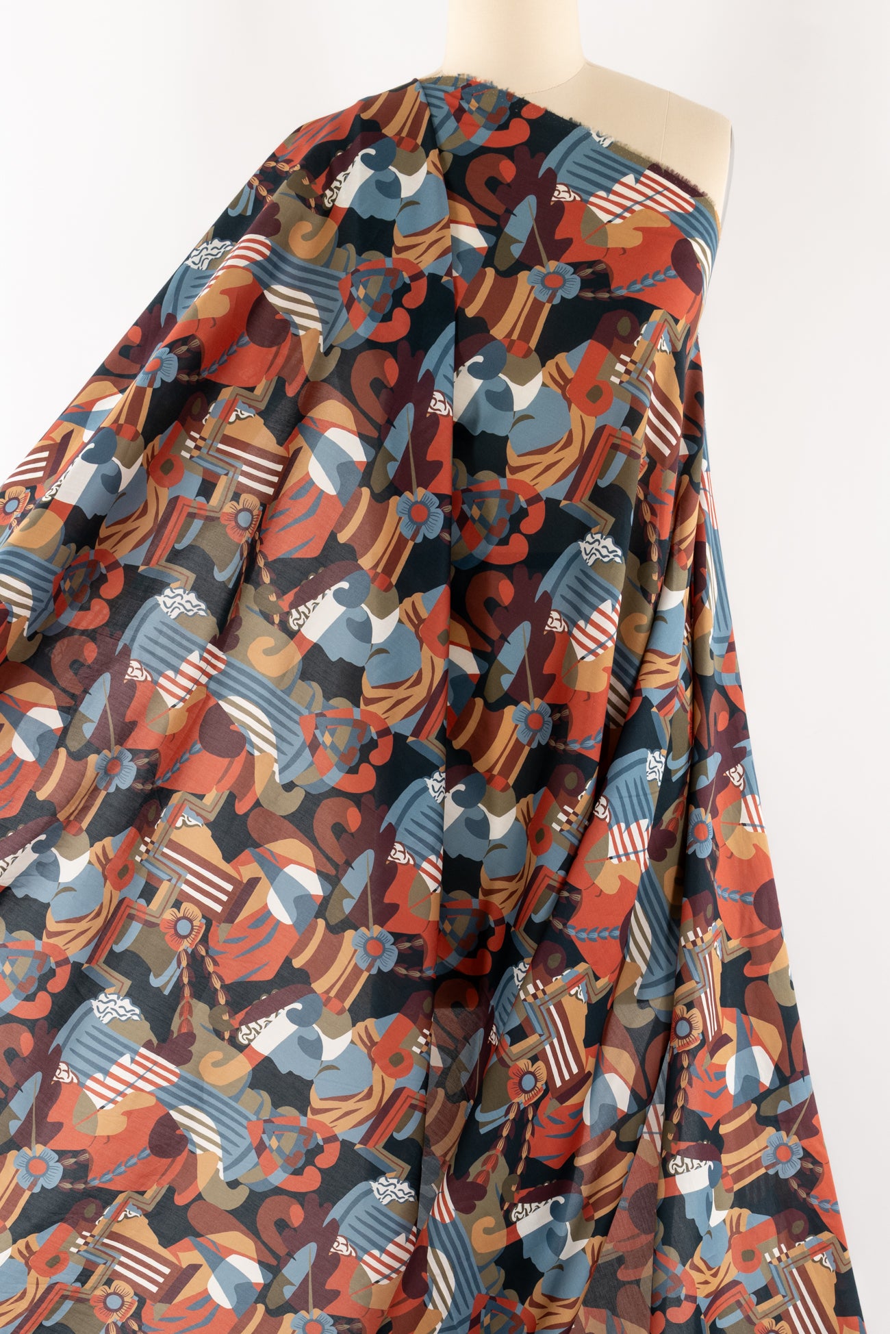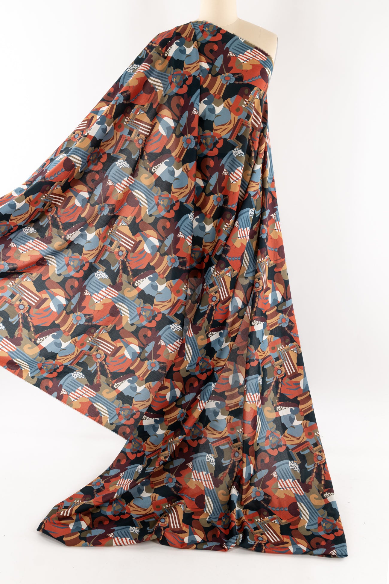 Modern Liberty print with warm tones stylized multicolored leaves and gestural striped accents. Produced in Northern Italy for Liberty of London, printed on the renowned and exceptional Tana Lawn, the cotton that behaves and feels like silk. Fine-grained, with a cool, smooth, soft hand, fluid drape, depth of color, and one-way design with a 12" repeat. Perfect for a shirt, dress, skirt, tunic, soft pant, caftan, loungewear, children or men, accessories or home decor. Right to wear everyday or for statement pieces. OEKO-TEX® certified.