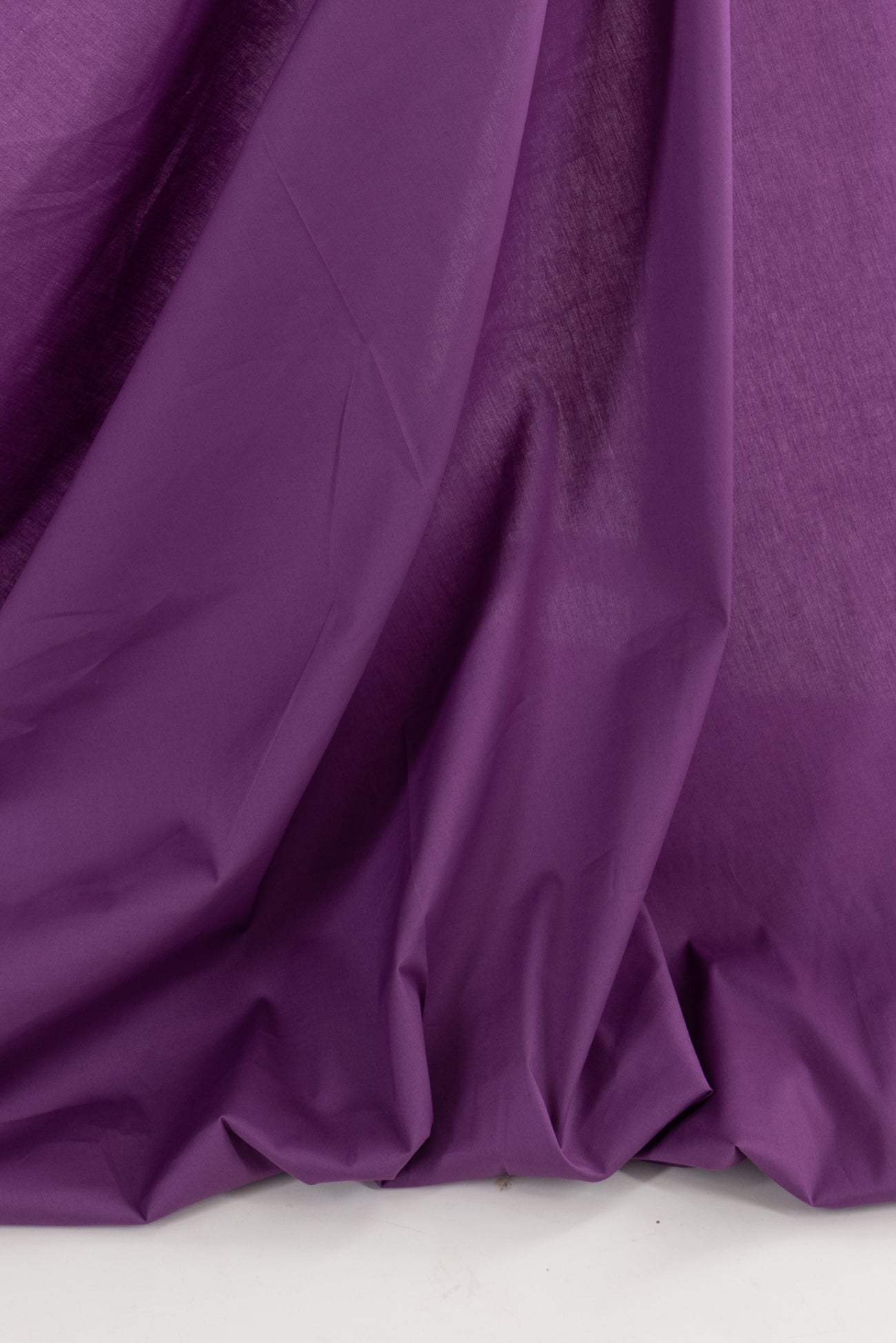 Marvelous mulberry purple in a fine-quality stretch cotton woven. Deadstock from a Southern California designer is light/shirting weight with a smooth dry hand, soft drape, and crosswise stretch. Right for a shirt, top, dress, soft pant, skirt, workwear, men's or children's.