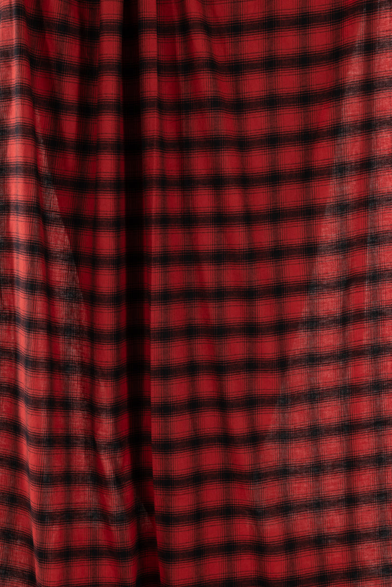 Classic and modern red and black yarn-dyed shadow plaid in a fine quality cotton woven from a Japanese mill. Textiles from Japan use centuries of expertise blended with classic or contemporary design. Light/shirting weight with a soft smooth hand, 2¾" repeat, and light airy drape. Really lovely and right for a shirt, tunic, skirt, dress, soft pants, men's shirt, or children's wear.
