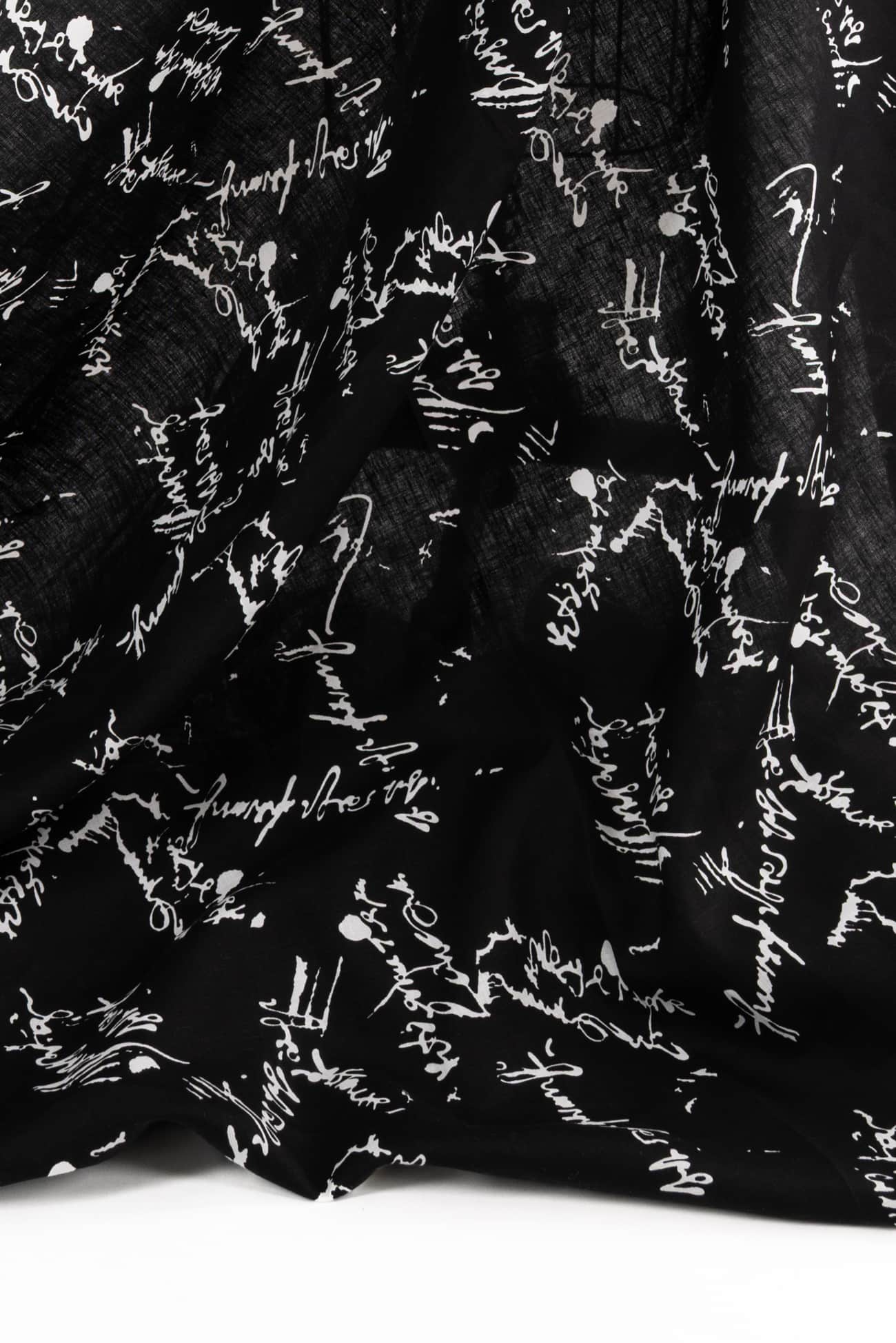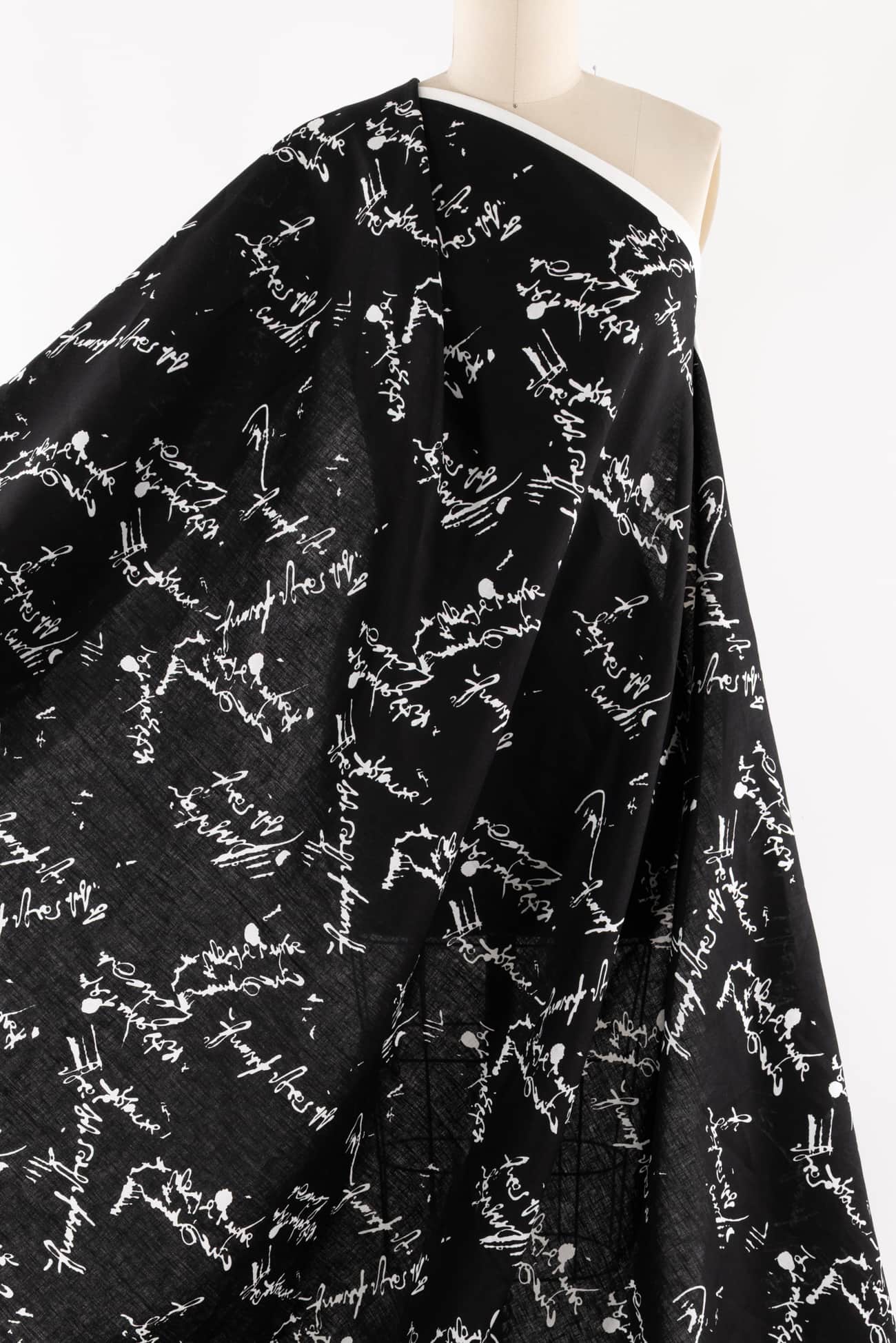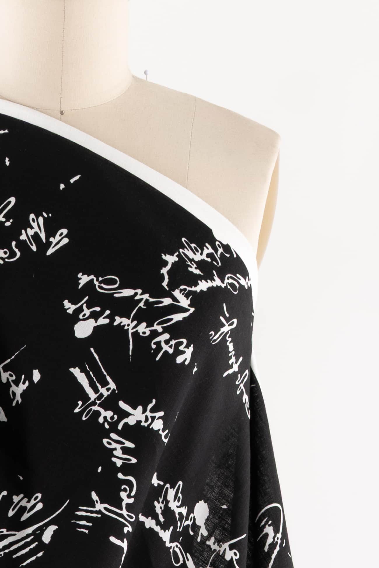 Abstract text/calligraphy print in black and white on exceptional quality linen from Poland where some of the finest long fiber linens are produced. Perfect in-between mid/light-weight (not too heavy, not too light), opaque, with a silky smooth cool dry hand and lightly crisp yet supple drape. A beautiful basic that will work lined or unlined. If you are making an unlined jacket or coat, I recommend lining the sleeves to prevent wrinkling and allow other garments to slip on/off easily. If making structured pants, I'd underline the front to the knee to prevent wrinkling. My favorite lining for linen is a rayon bemberg or rayon blend. An ideal linen for both tops and bottoms: right for a jacket, vest, duster coat, top, tunic, structured dress, or skirt, or could be used for accessories or home dec projects. One way design, 11" repeat.